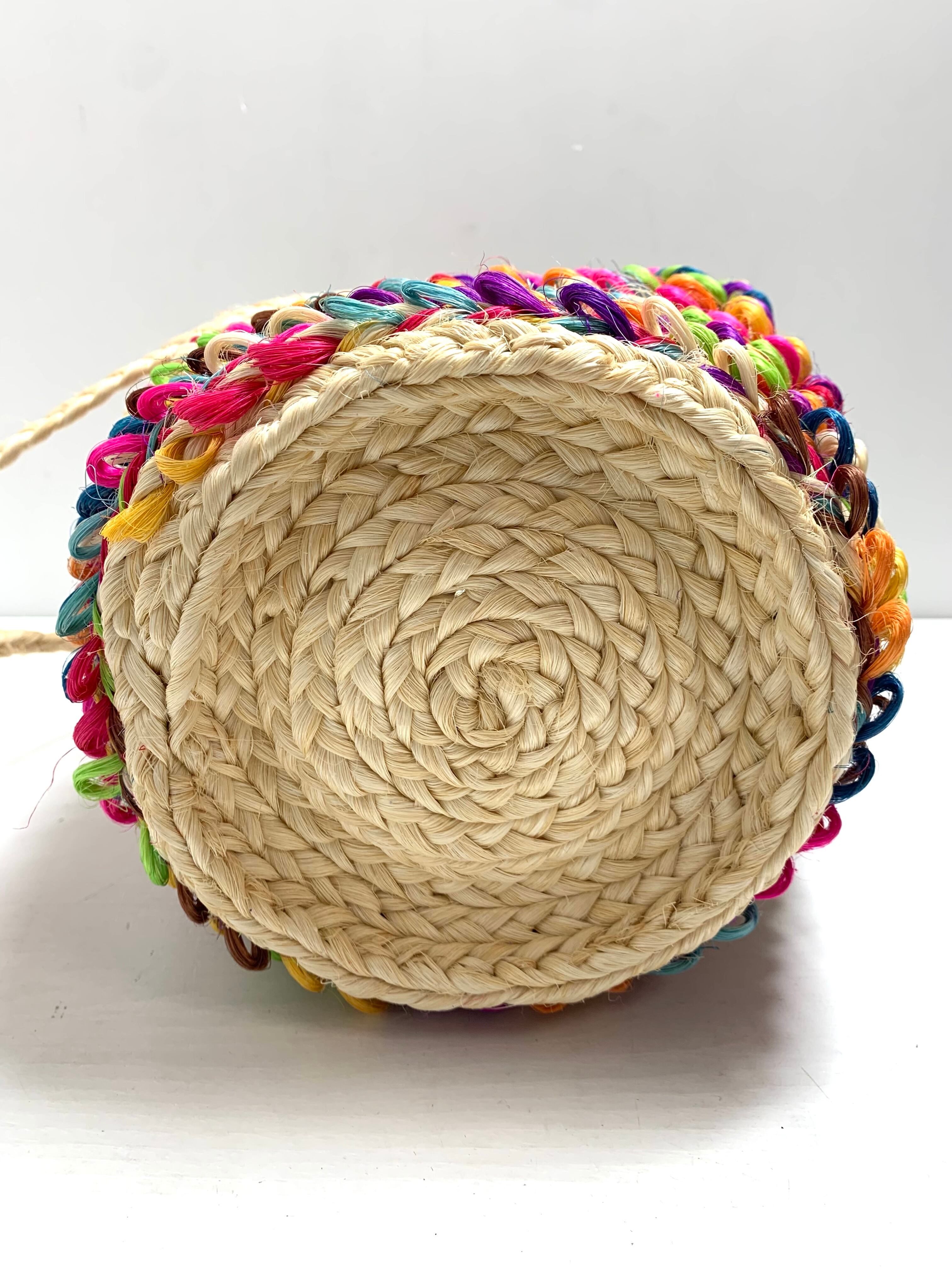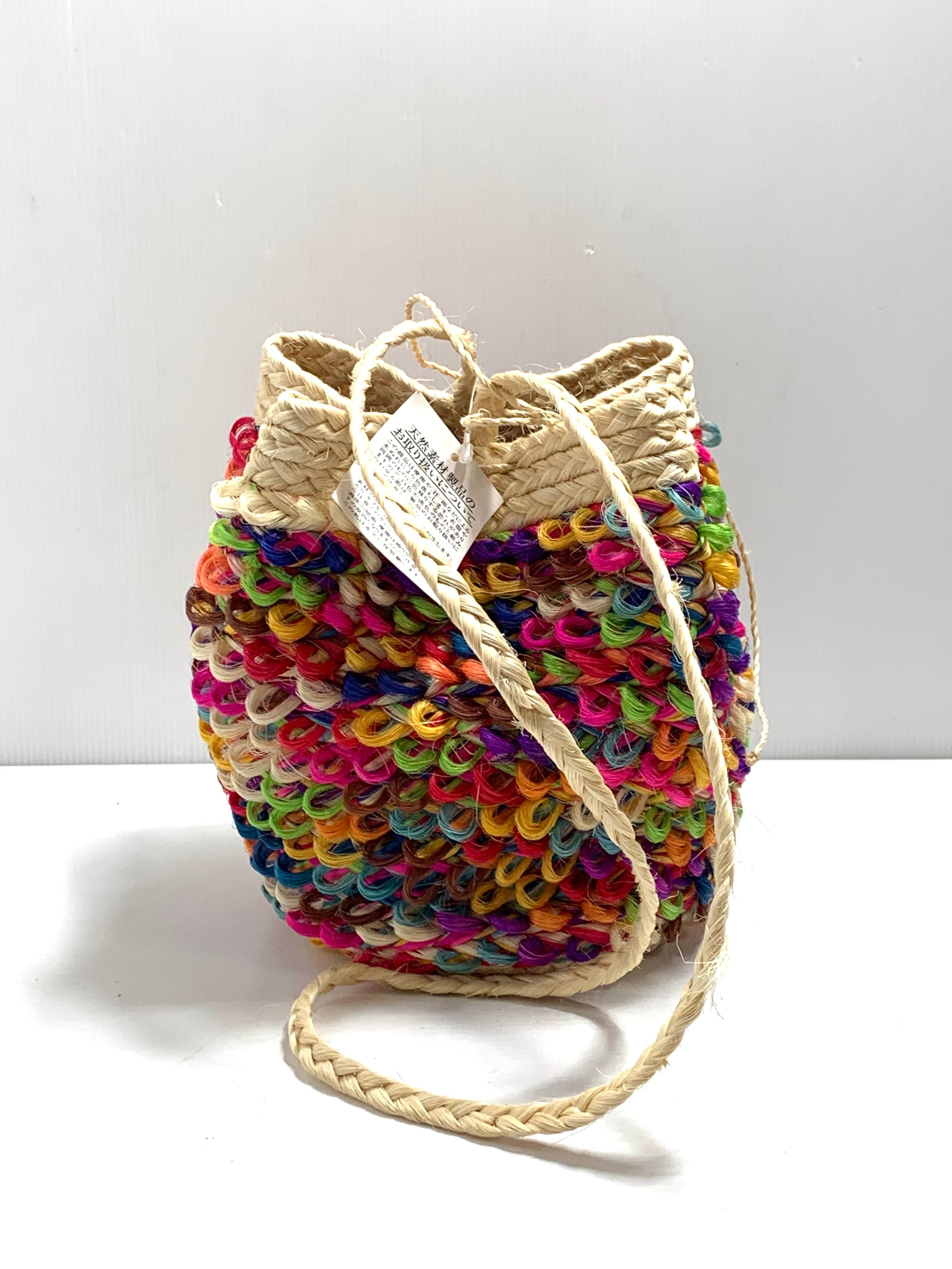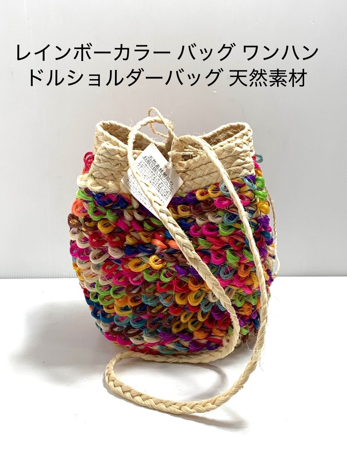 【未使用】レインボーカラー バッグ ワンハンドルショルダーバッグ 天然素材 軽量&カラフル