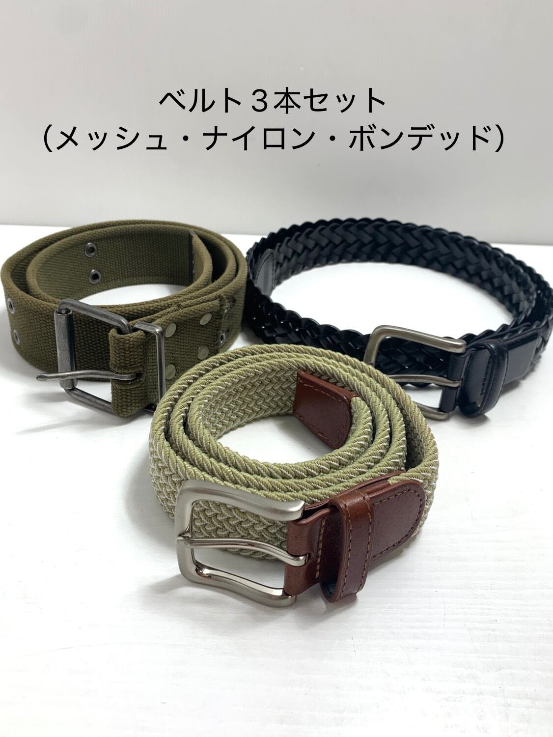 シンプル&スタイリッシュ ベルト3本セット(メッシュ・ナイロン・ボンデッド)