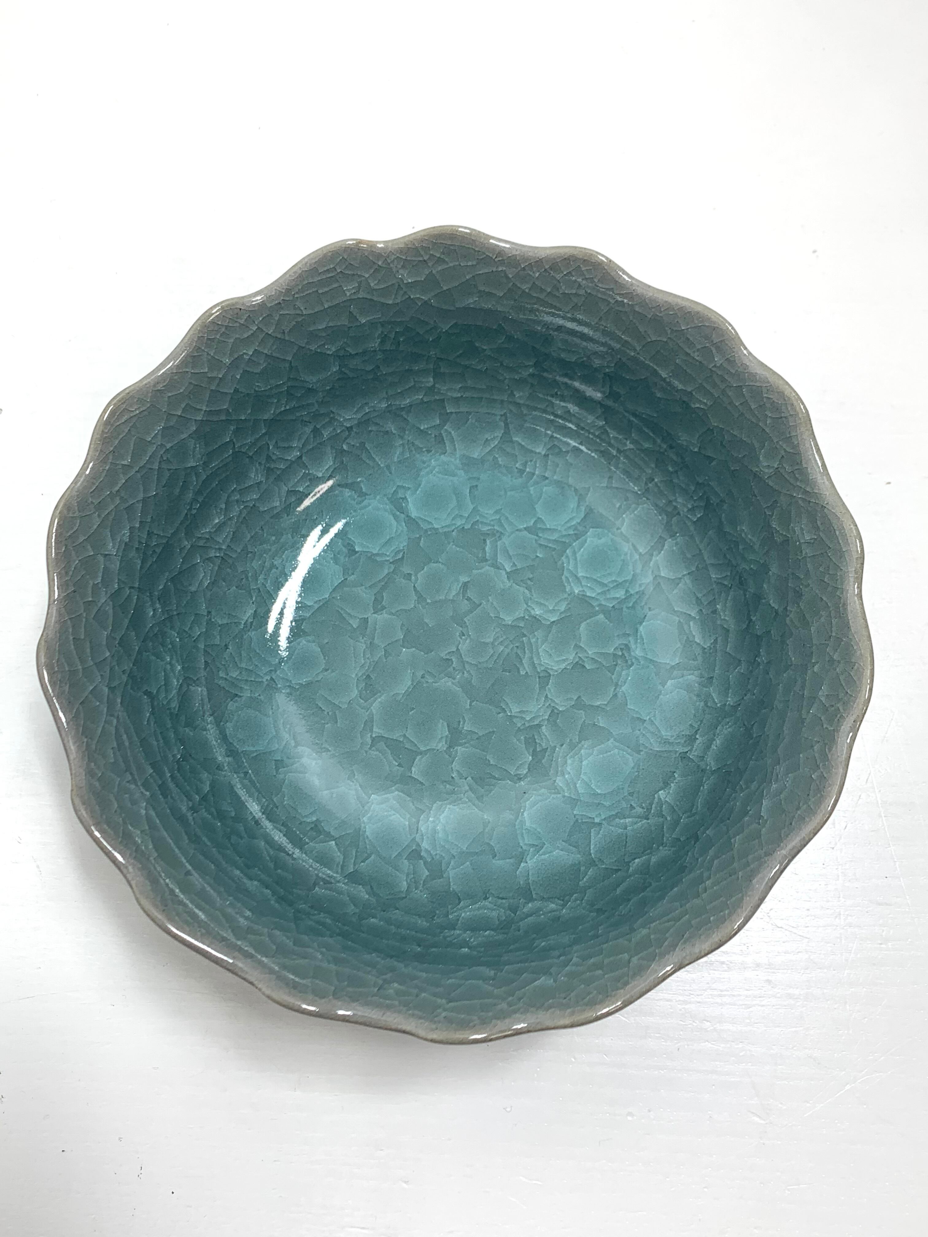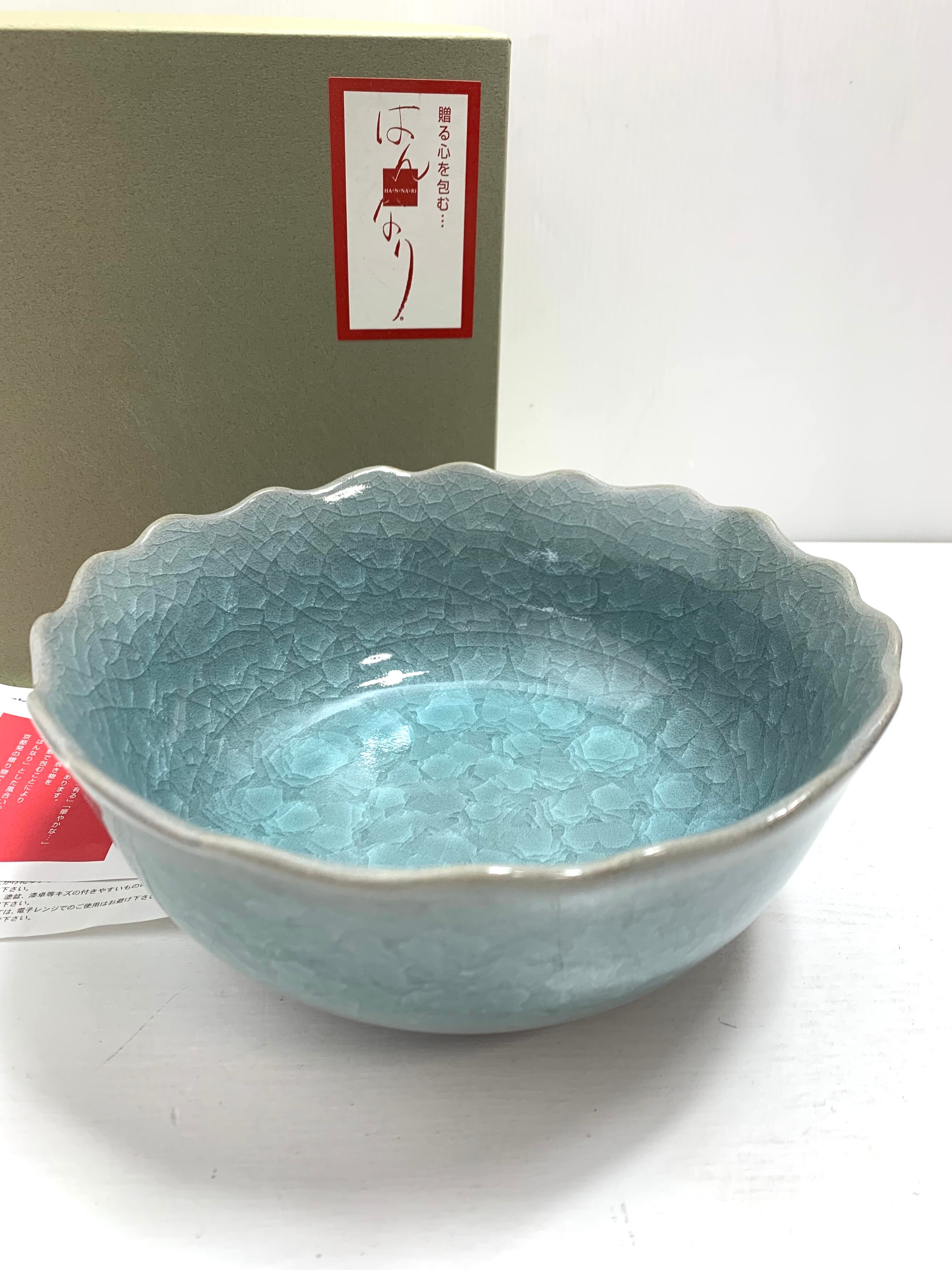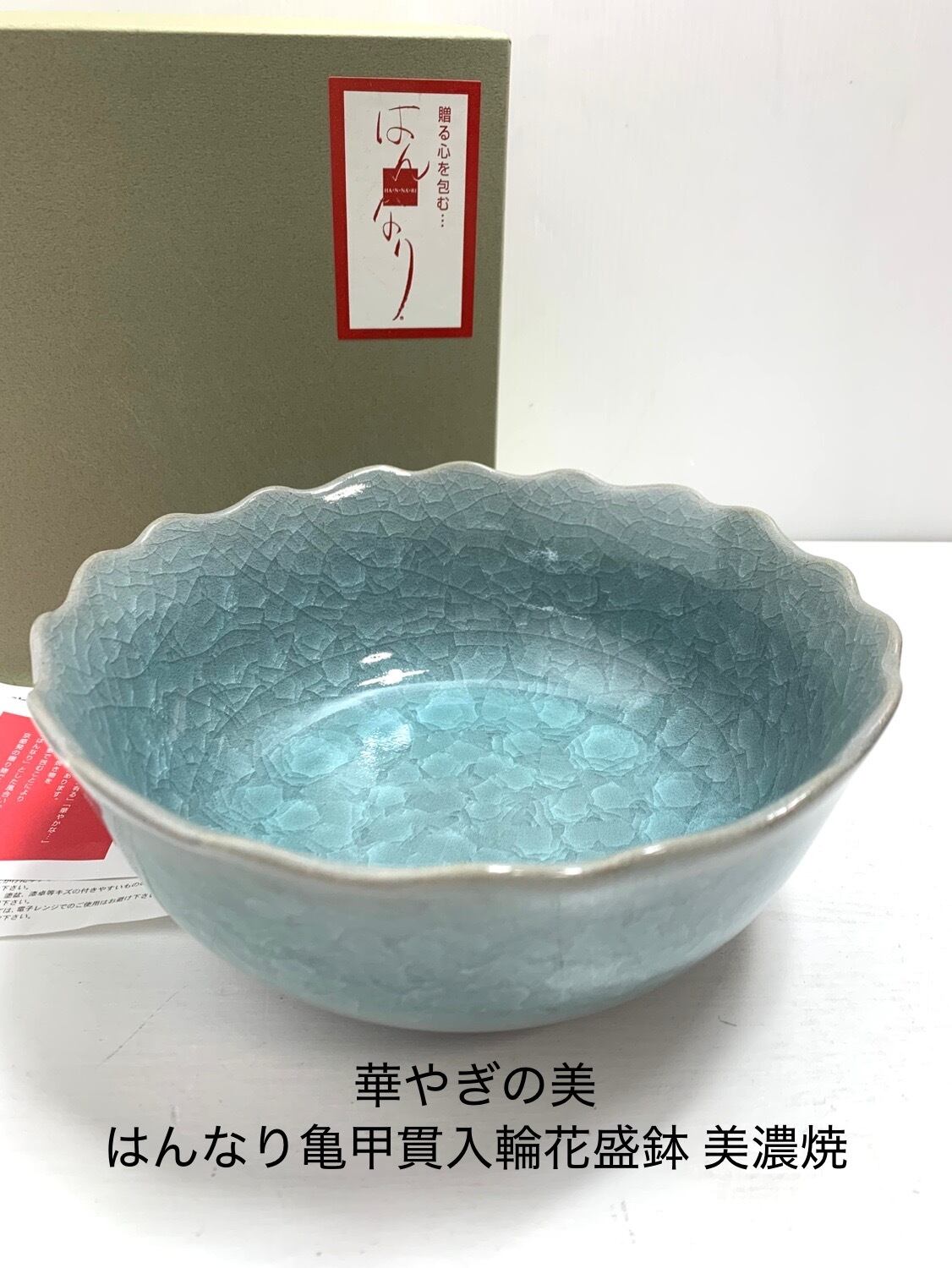 華やぎの美、はんなり亀甲貫入輪花盛鉢 美濃焼【加有窯】和の風情を贈る特別な一品