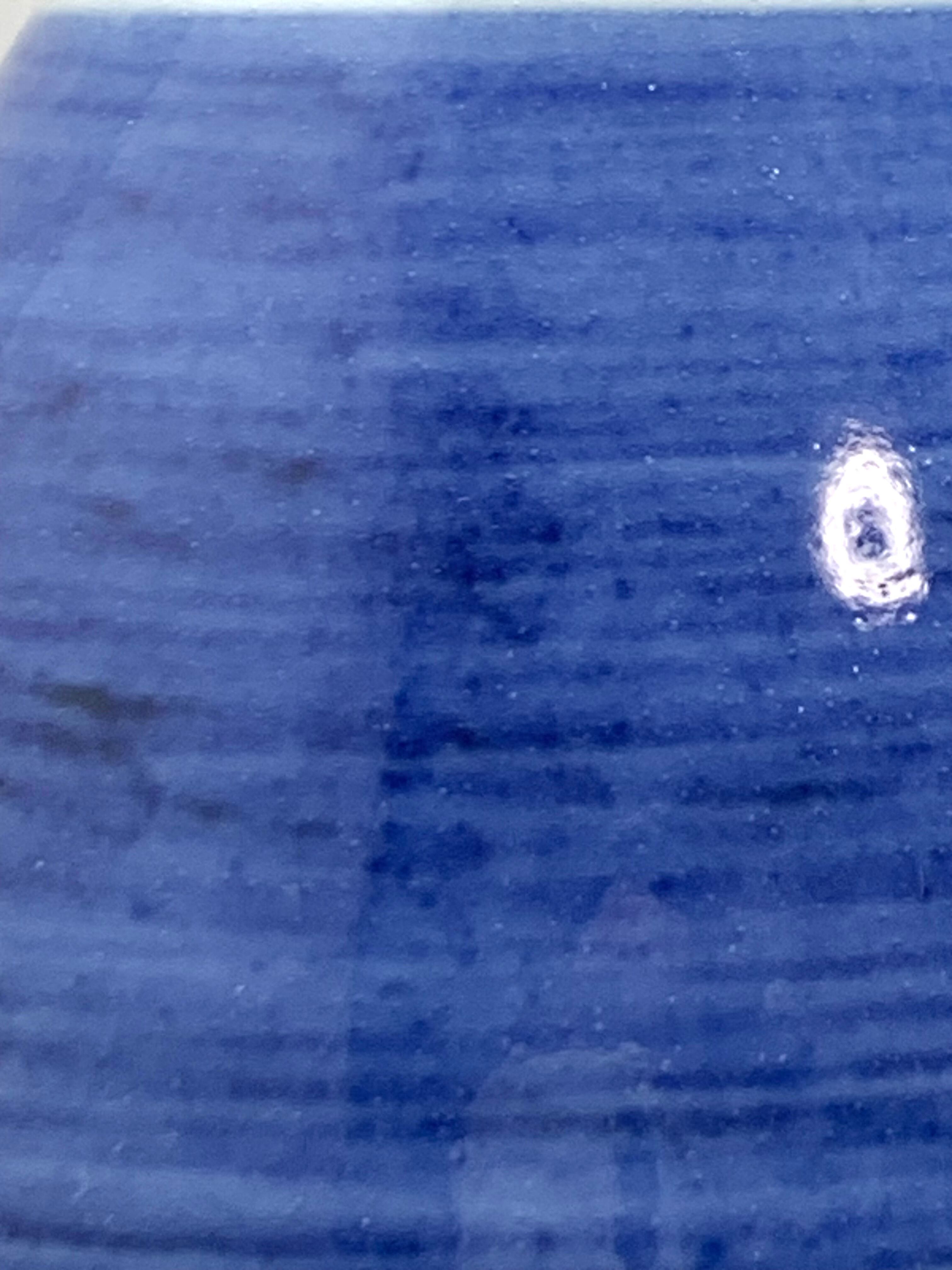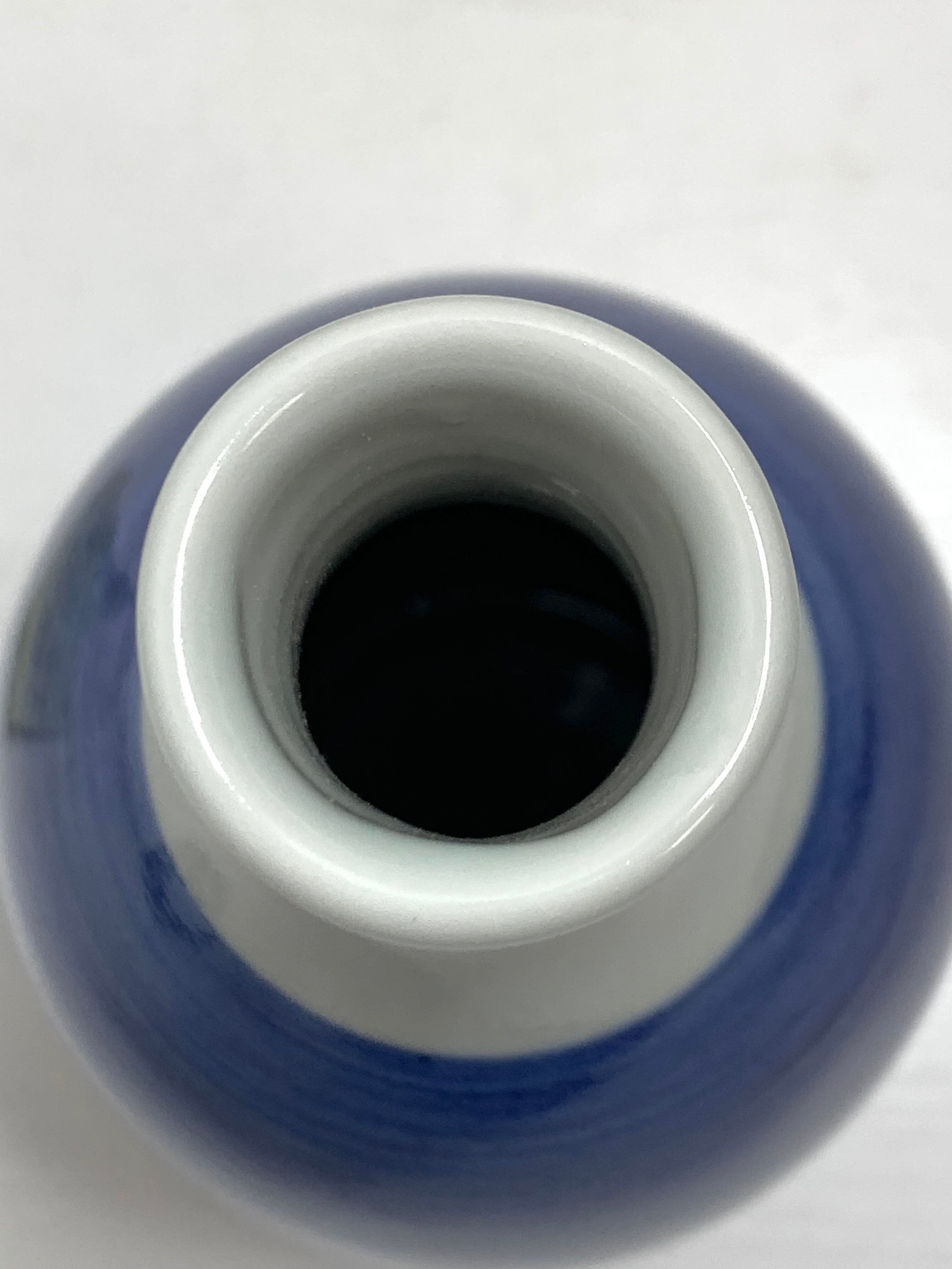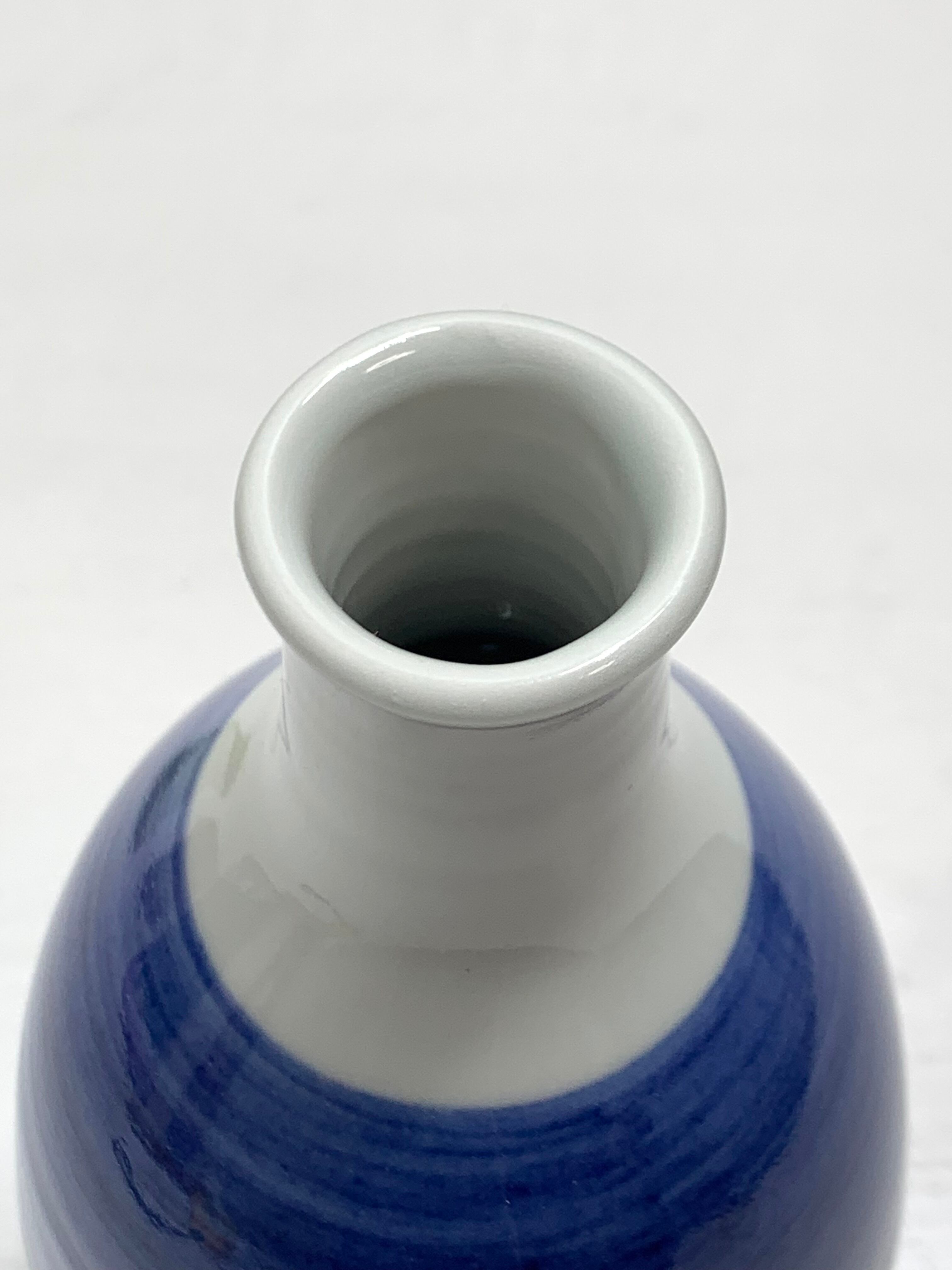 本商品は、清楚な白磁の肌をベースに、首元まで大胆に施された青の模様が印象的です。