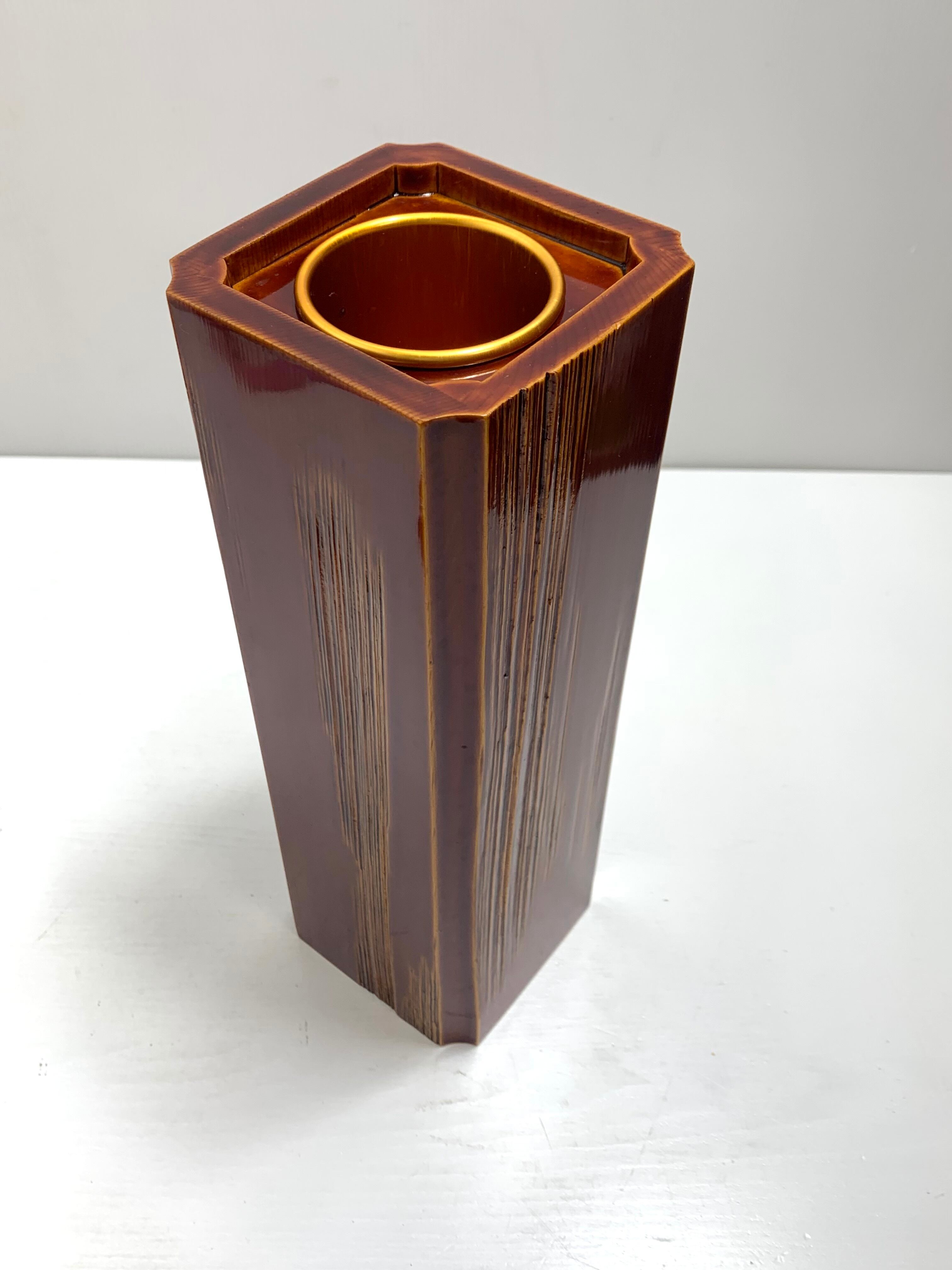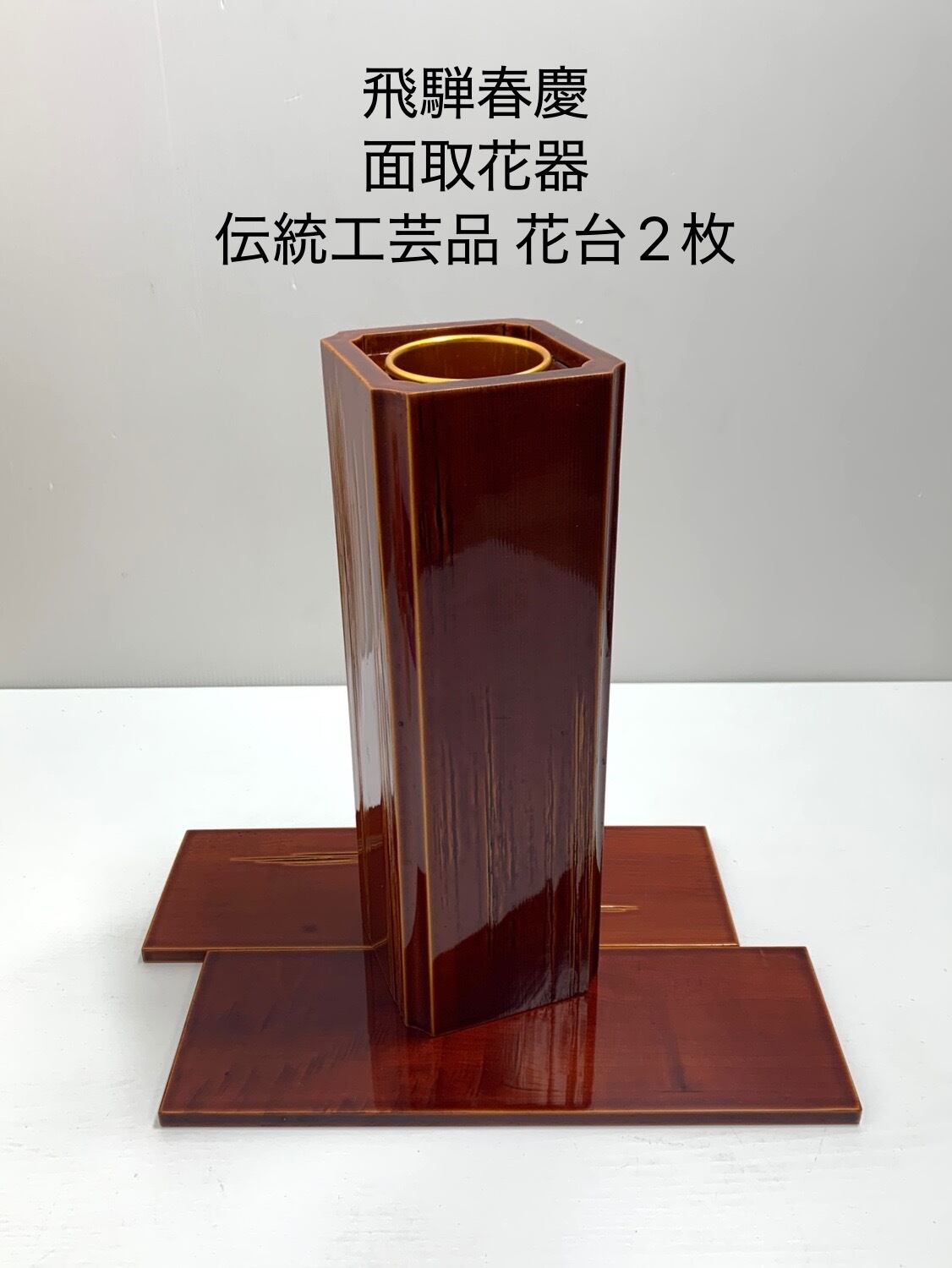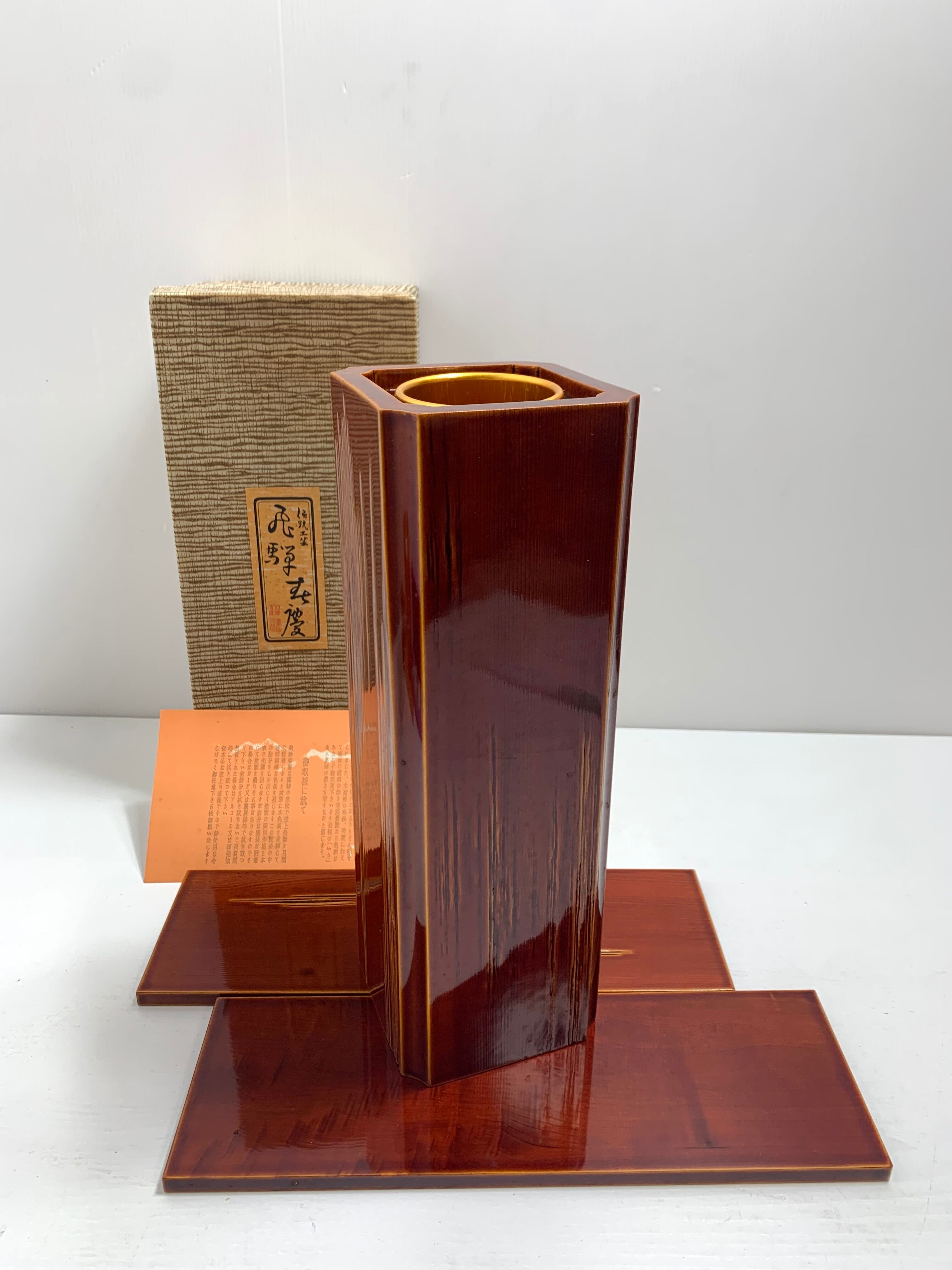飛騨春慶 美しい面取花器 伝統工芸品 高さ27.2cm 花台2枚
