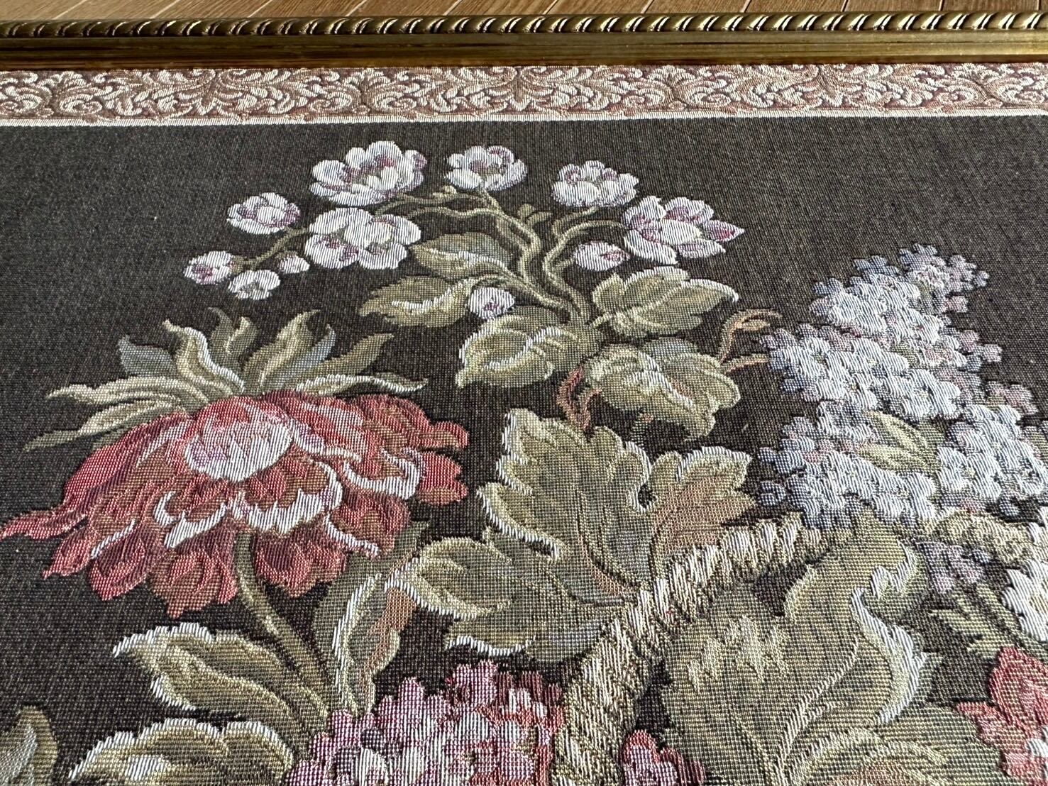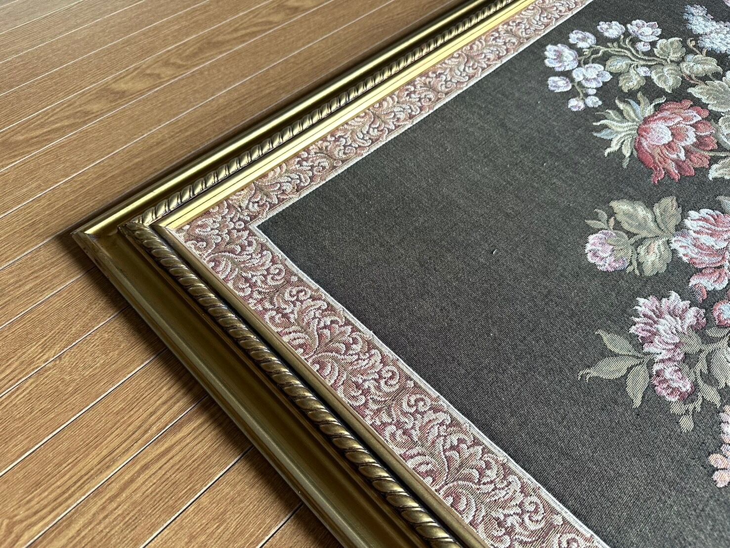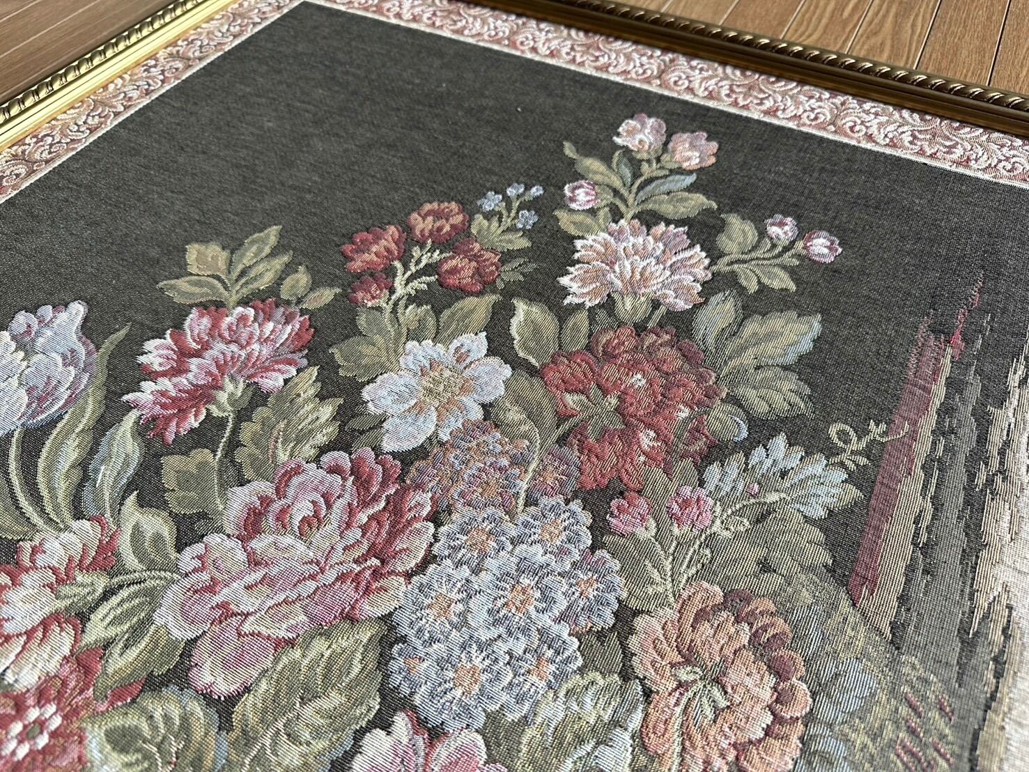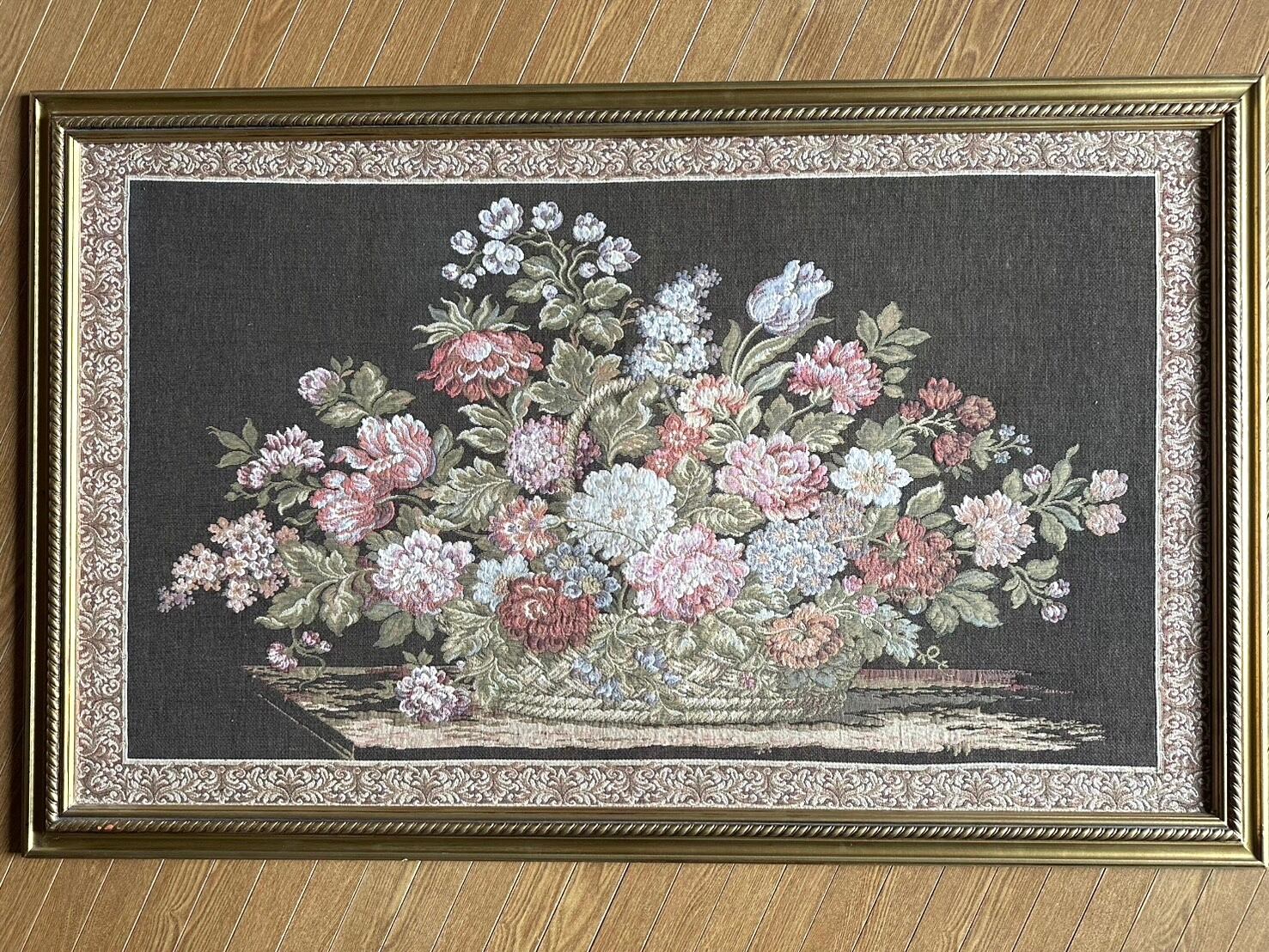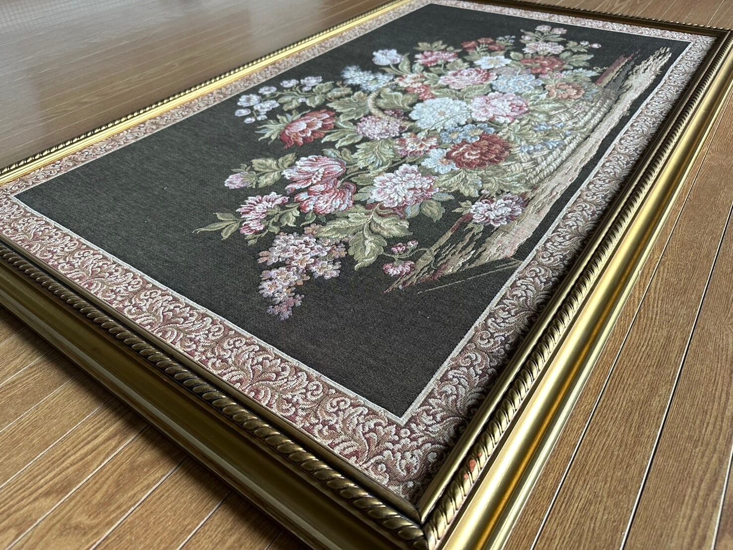 西洋額縁 ゴブラン織タペストリー 花籠と多彩な花々の美しい装飾 130cm×82cm×3cm