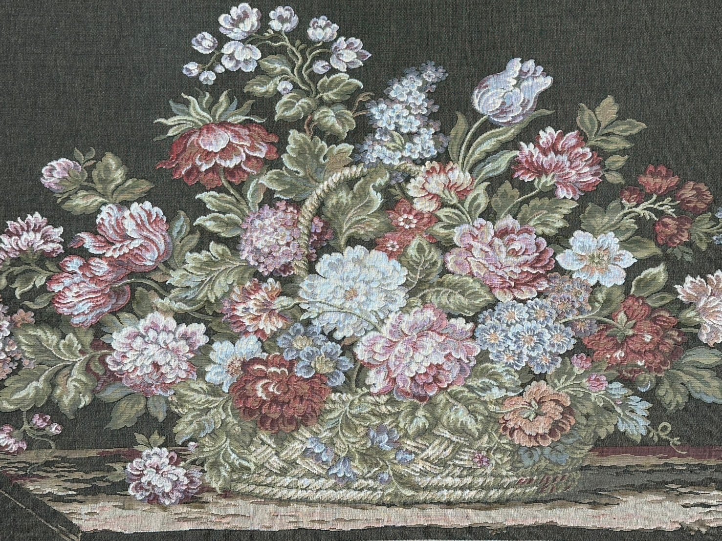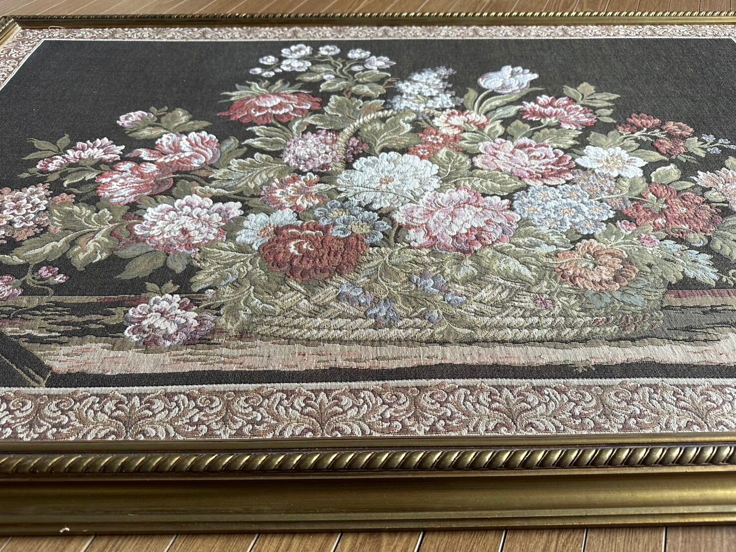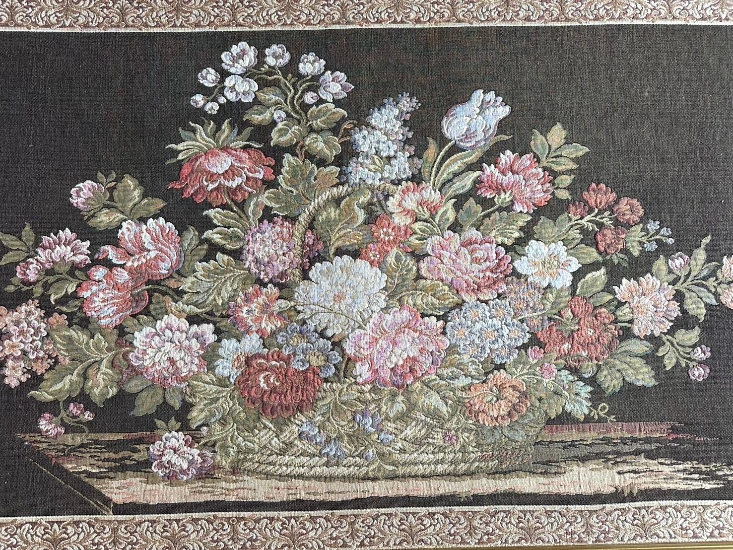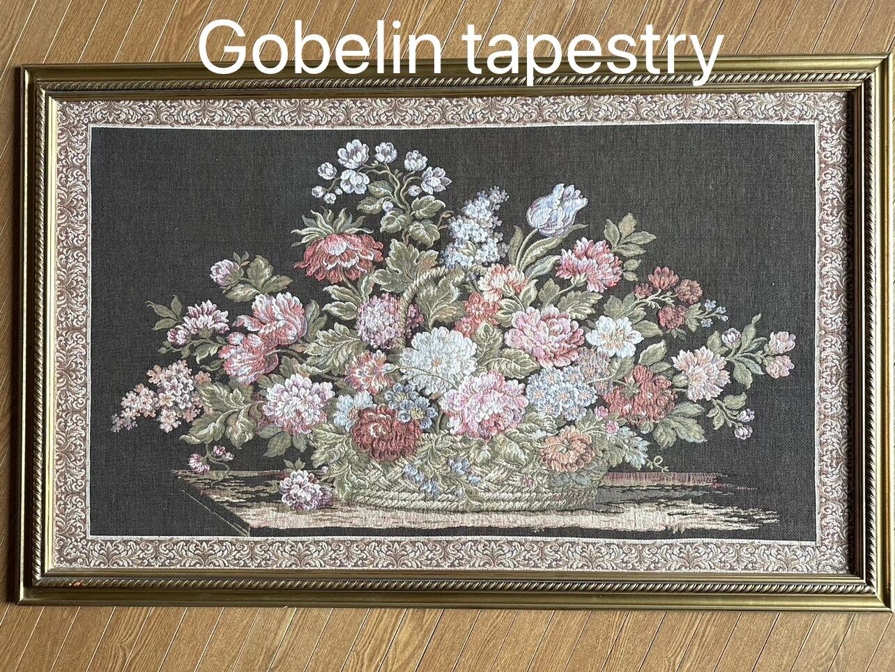 西洋額縁 ゴブラン織タペストリー 花籠と多彩な花々の美しい装飾 130cm×82cm×3cm
