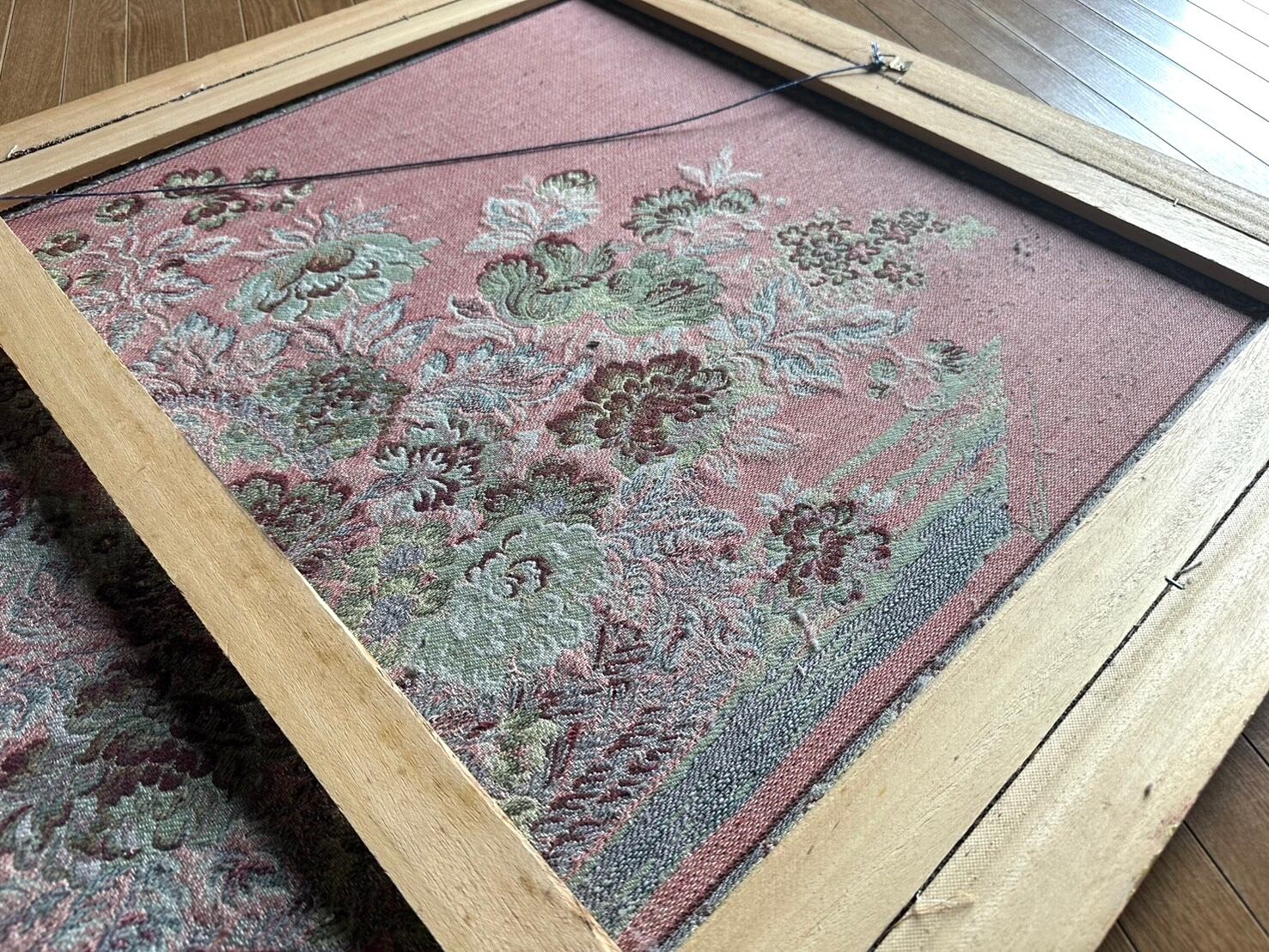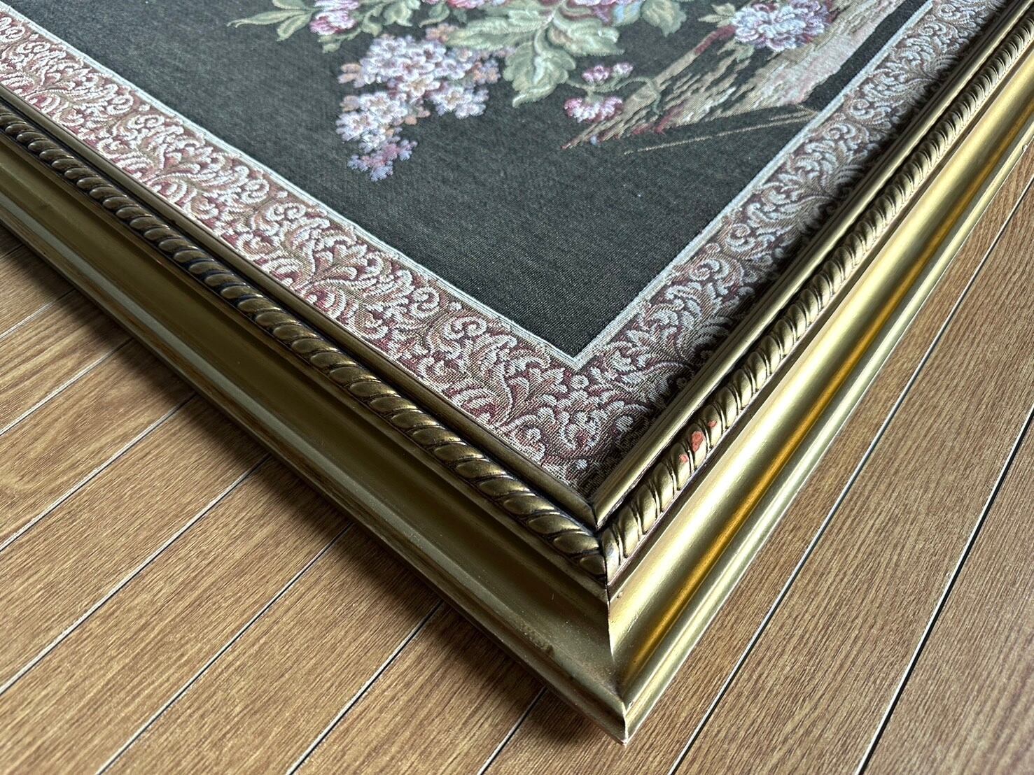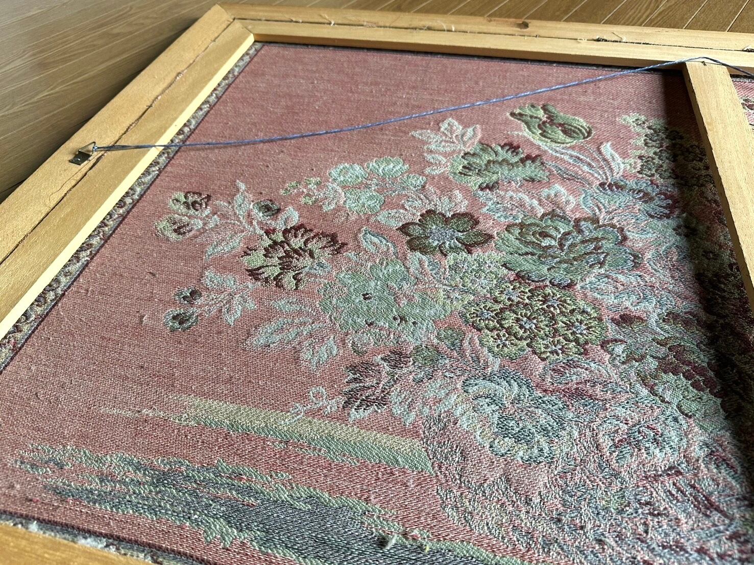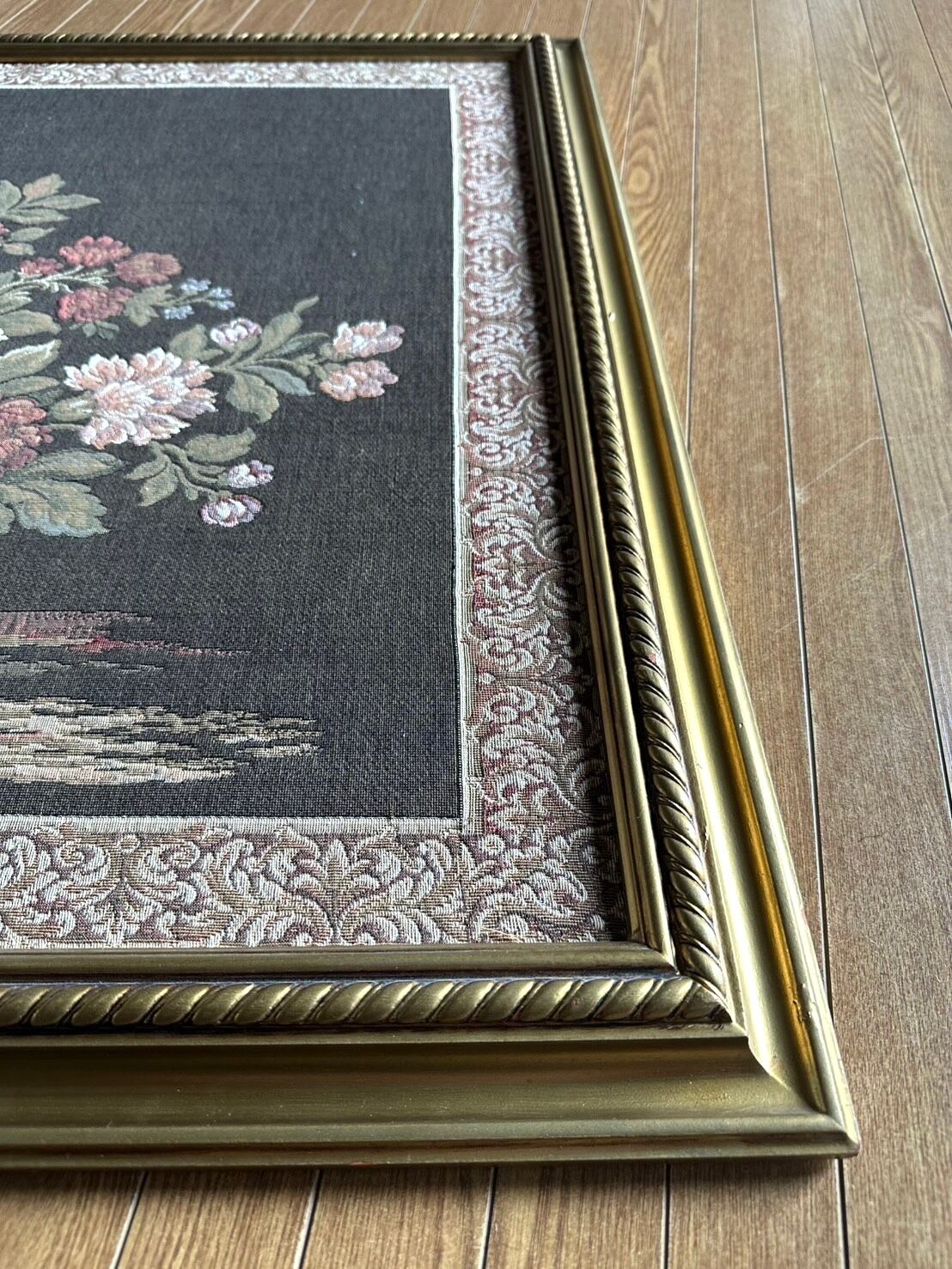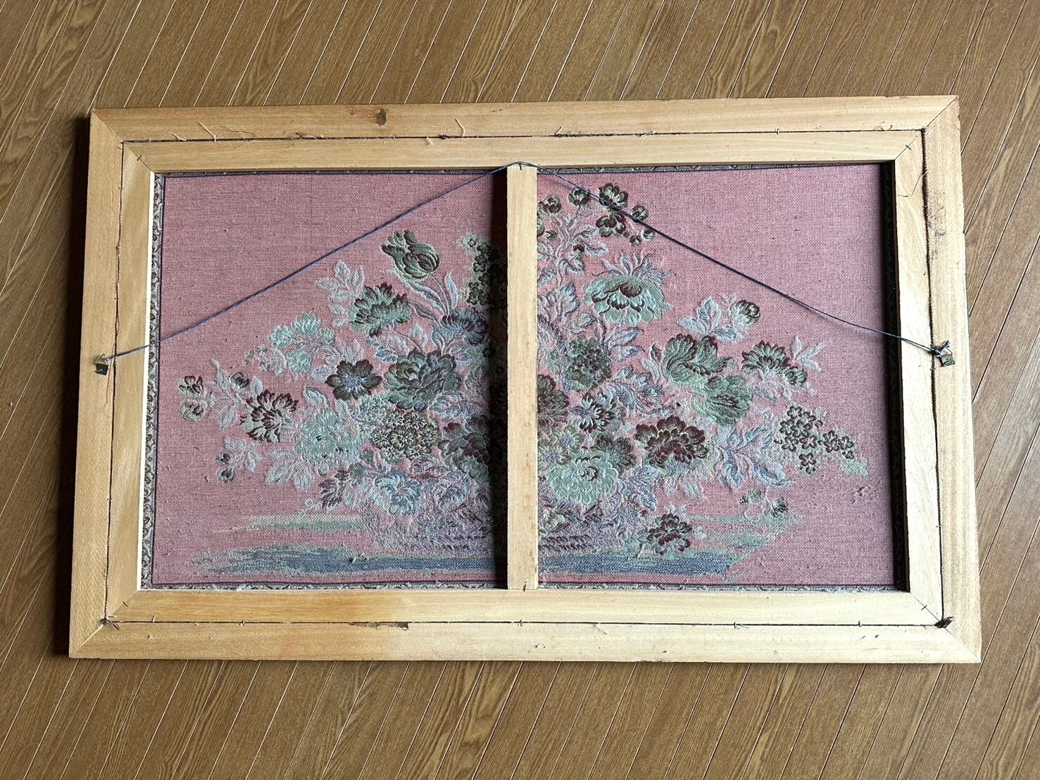 西洋額縁 ゴブラン織タペストリー 花籠と多彩な花々の美しい装飾 130cm×82cm×3cm