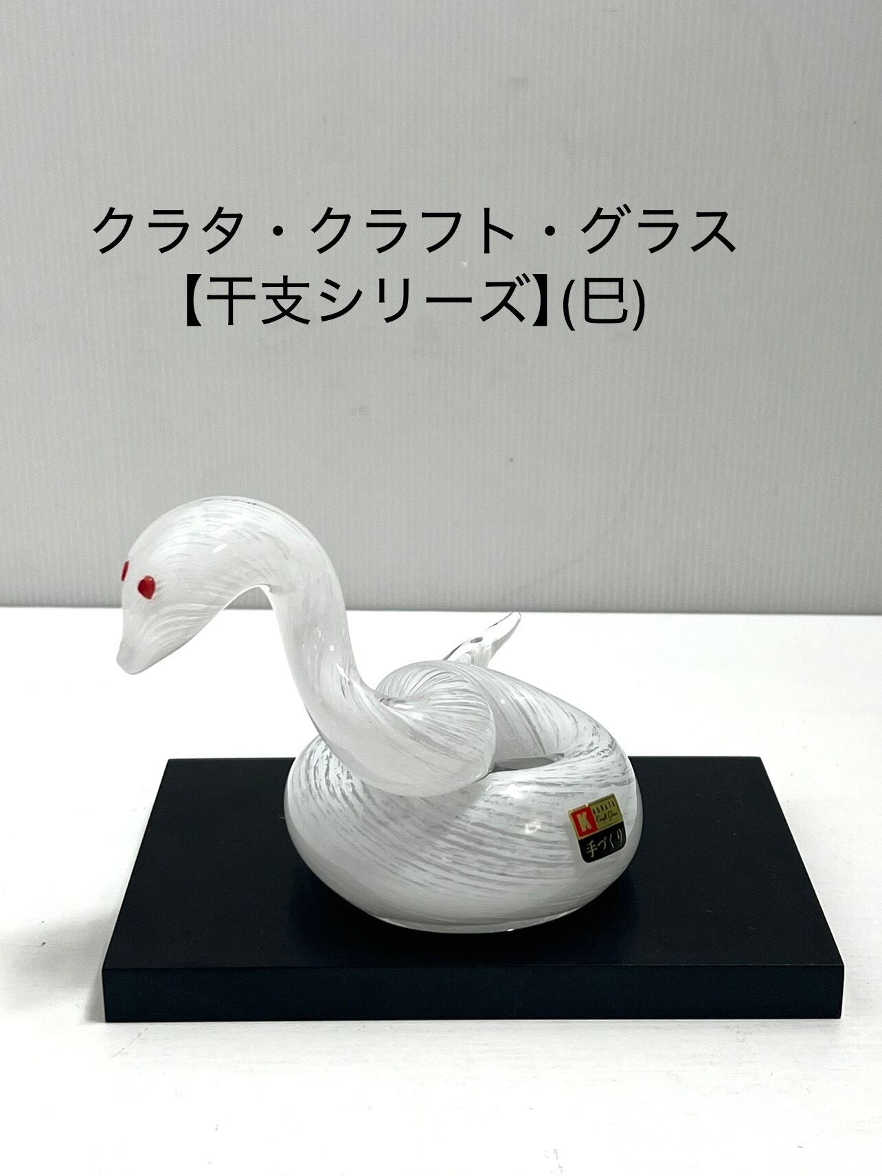 美しい造形と透明感が魅力の クラタ・クラフト・グラス(上越クリスタル硝子) による、干支シリーズ「巳」をモチーフにしたガラス工芸作品です。職人の手仕事による繊細なディテールが特徴で、台座付きのため飾りやすく、インテリアとしても存在感を放ちます。