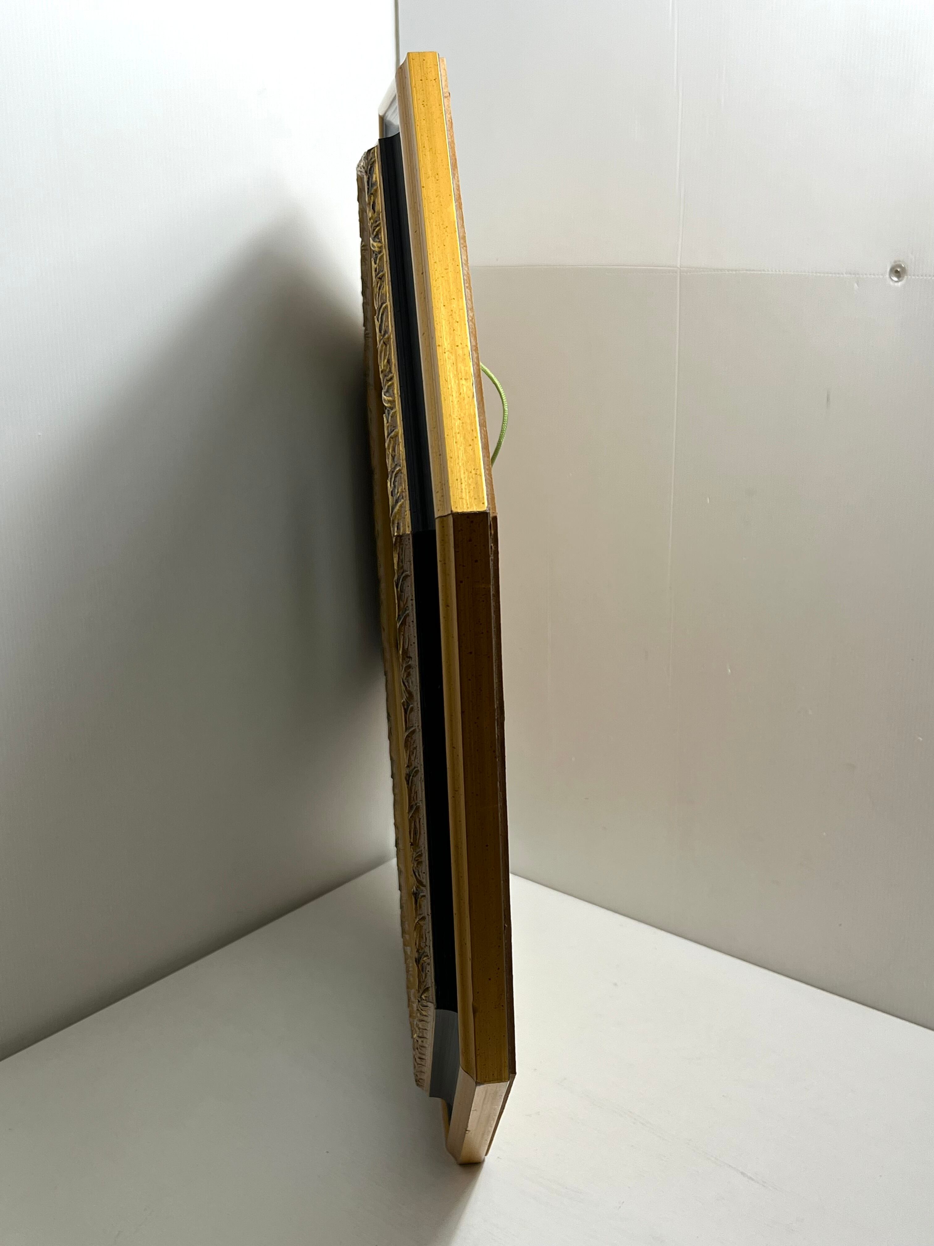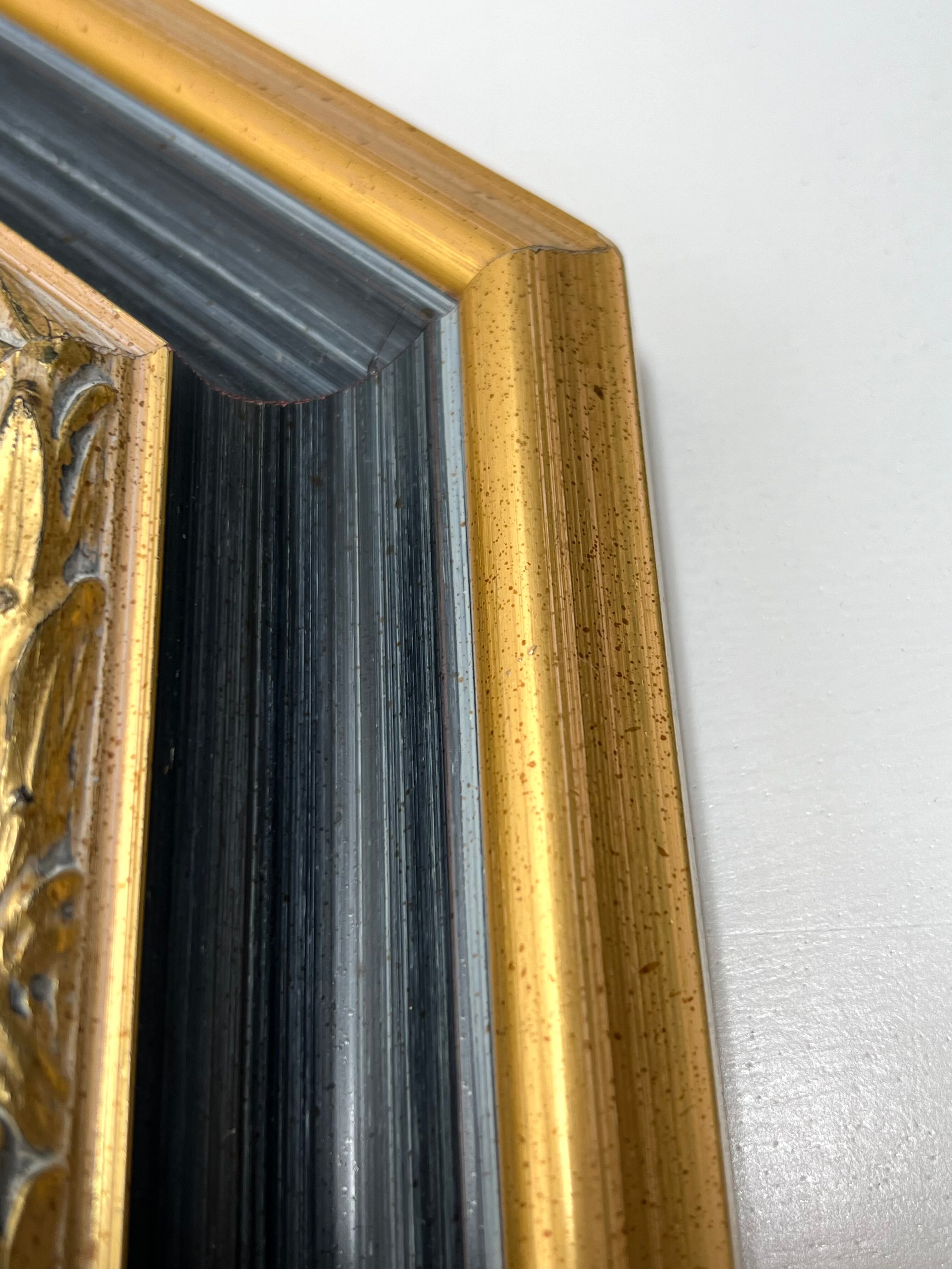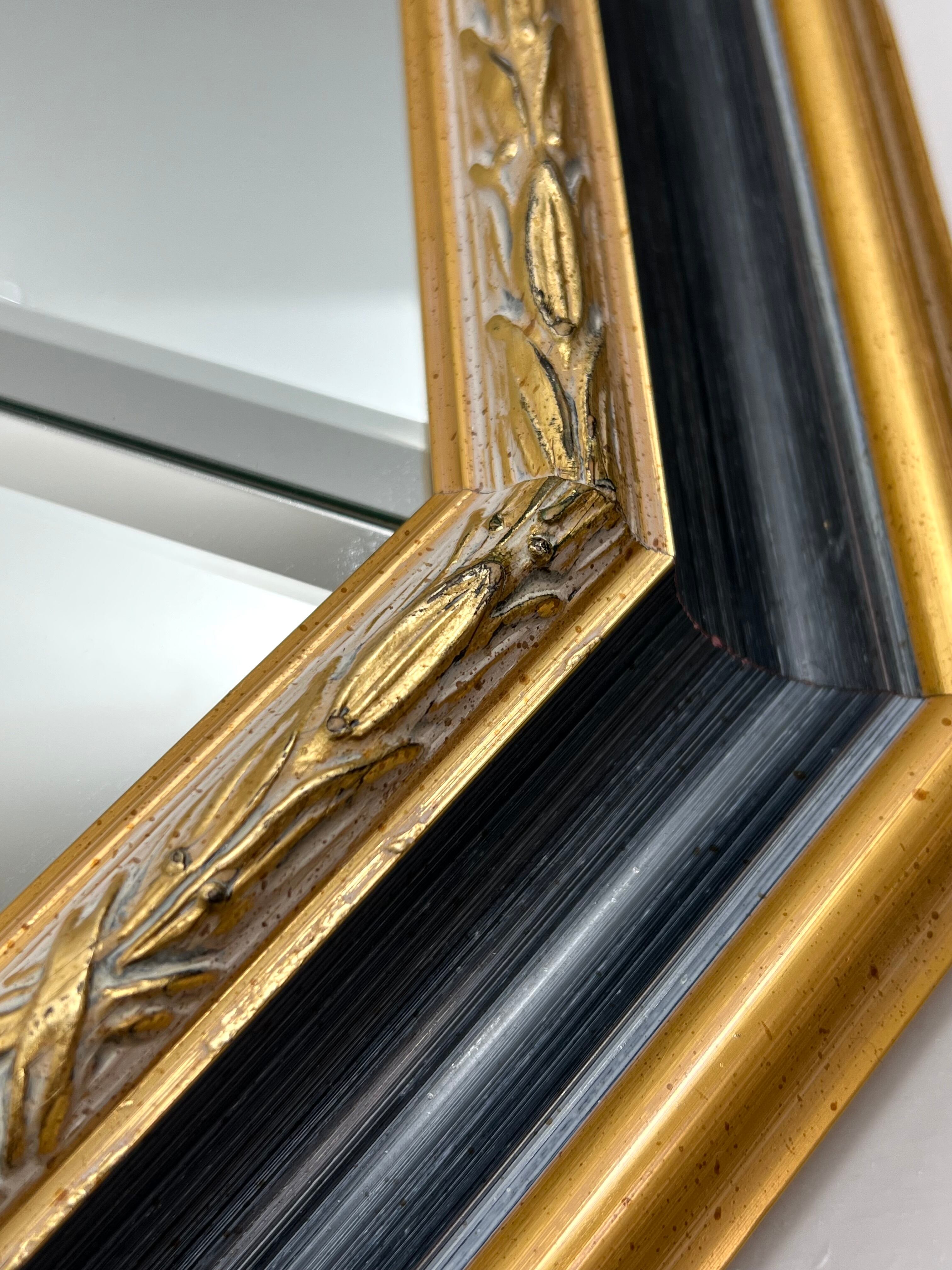 ゴールドの木枠がクラシカルでエレガントな雰囲気を演出し、インテリアのアクセントとして最適です。リビングや玄関、寝室などに飾ることで、空間を広く見せながら高級感をプラスできます。