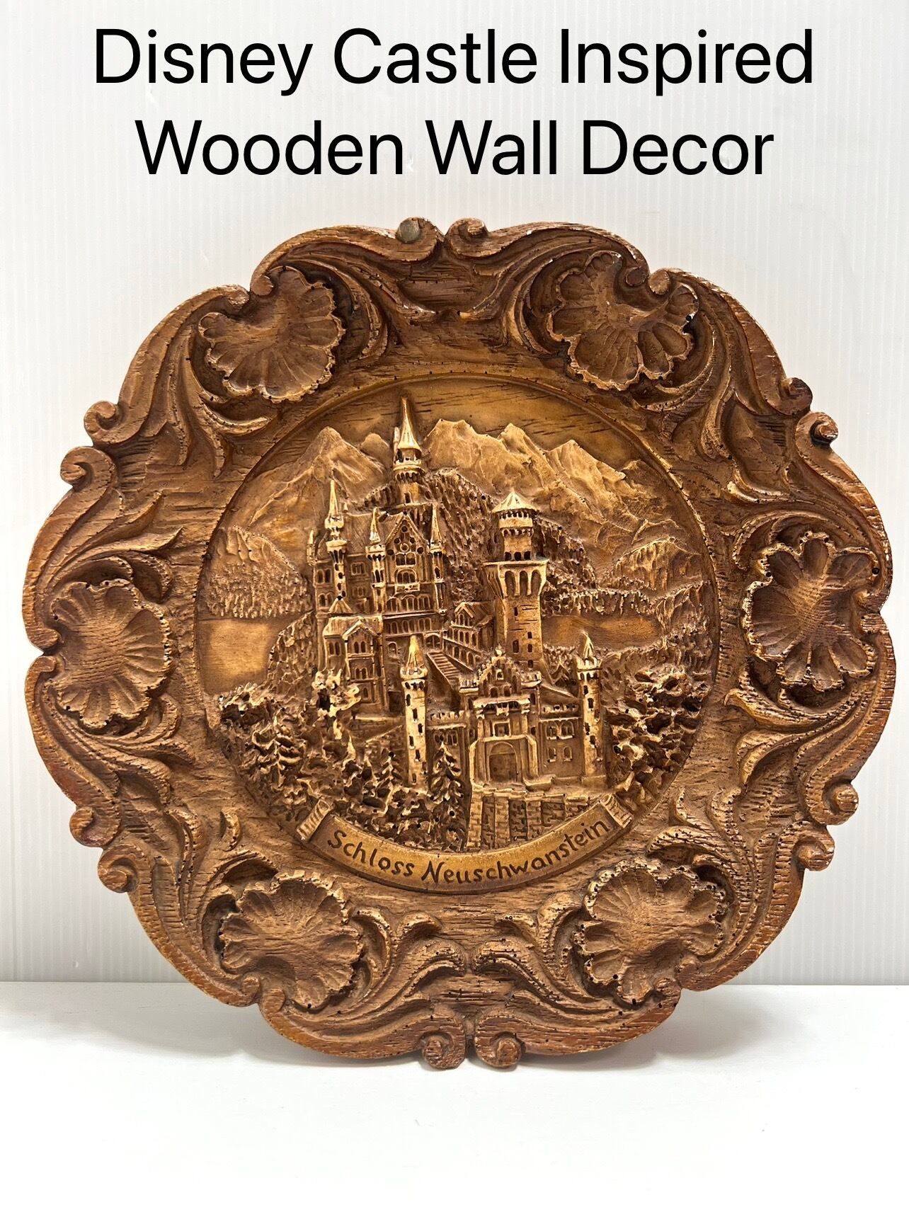 ノイシュヴァンシュタイン城 木彫り 壁掛け 20×21cm ディズニー「眠れる森の美女」モデル ドイツ製 彫刻 インテリア 木製アート ヨーロッパ城