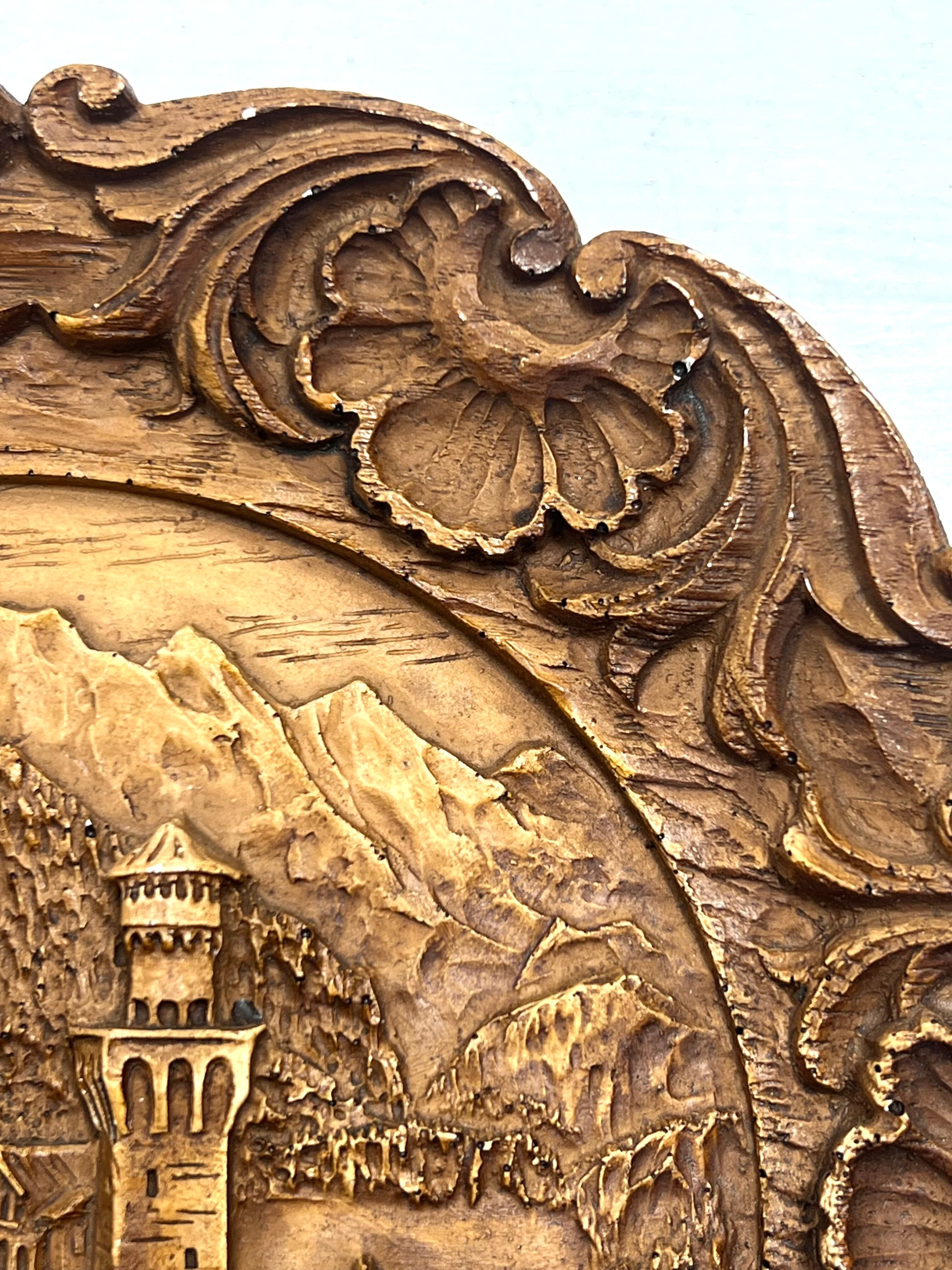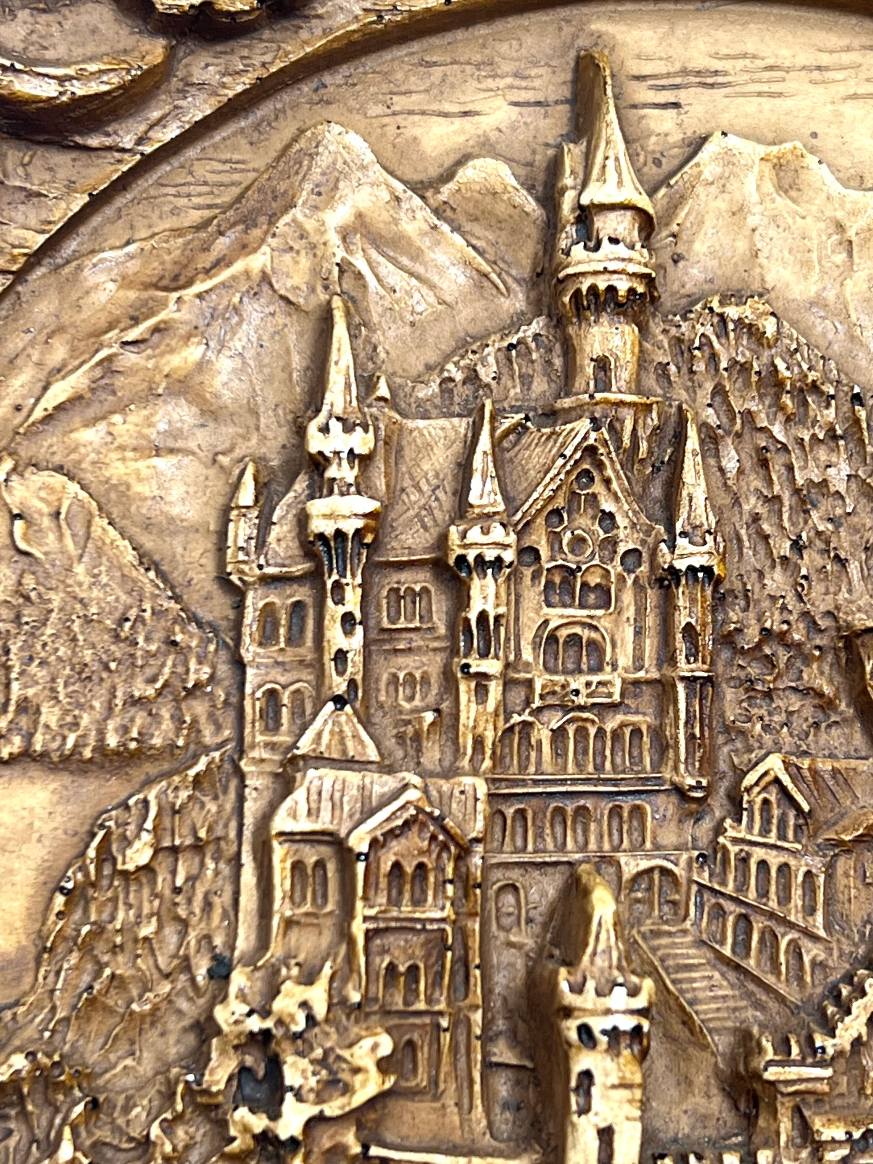 ノイシュヴァンシュタイン城 木彫り 壁掛け20×21cm ディズニー「眠れる森の美女」モデル ドイツ製彫刻インテリア 木製アート ヨーロッパ城