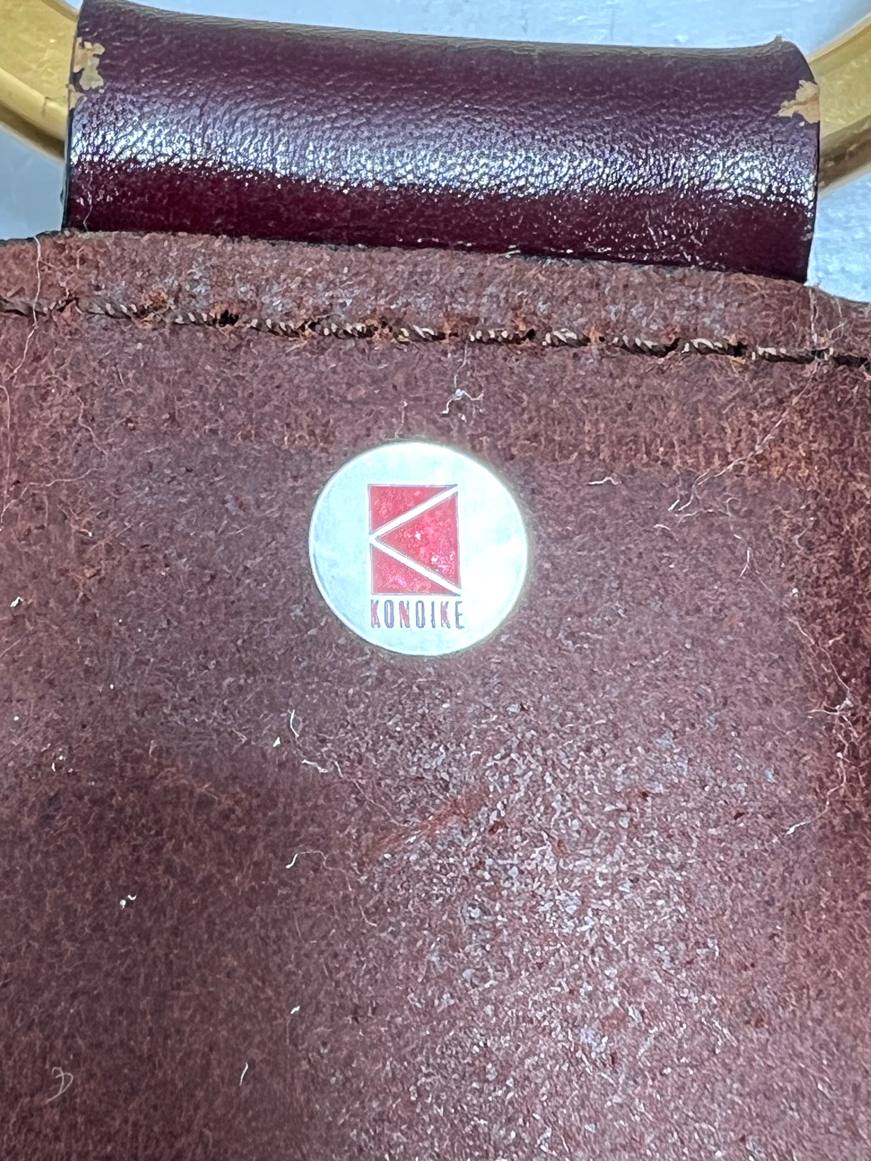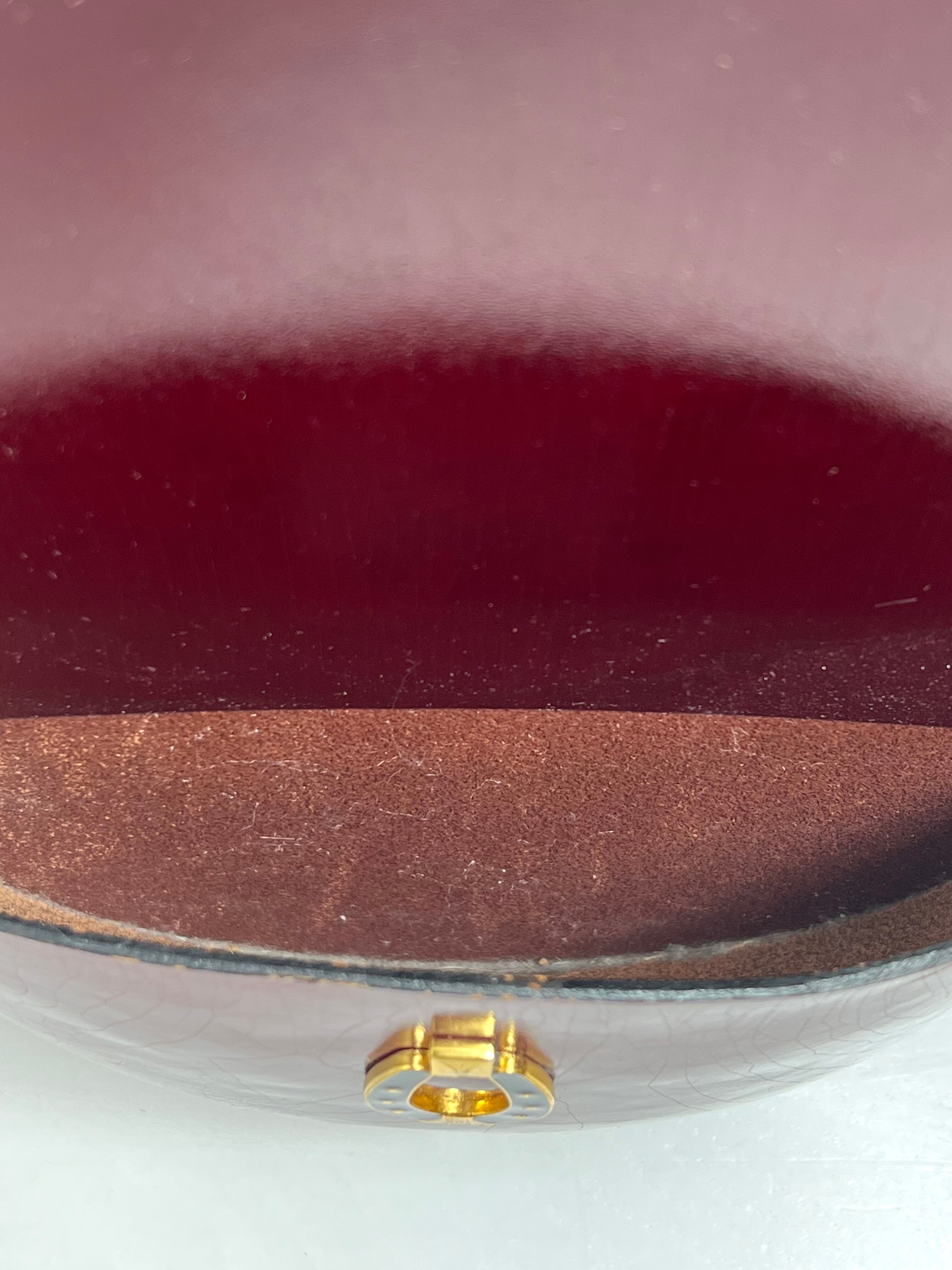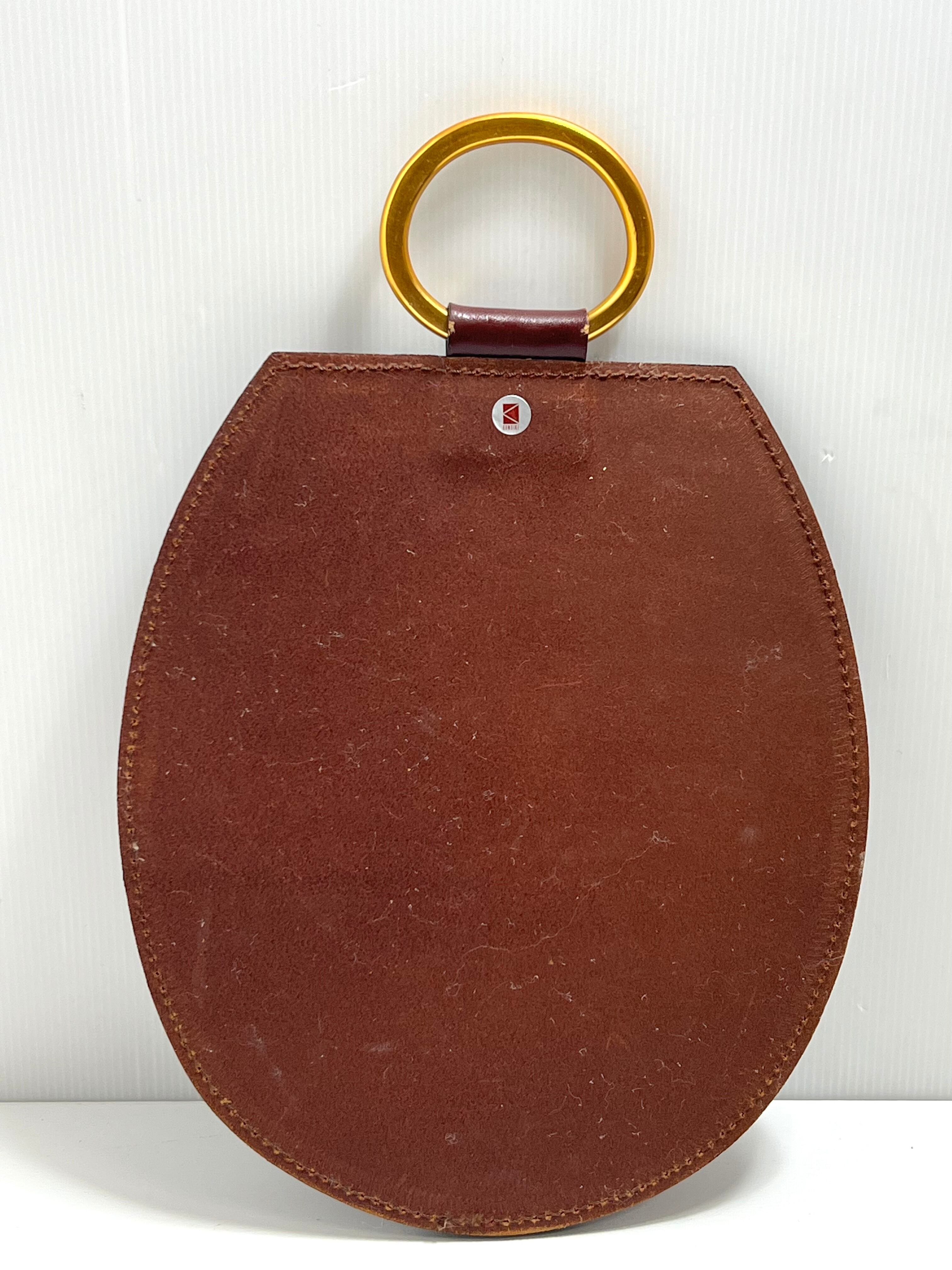 縁起物としても知られる「蹄鉄(馬蹄)」をかたどった、美しいフォルムが特徴的。ボルドーカラーの本体に金色の金具が映え、上品で華やかな印象を与えます。