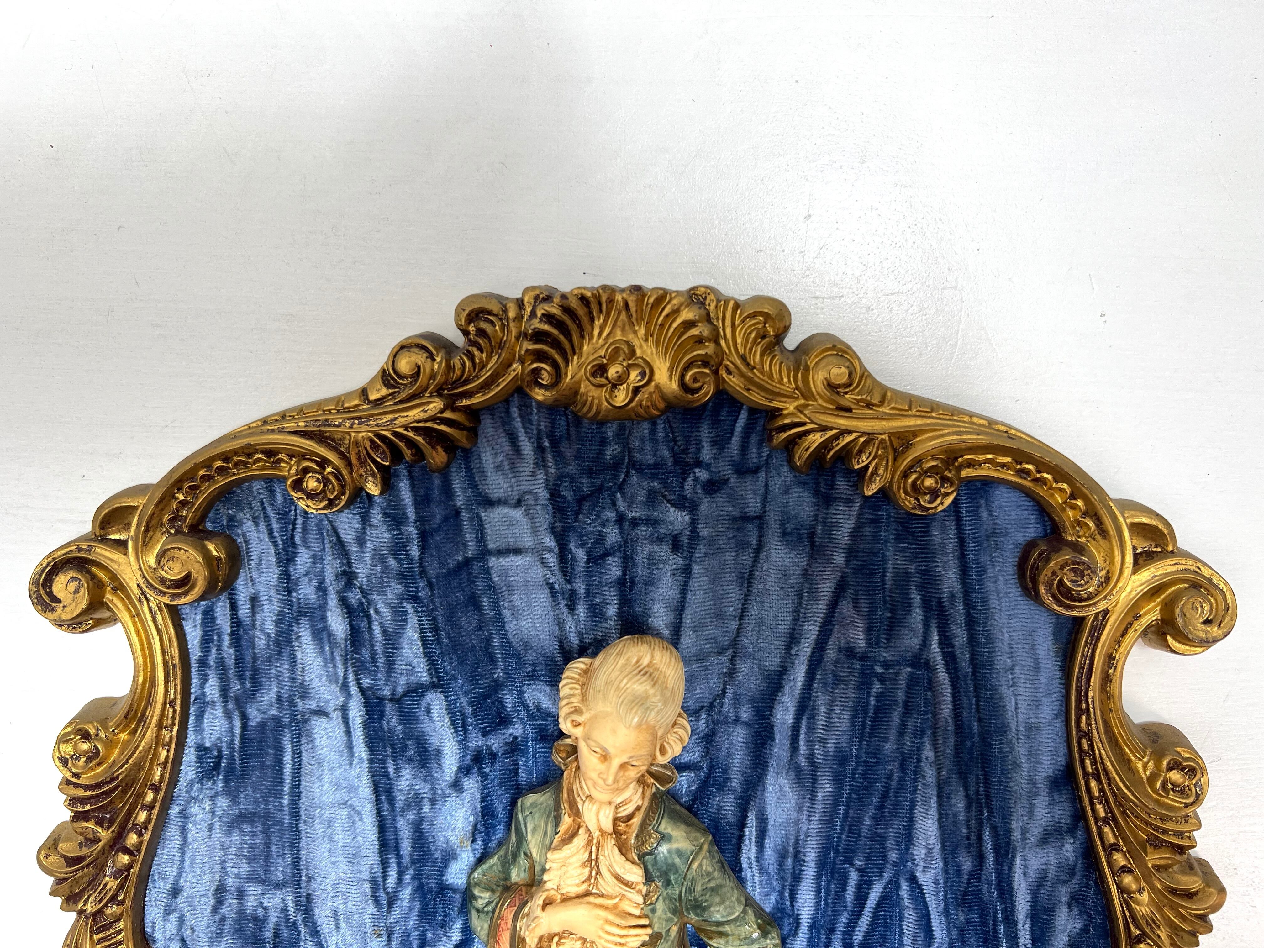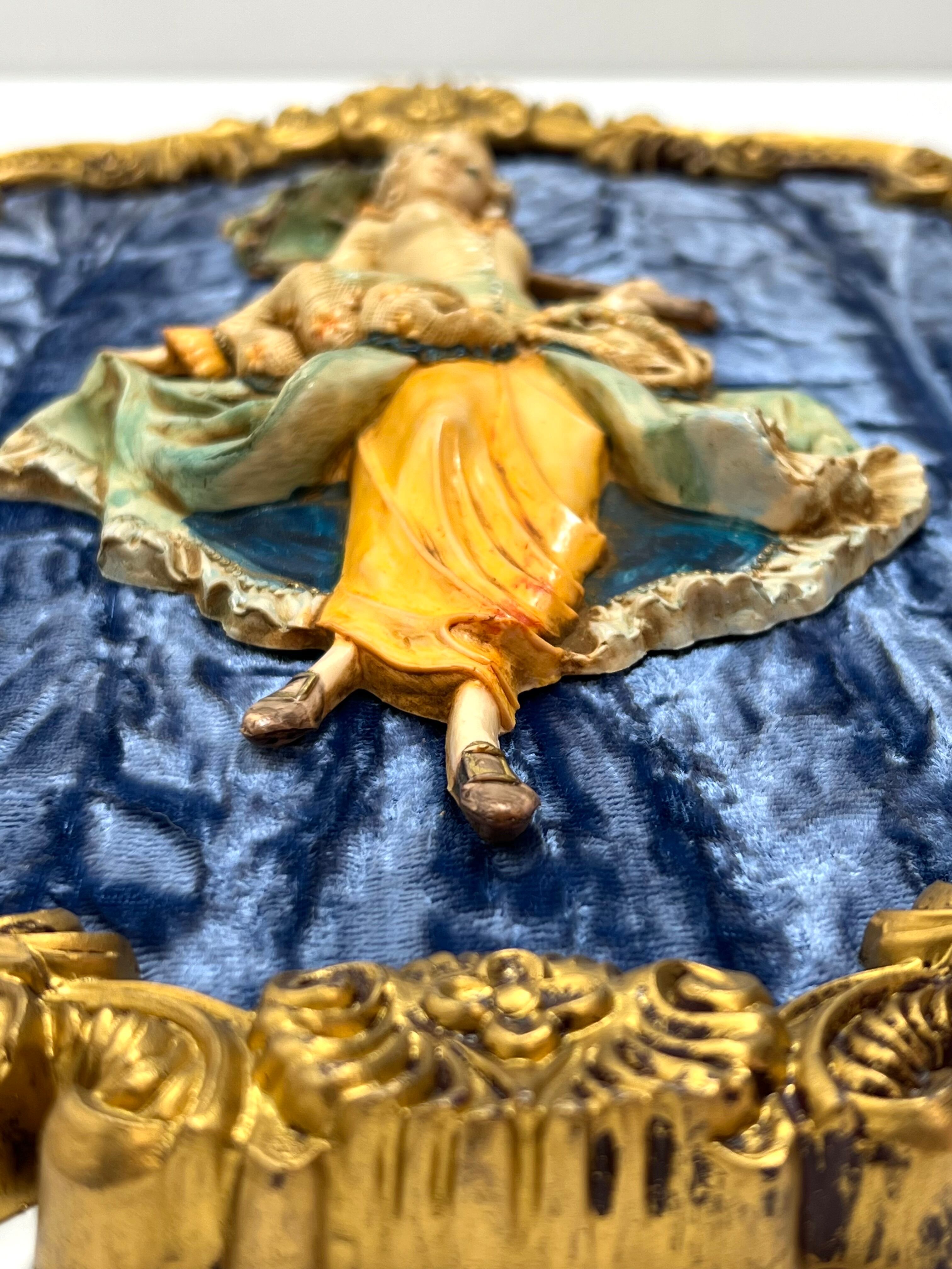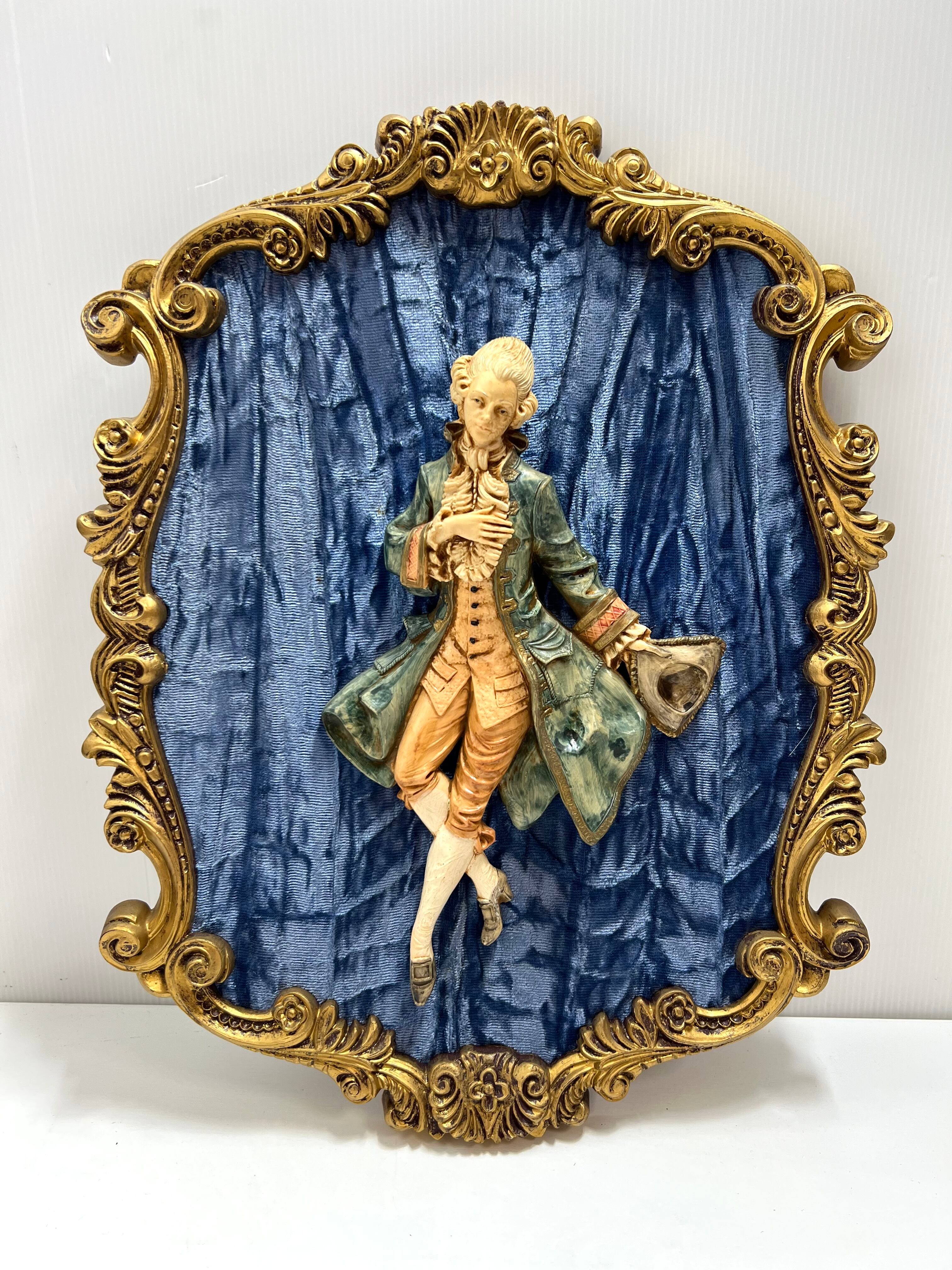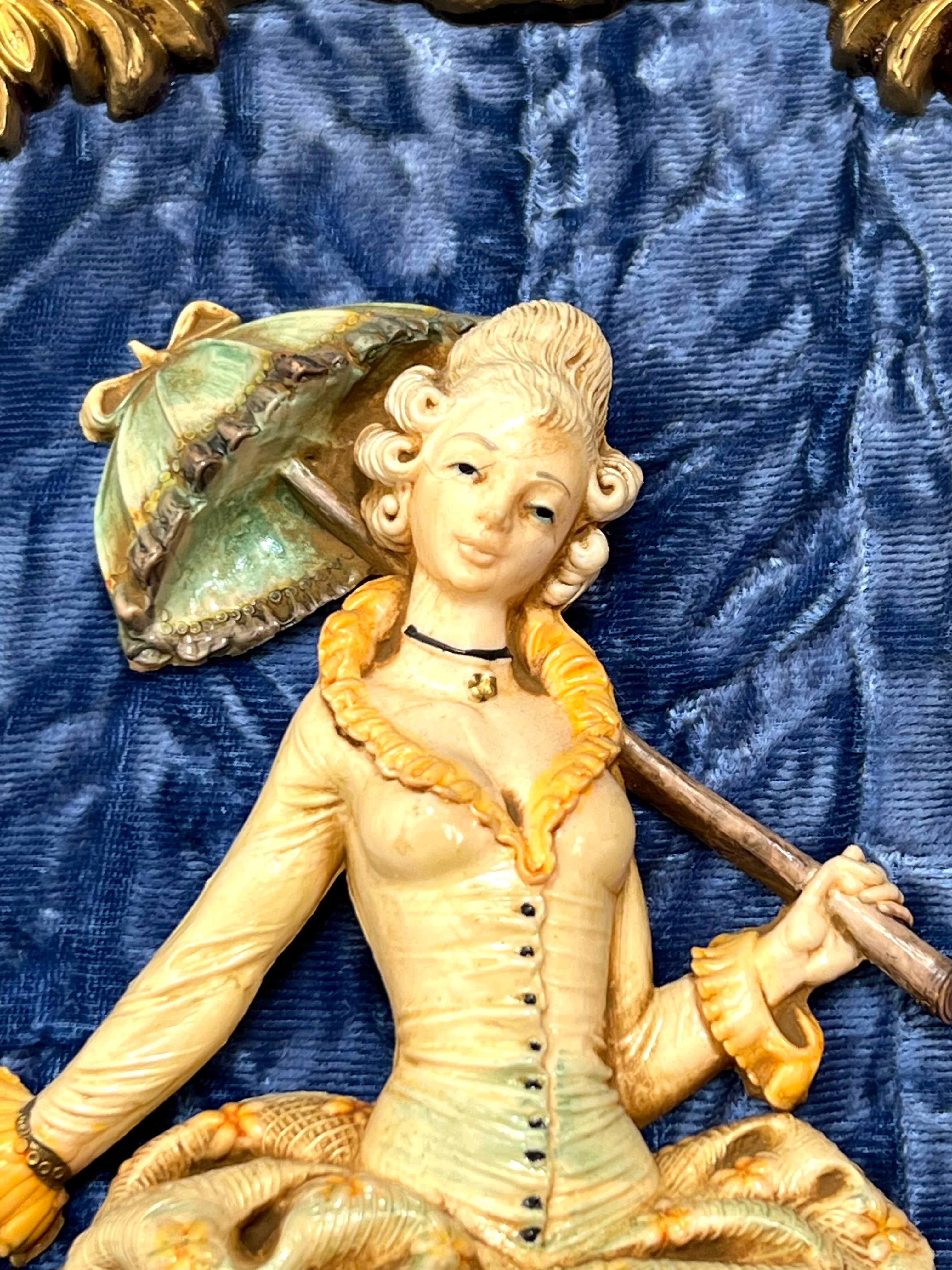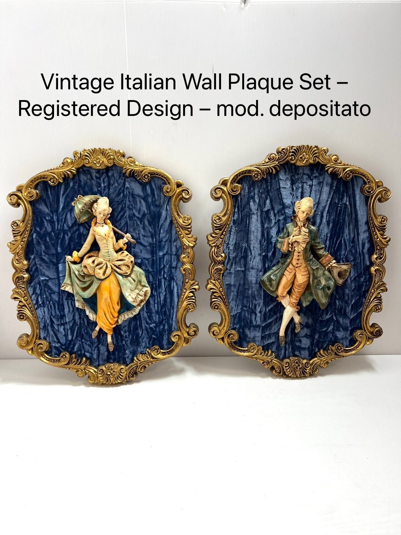 【登録意匠】ヴィンテージ イタリア製 3Dウォールプラーク 男女像2点セット ベルベット背景 mod.depositato 壁掛け装飾 アンティーク調
