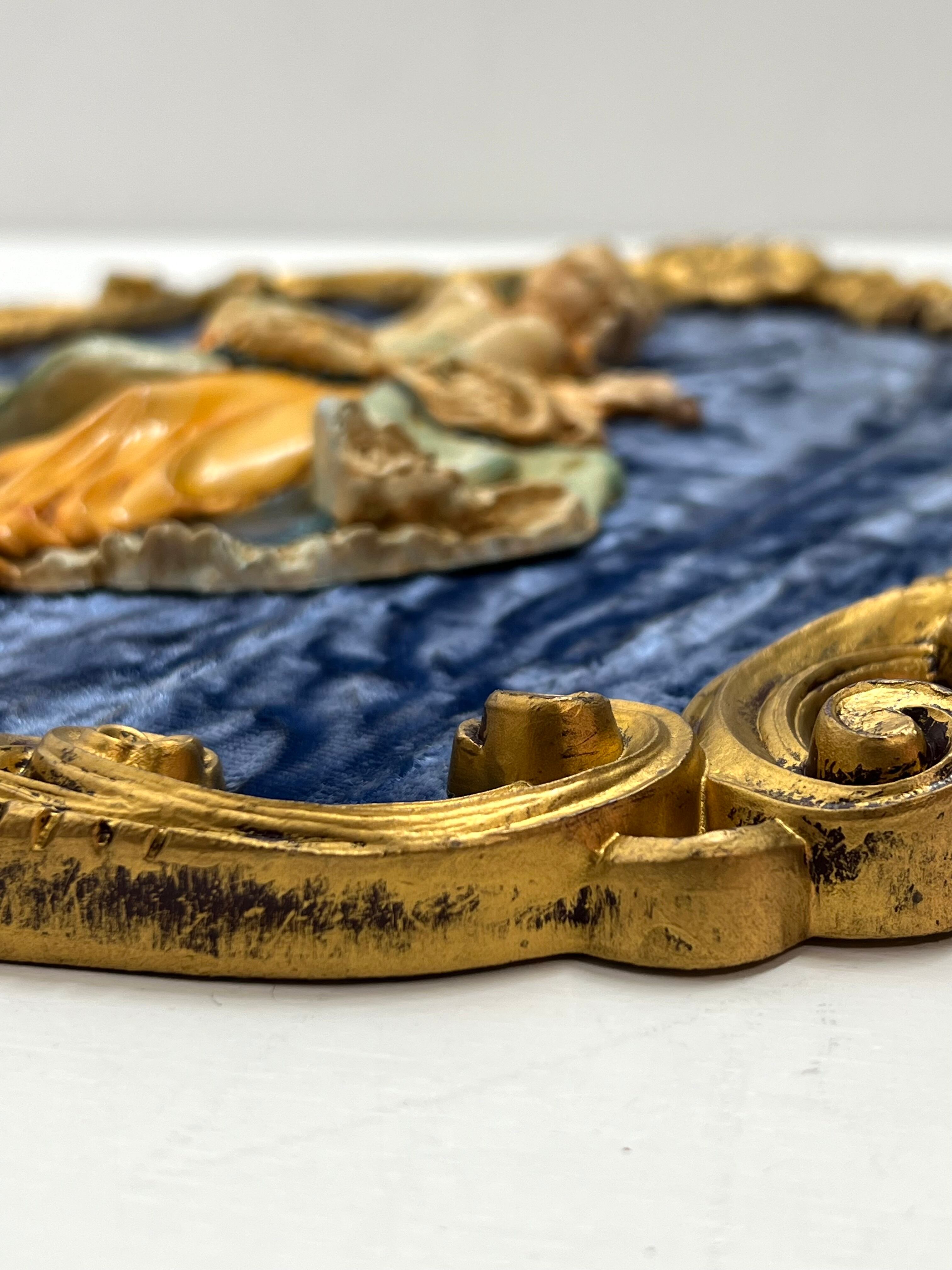 ・素材:石膏系レリーフ+ベルベット背景(ブルー)+木製または樹脂枠