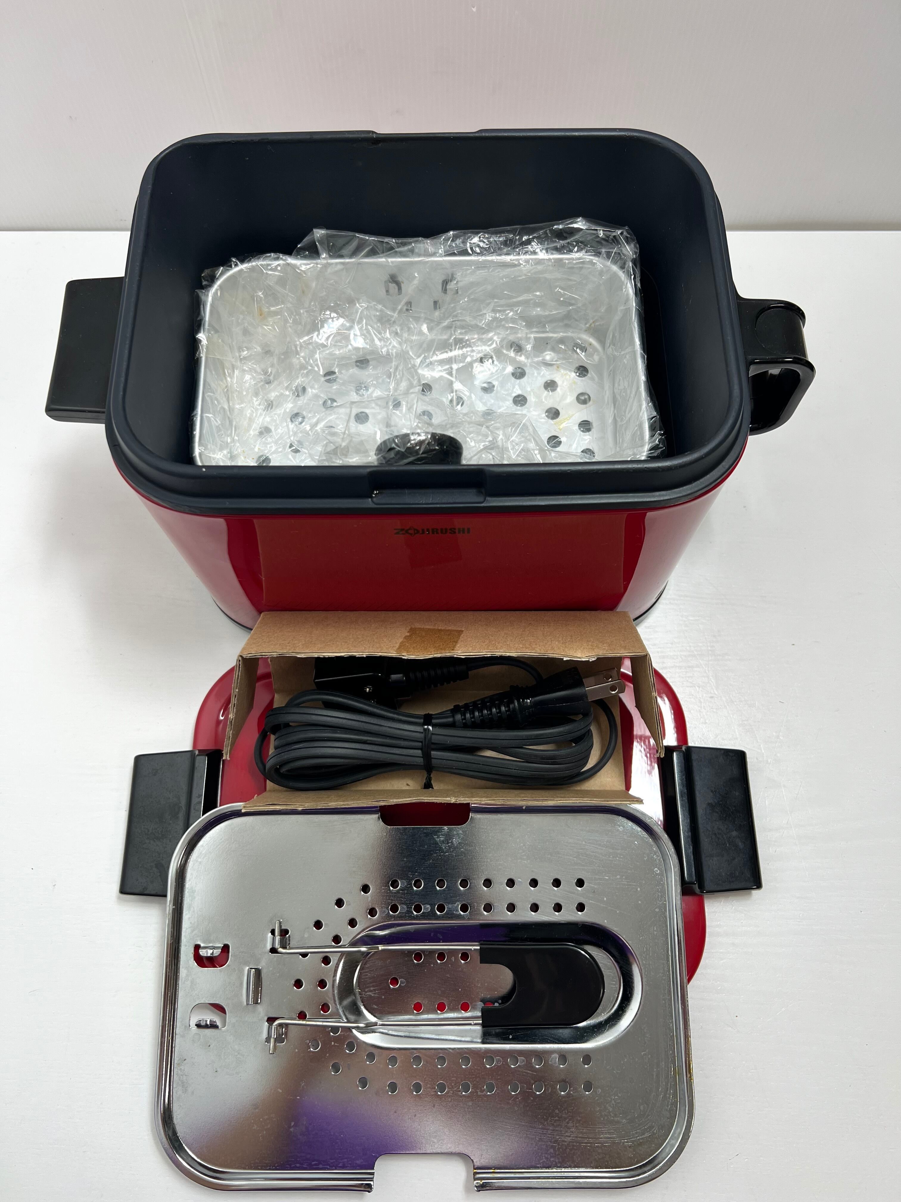 【未使用】象印 ZOJIRUSHI 電気フライヤー あげあげ EFK-A10 フェースレッド 油温調節160~200℃ フタ・バスケット付属