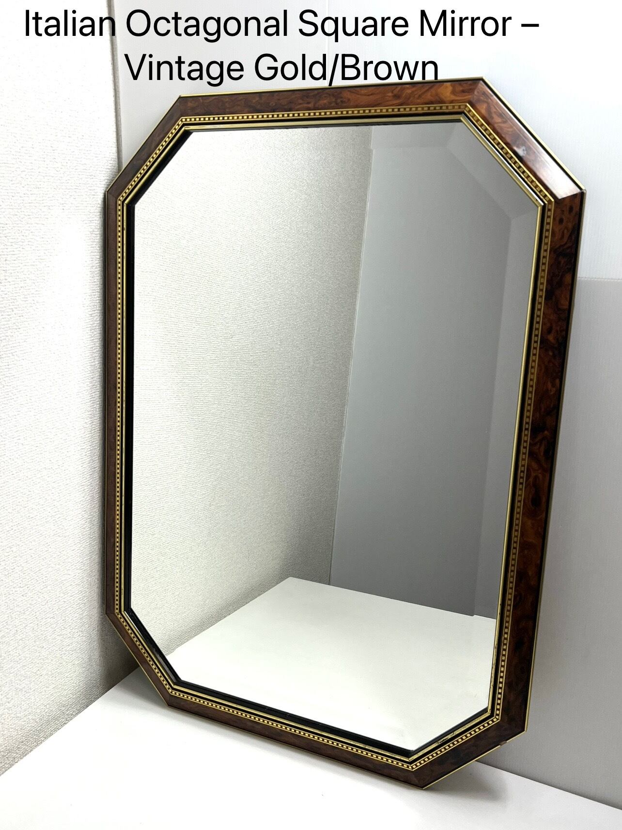 イタリア製 八角スクエア ウォールミラー ゴールド/ブラウン クラシック アンティーク調 少々キズあり