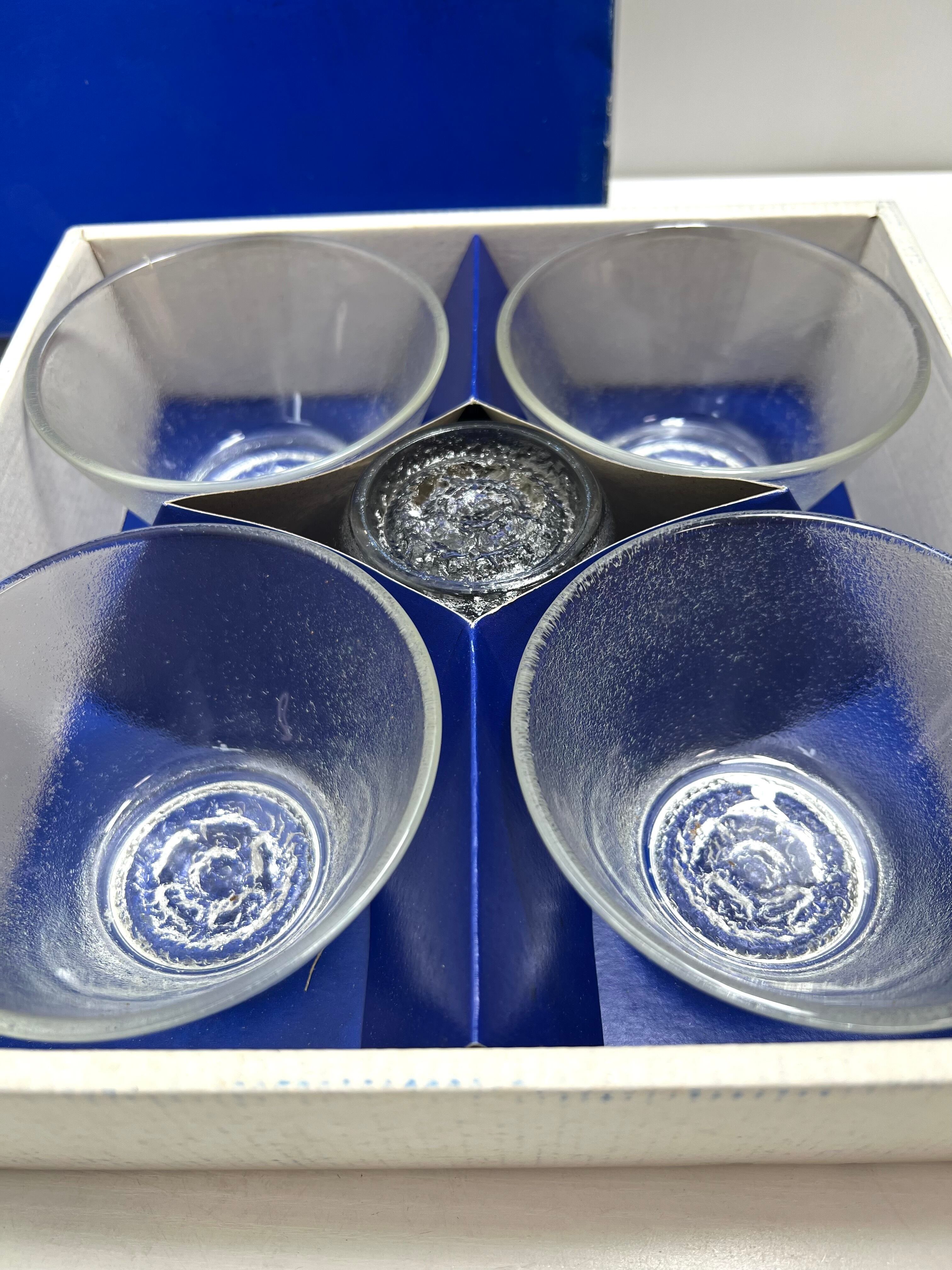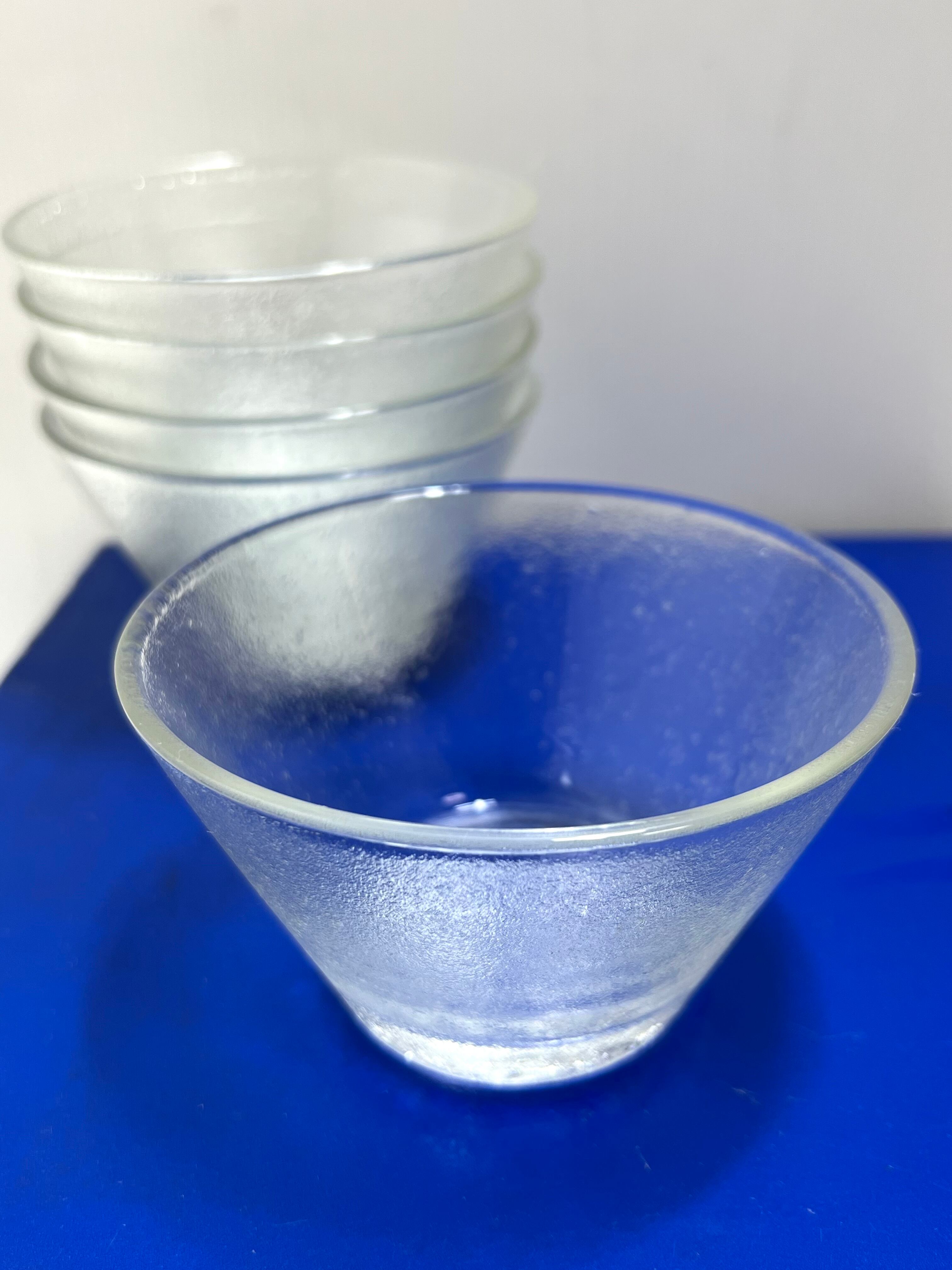 日本製の曽我ガラスによる、上品なくもりガラスのデザート鉢5個セットです。