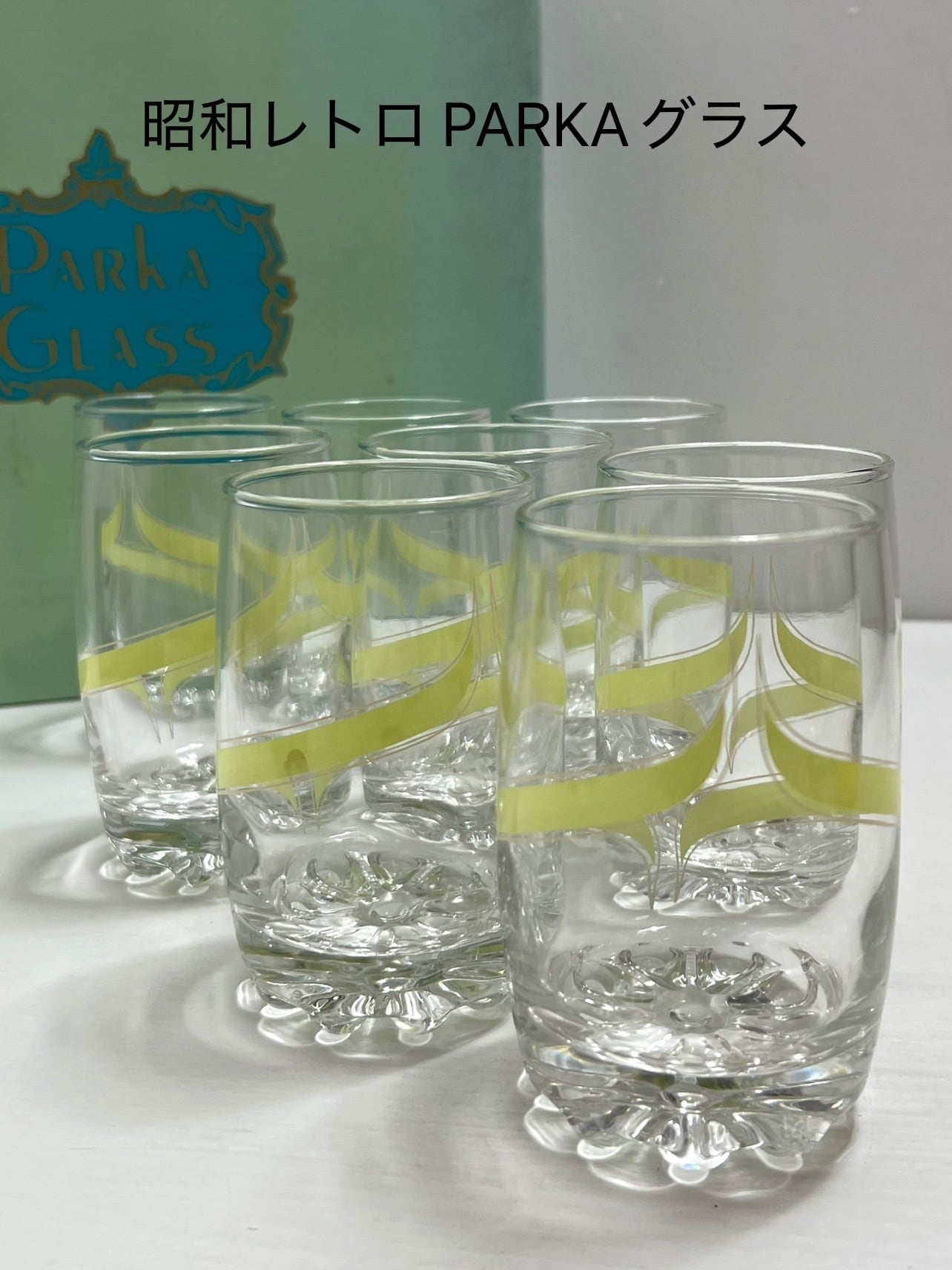 【昭和レトロ】PARKA GLASS プリントグリーンライン タンブラー 8個セット 254cc グラス コップ