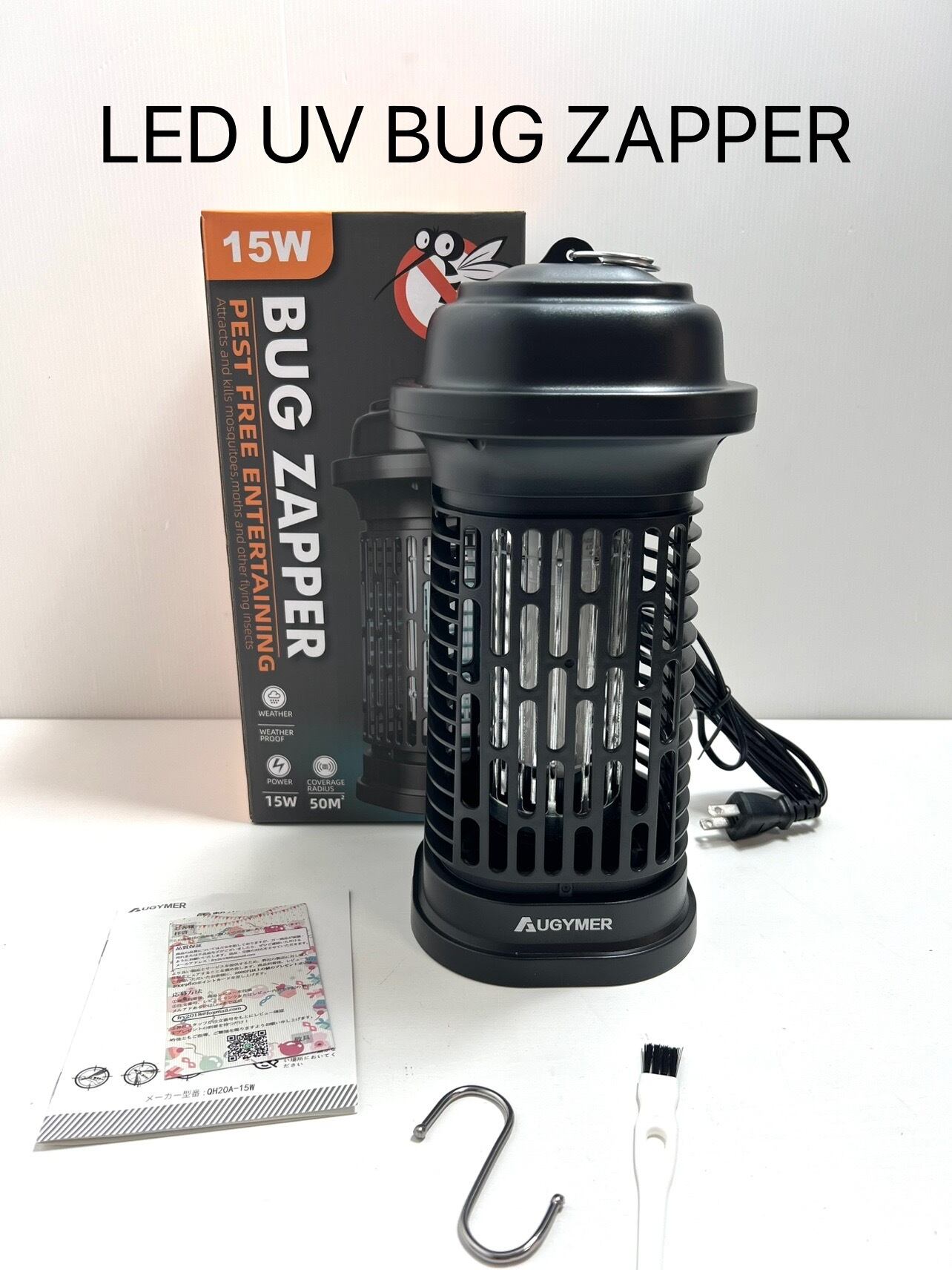 電撃殺虫器 コバエ取り 捕虫器 殺虫灯 屋内外両用 IPX4防水 15W QH20A-15W 50㎡対応 虫除け 蚊退治 LED UV BUG ZAPPER