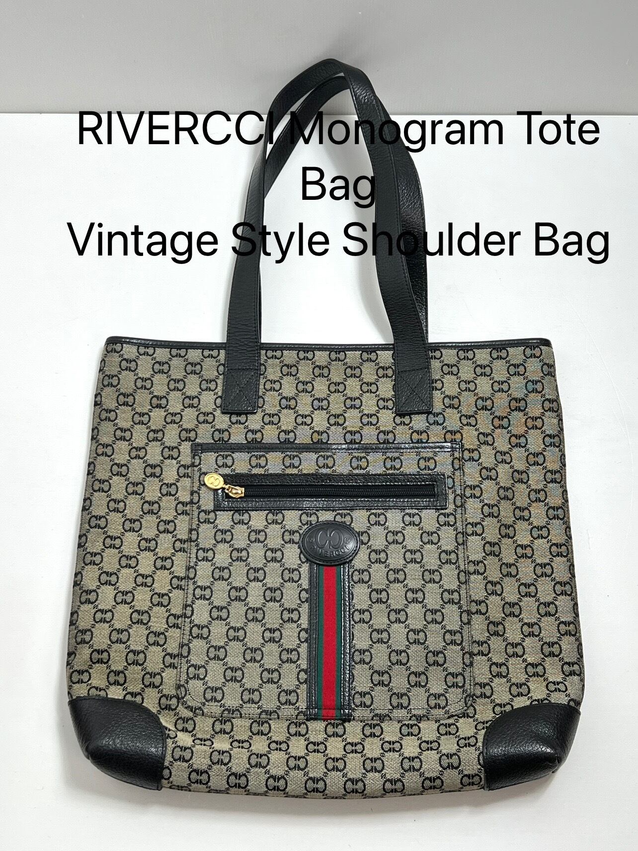 美品★RIVERCCI ショルダーバッグ モノグラム柄 シンプル 大容量 多機能収納 トート風 ユニセックス