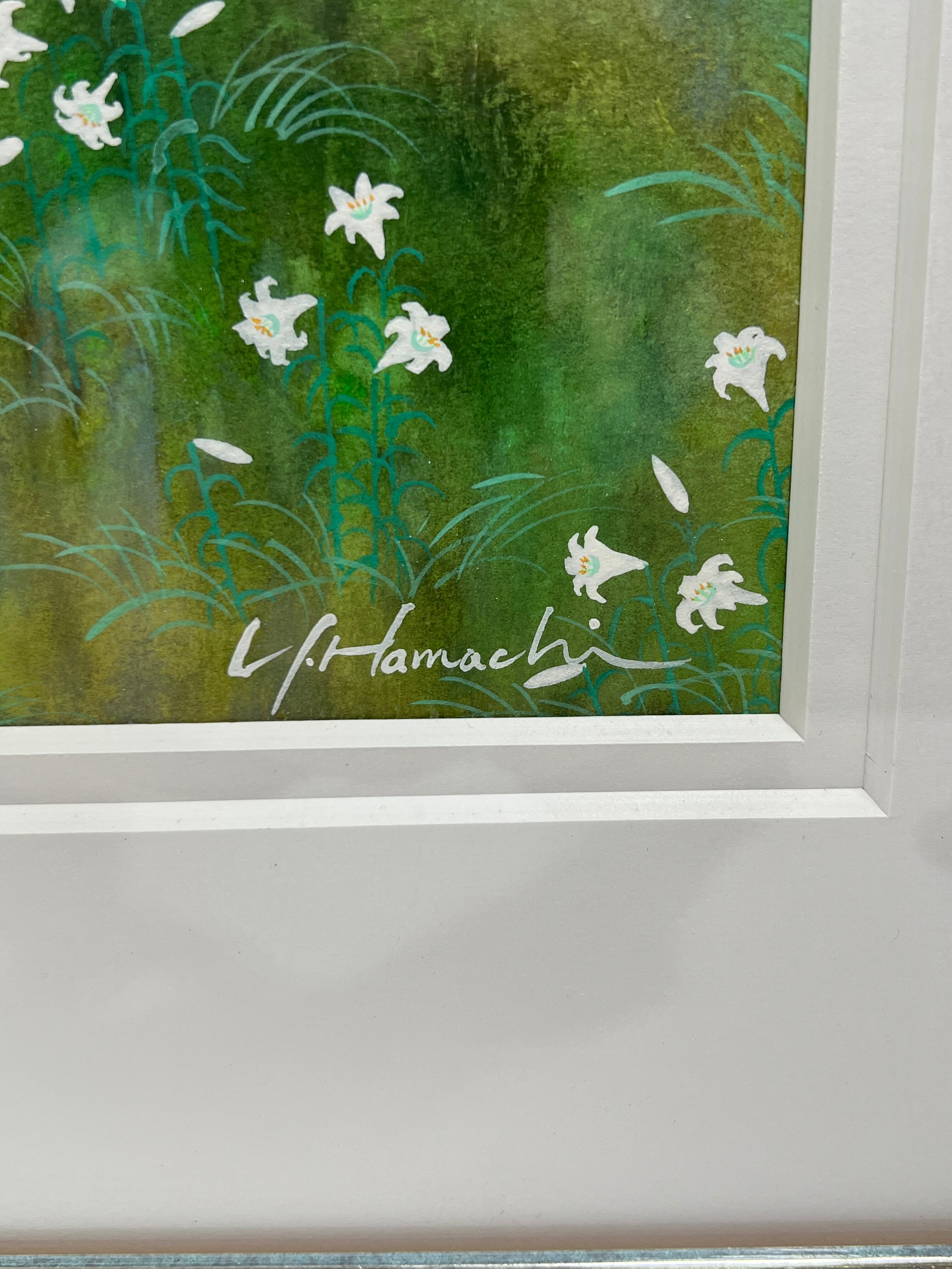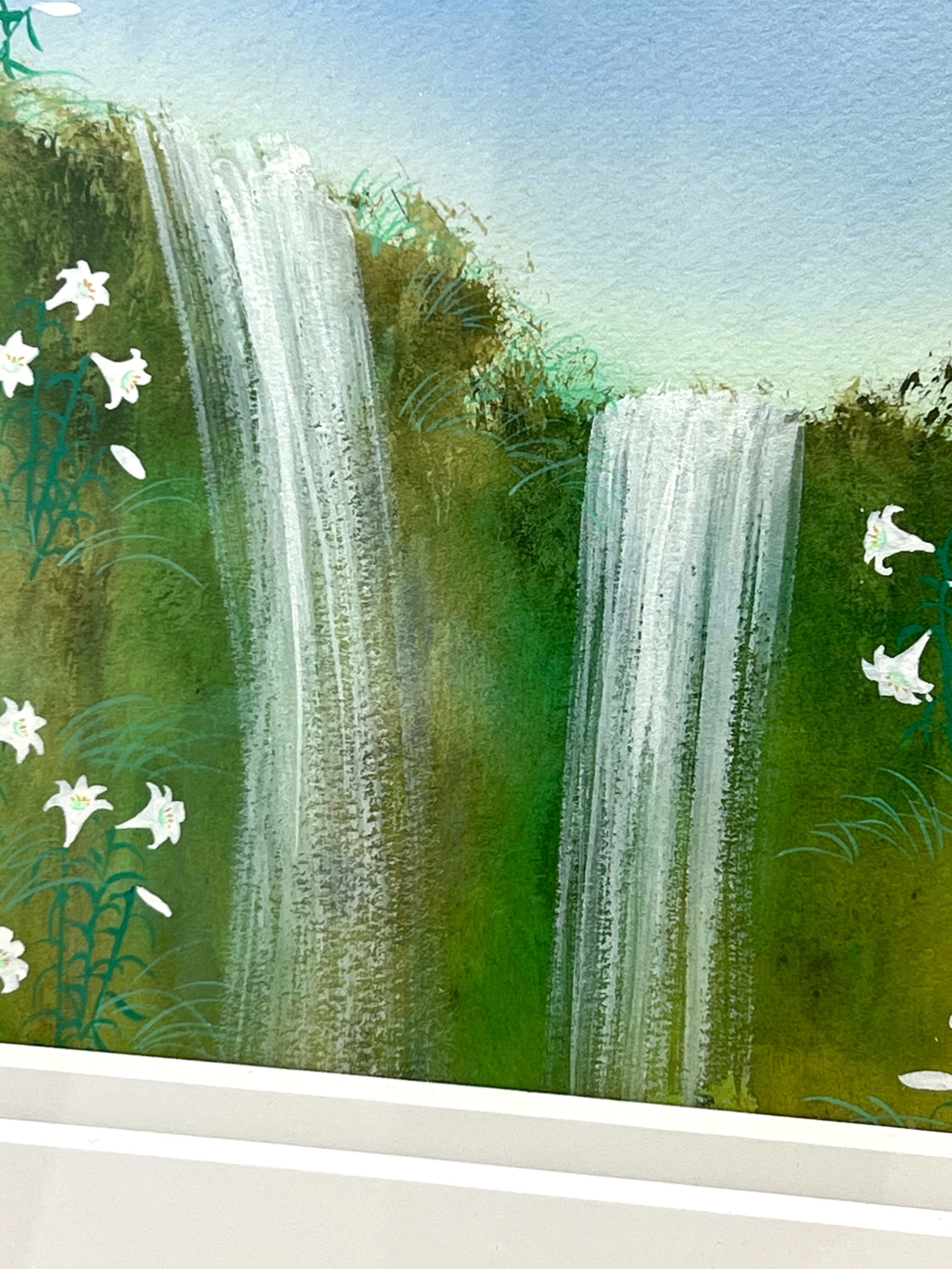 - 滝やユリの花が描かれており、優しく癒やしのある作品です。
