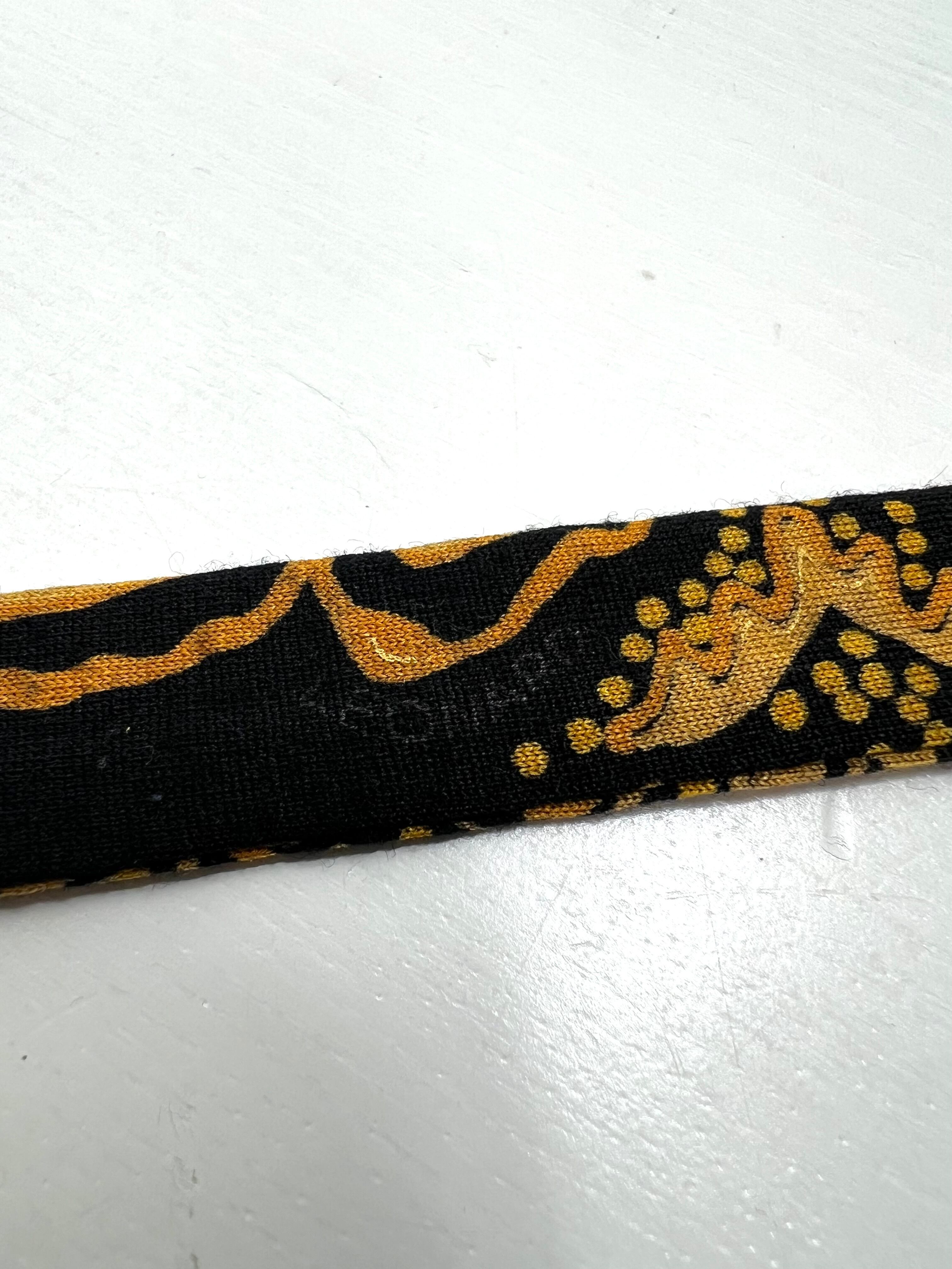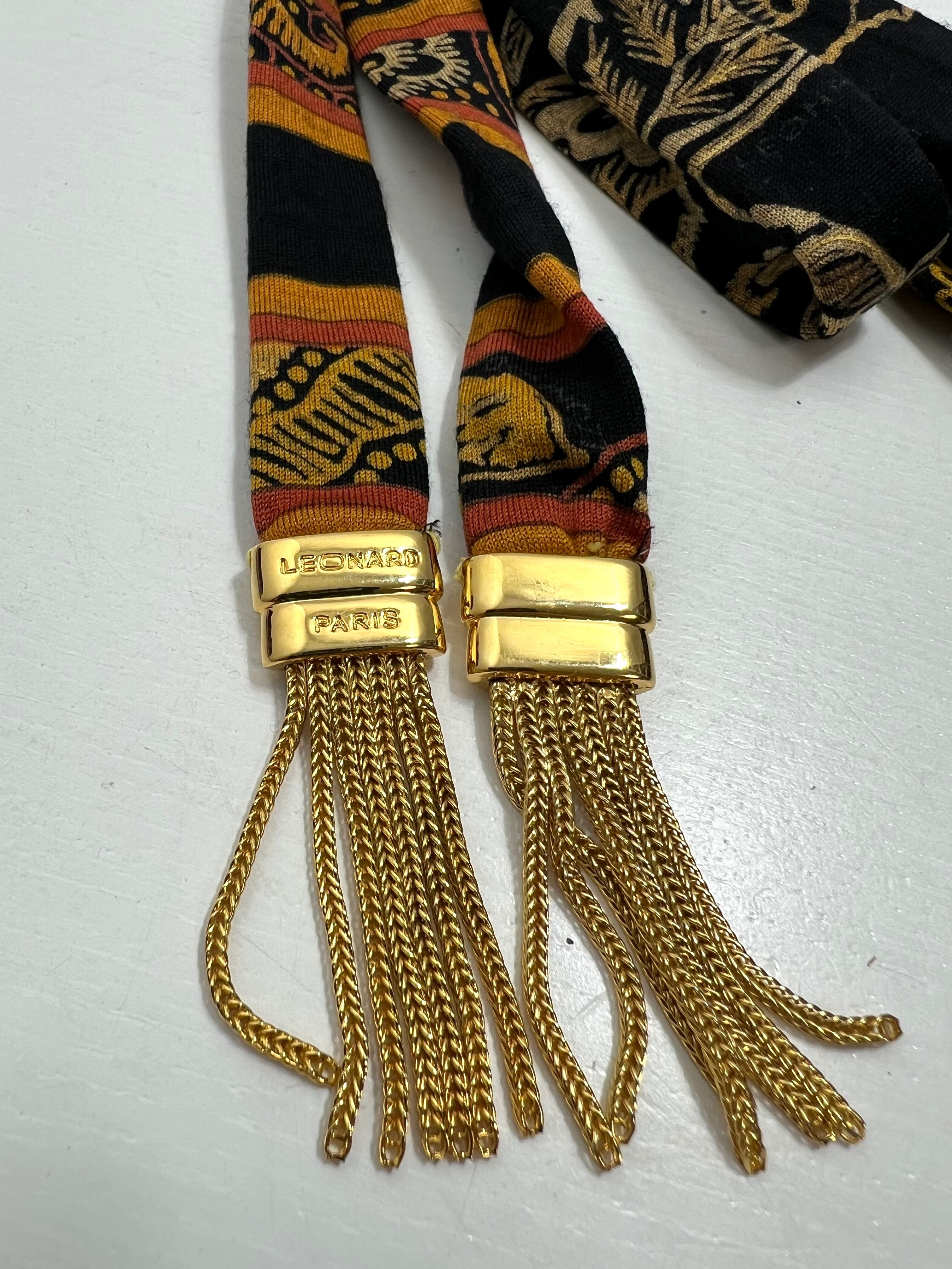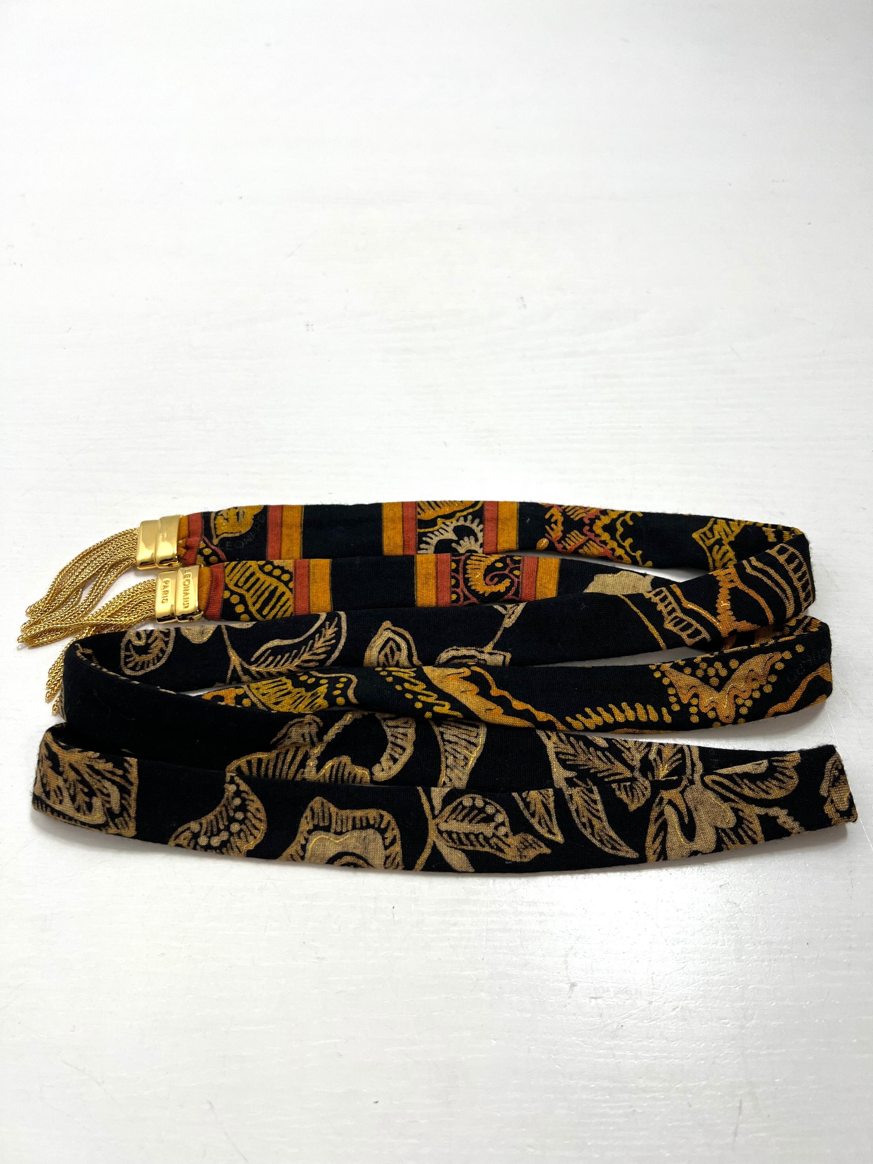 LEONARD レオナール 紐ベルト フリンジ付き 金具 ブラック×ブラウン 146cm 中古美品 細ベルト アクセント レディース