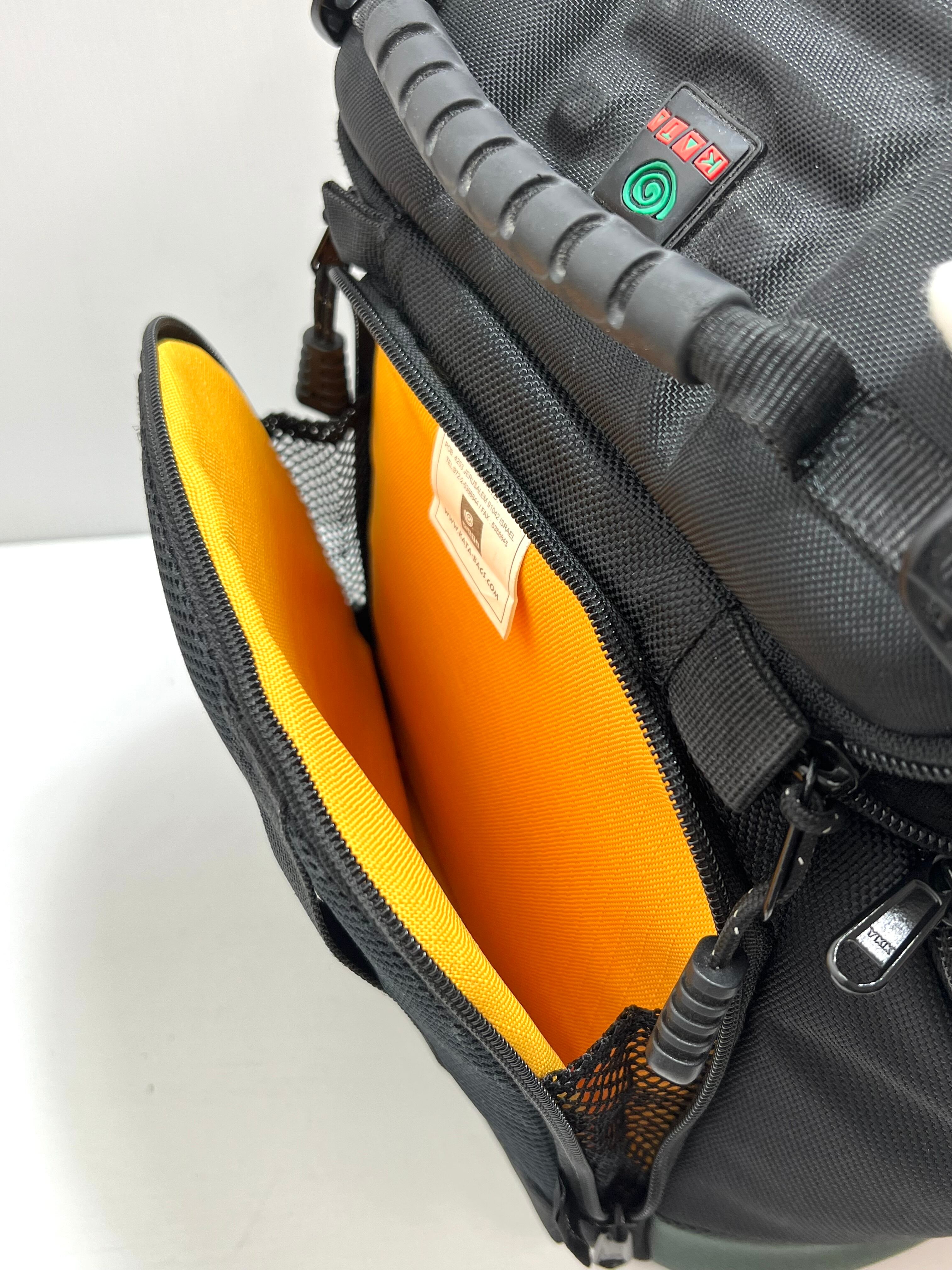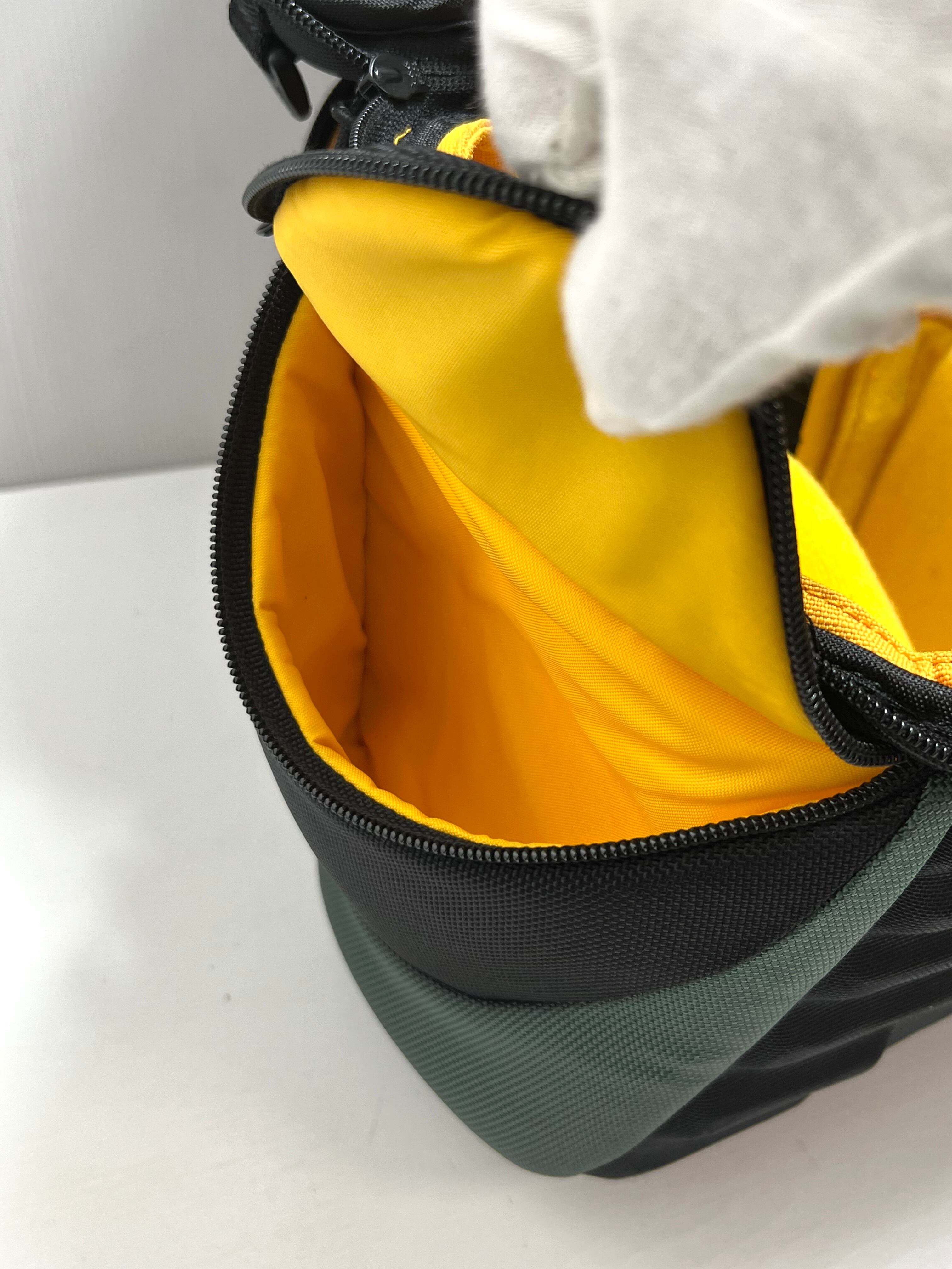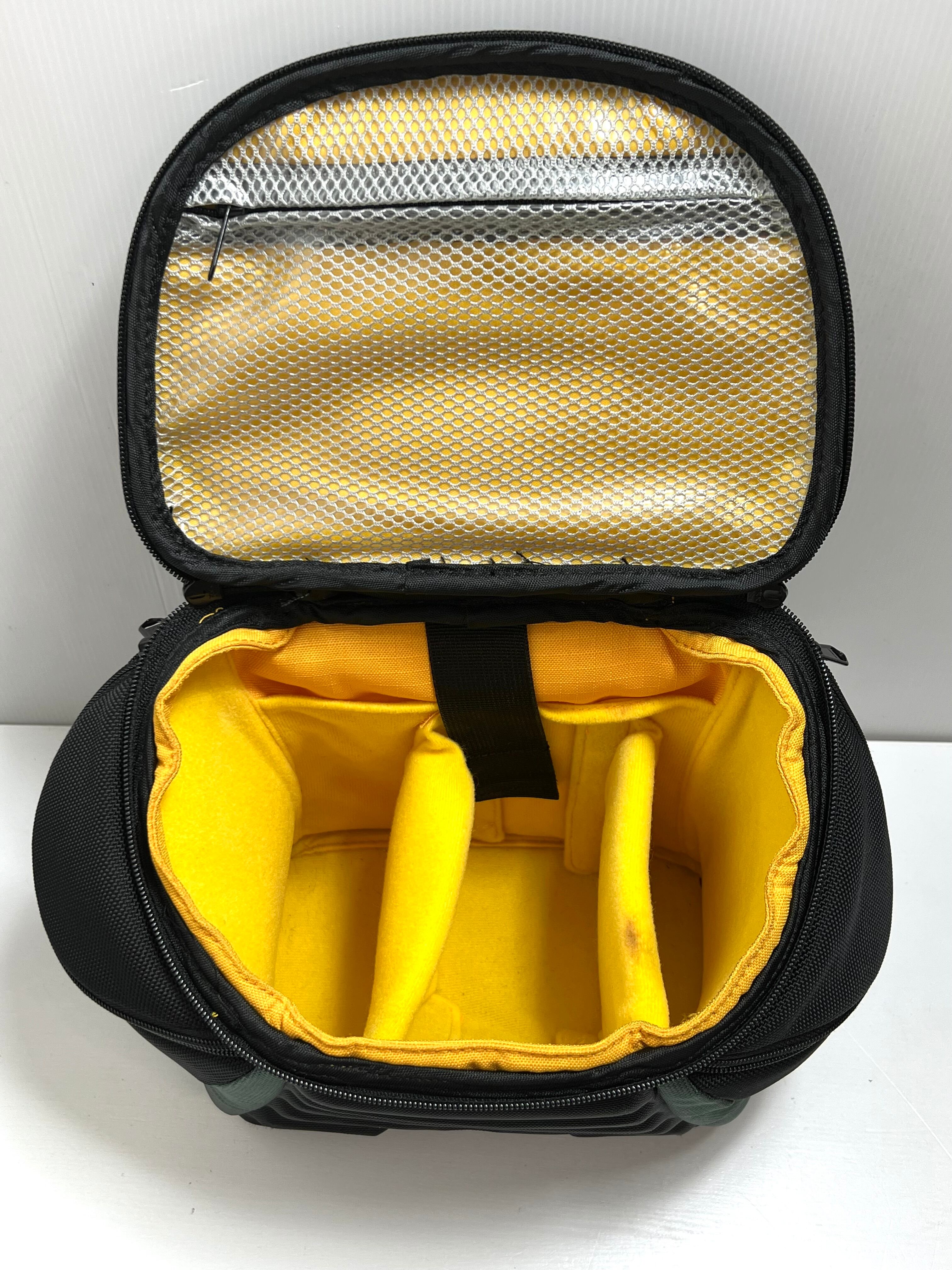小型一眼レフカメラ+予備ズームレンズ1本がちょうど入る、コンパクトで機能的な設計。
