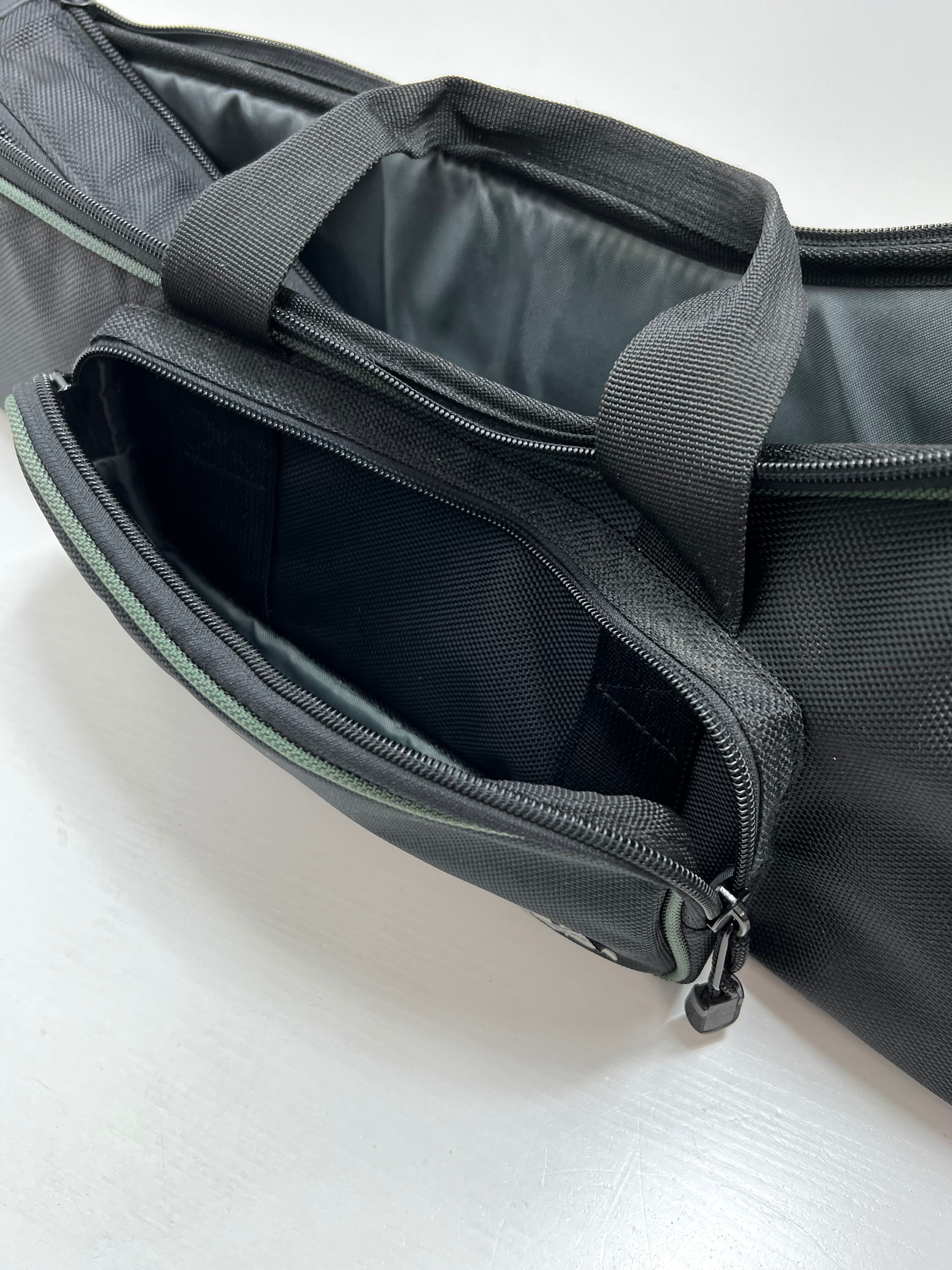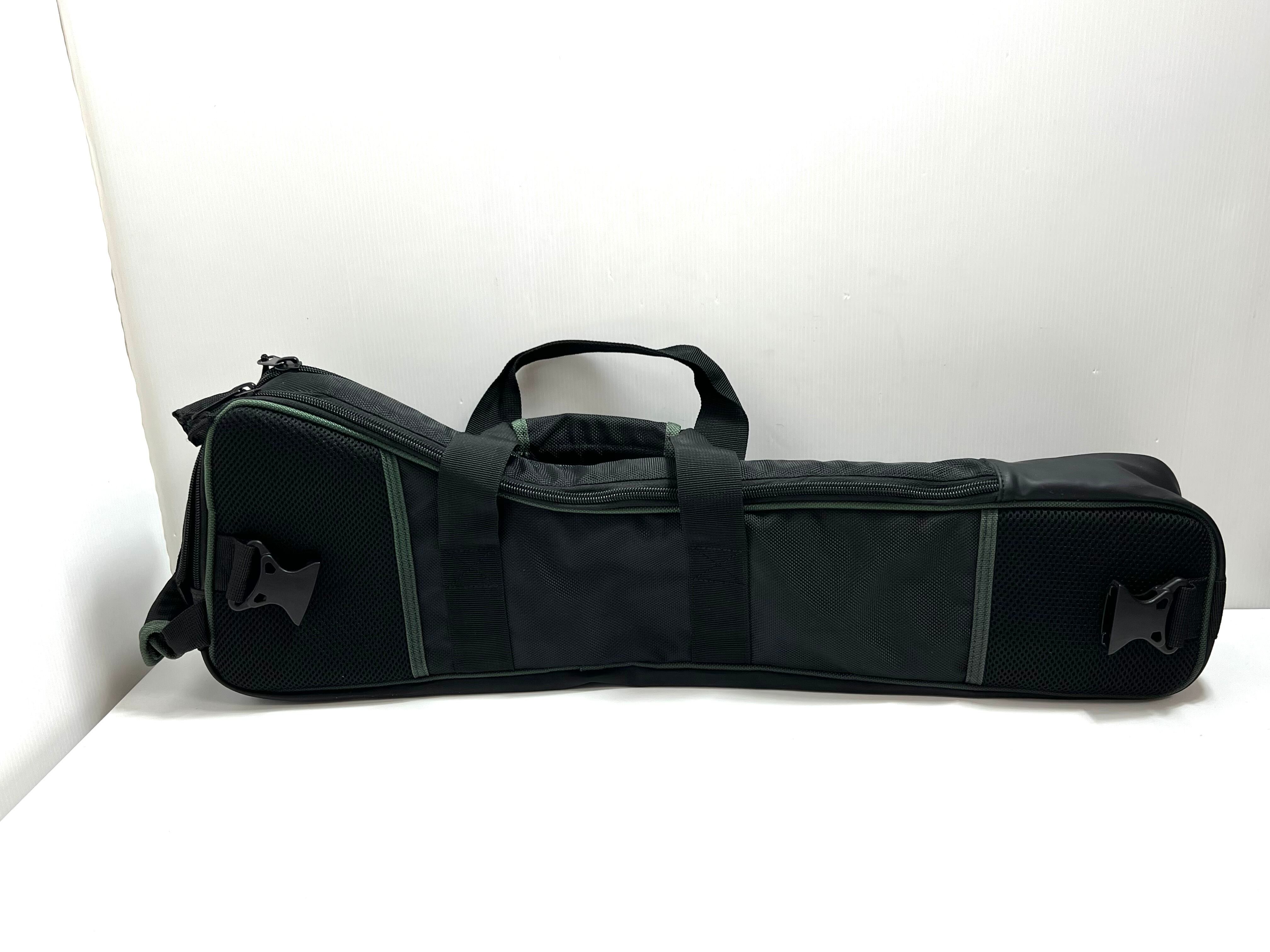 全長約62cm、上部幅 約20cm、下部幅 約13cm、マチは約10cmで設計されており、さまざまなサイズの三脚に対応します。