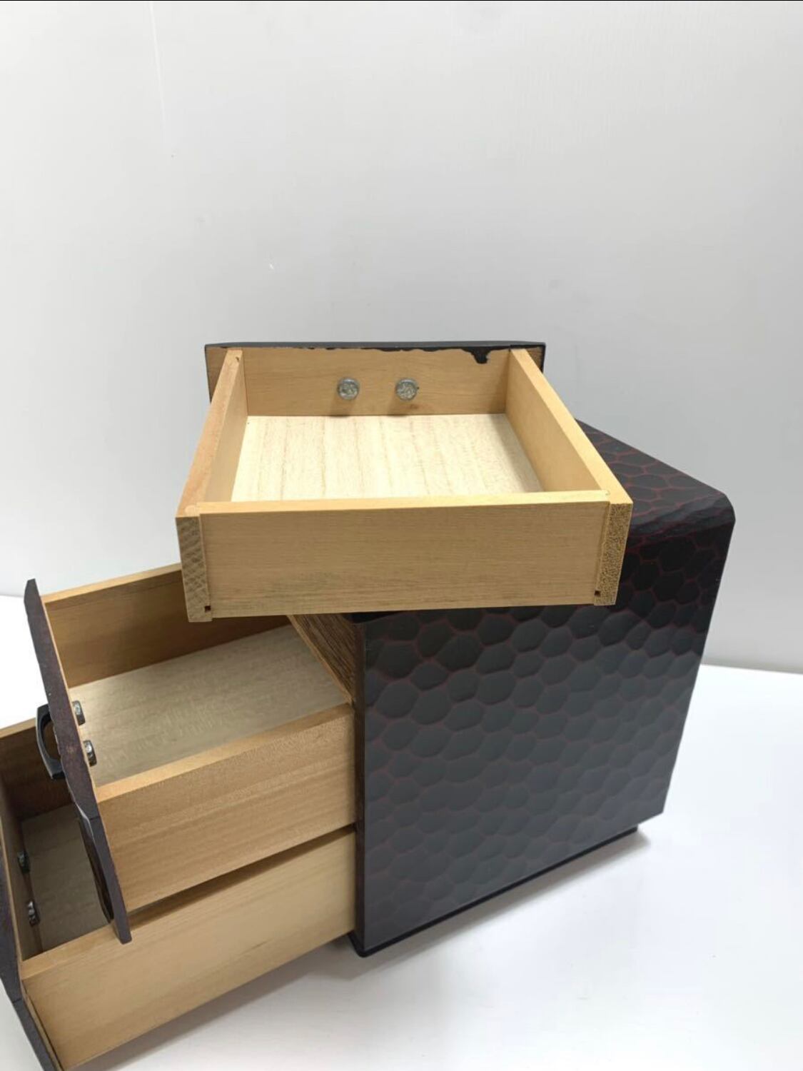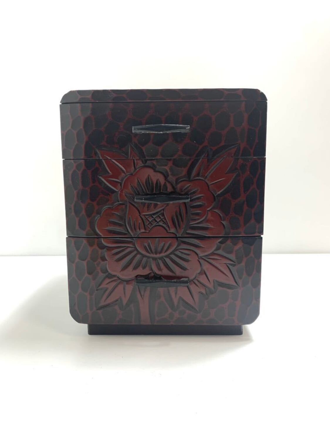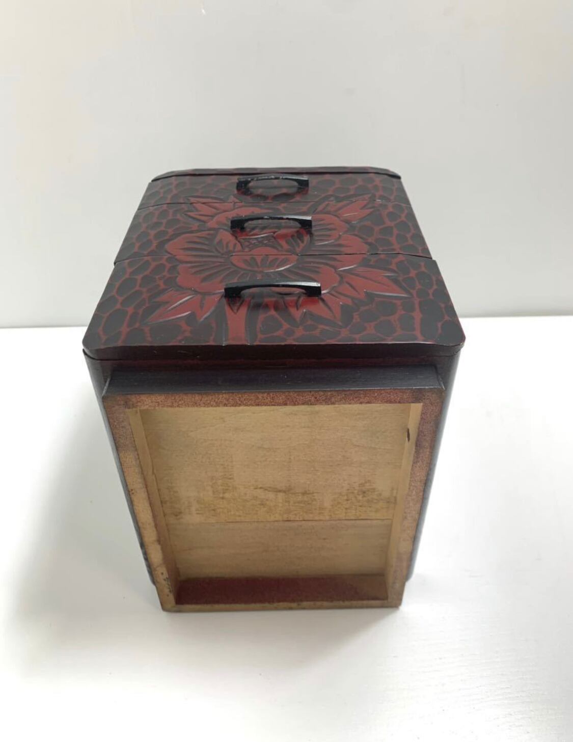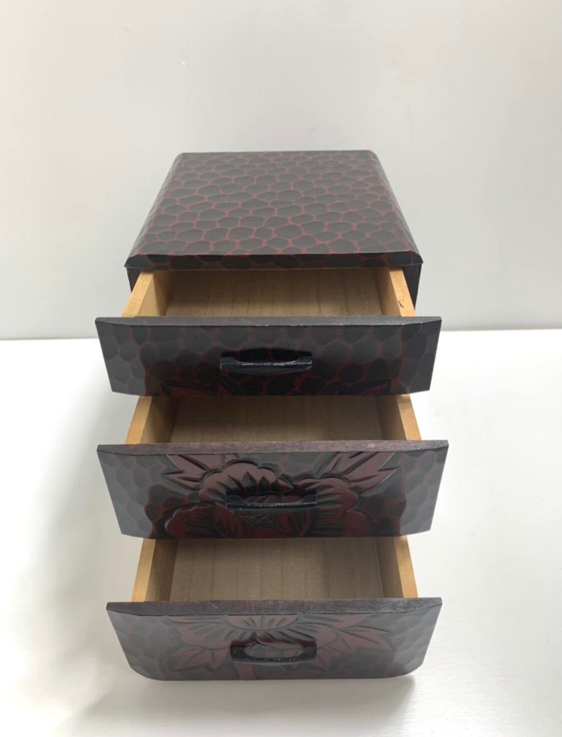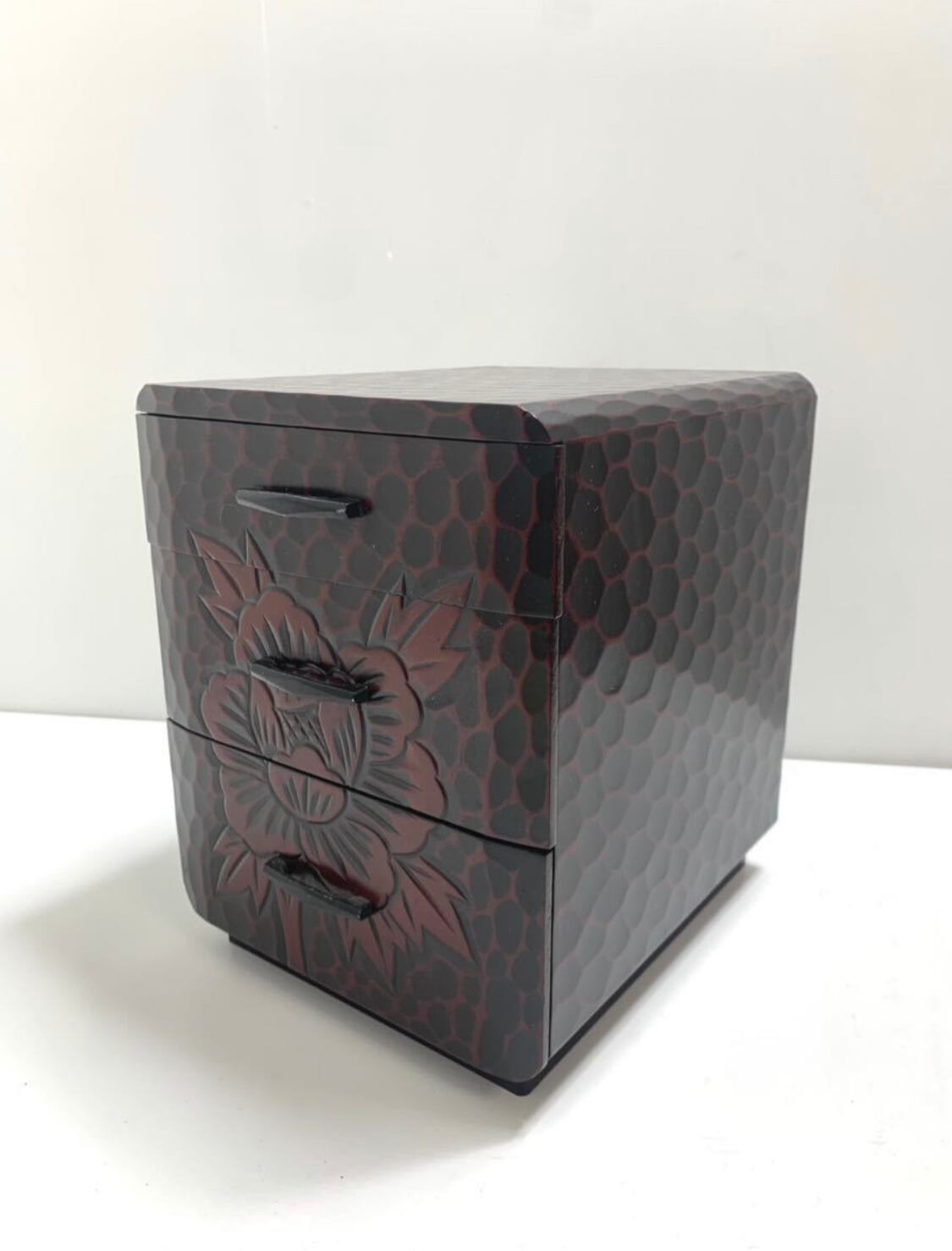 【美品】伝統工芸鎌倉彫り 華 三段 小引き出し 小物入れ木製 和家具