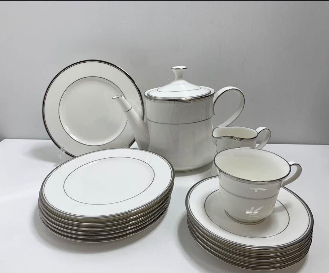 ノリタケ Noritake BONE CHINA FARBANKS カップ&ソーサー カップ×1, ソーサー×5枚ティーポット×1/ クリーマー×1/ ケーキ皿×7枚 不揃い