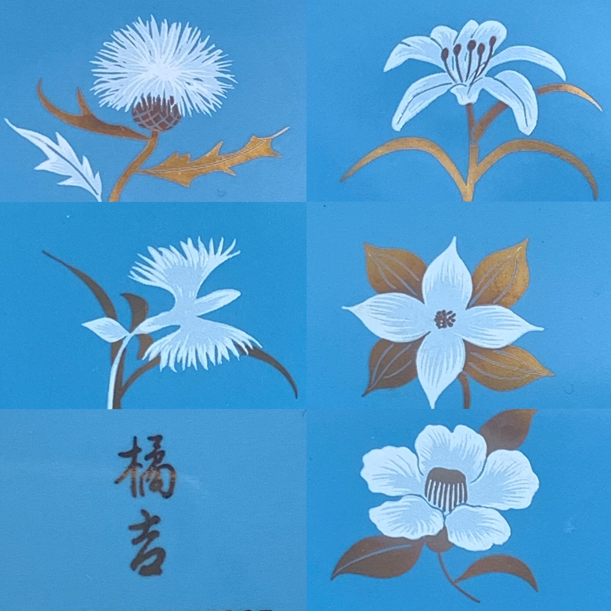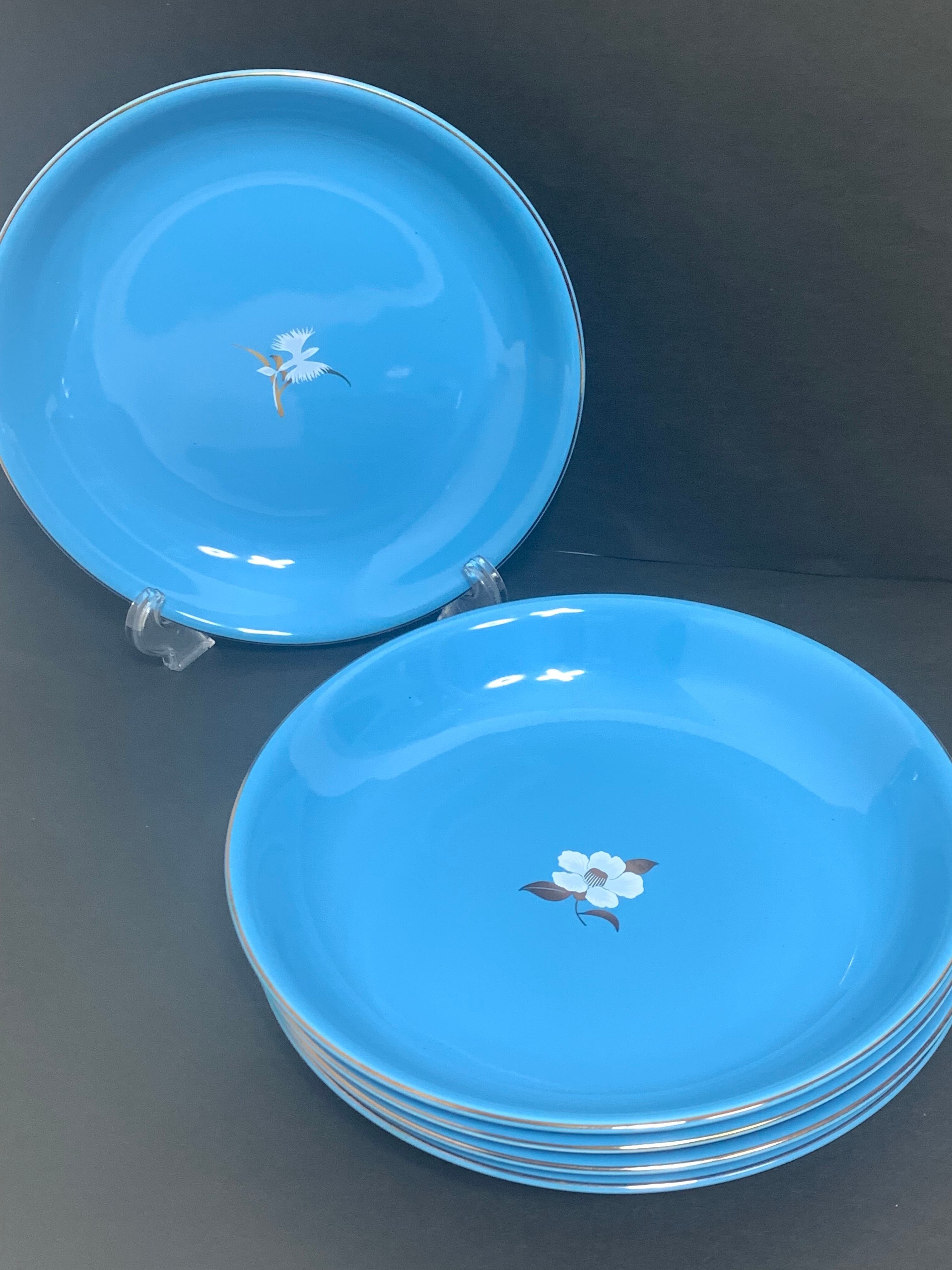 【未使用】たち吉 花もようカレー皿 TACHIKICHI 盛皿 中皿 プレート 和食器 陶器 青色 金彩 5枚