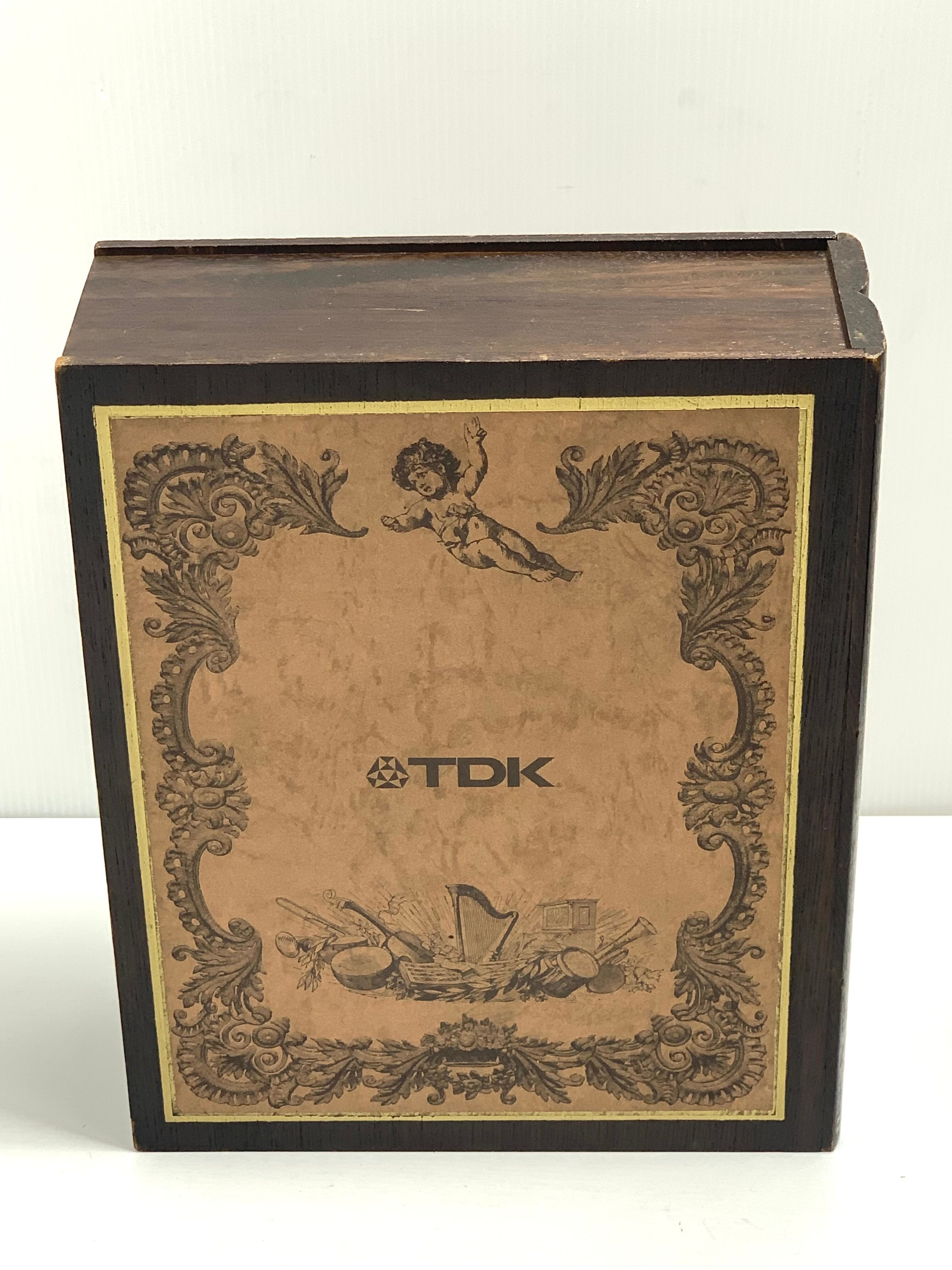 大切なカセットテープのコレクションを、ブックスタイルの木製箱に収めませんか?CASSETTE LIBRARYブランドからリリースされた、非売品のTDKノベルティーです