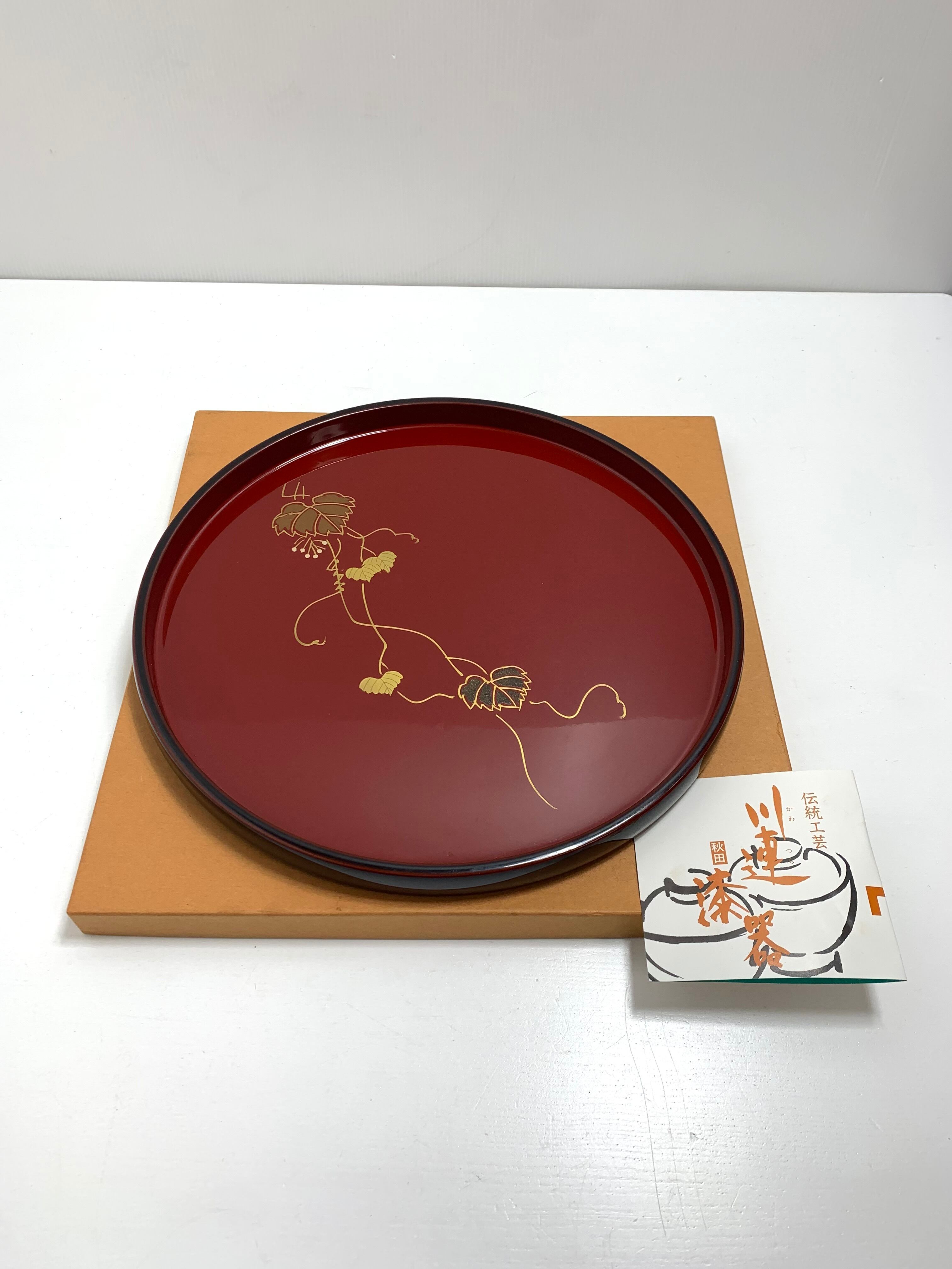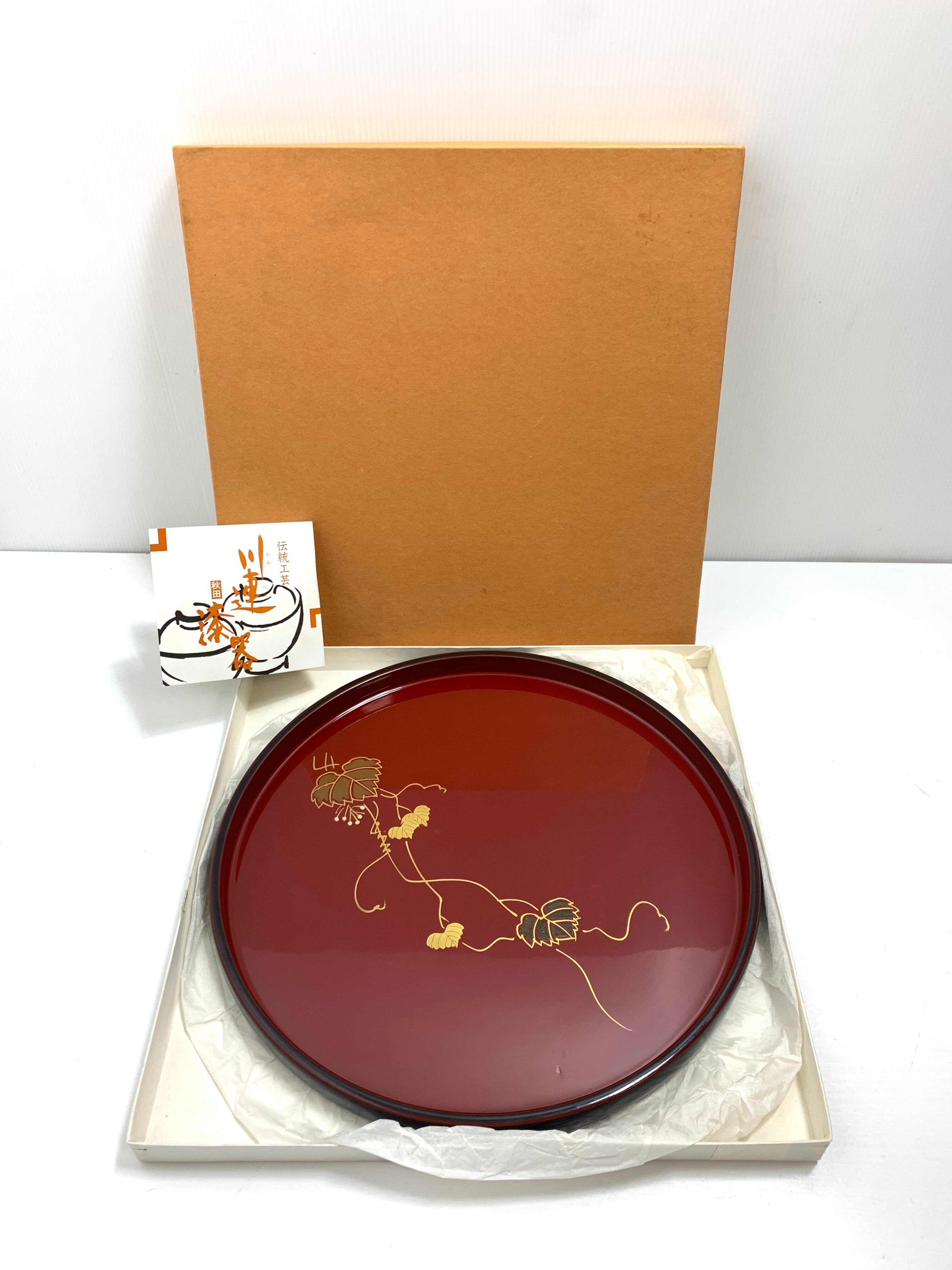 川連漆器 お盆 丸盆 秋田伝統工芸 本漆 天然木 純国産