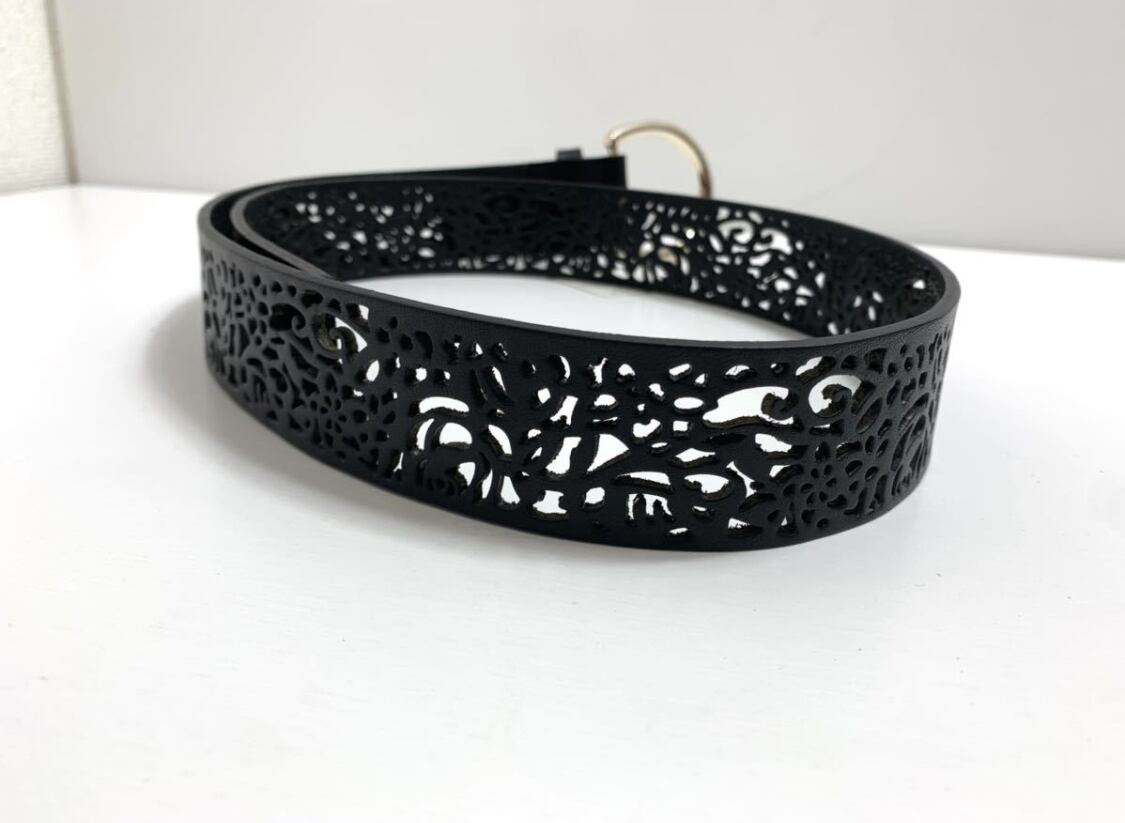 【未使用タグ付き】ボンサンス BON SENS 牛革レザーベルト レディース 全長103cm幅4cm ブラック
