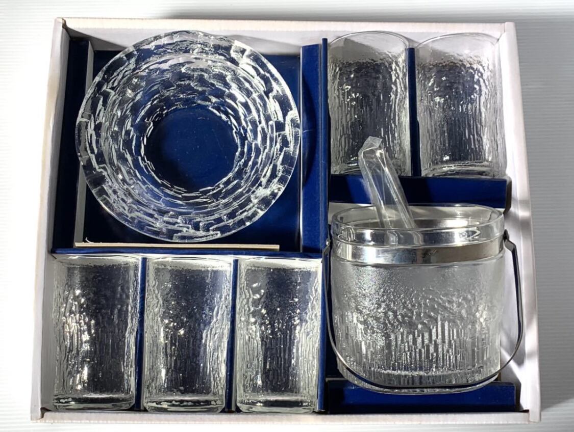 和風ガラス器セット(水割り)灰皿、氷入れ、トング、グラス 梓川 佐々木硝子 昭和レトロ