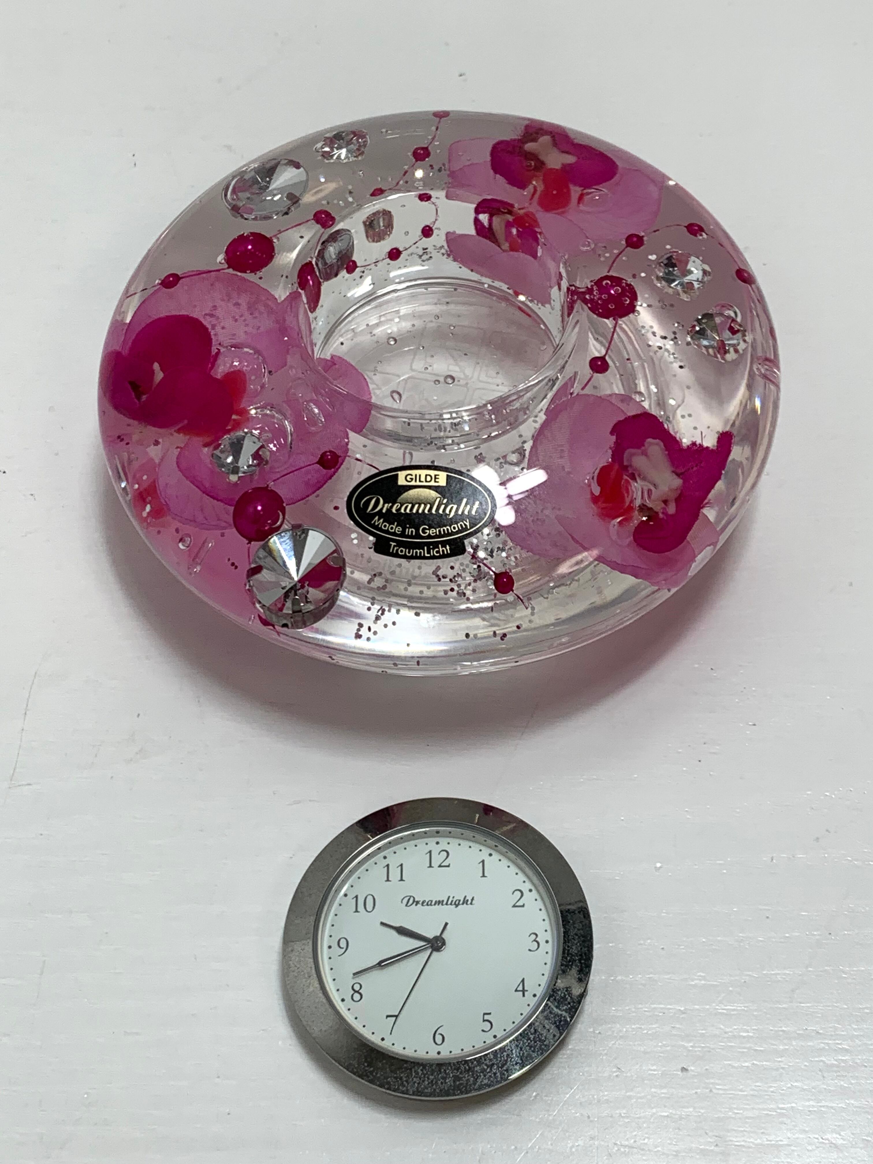 ドイツ製 ドリームライト 卓上時計 オーキッドダイヤモンド & キャンドルホルダー ドイツ製ガラス クリスタル