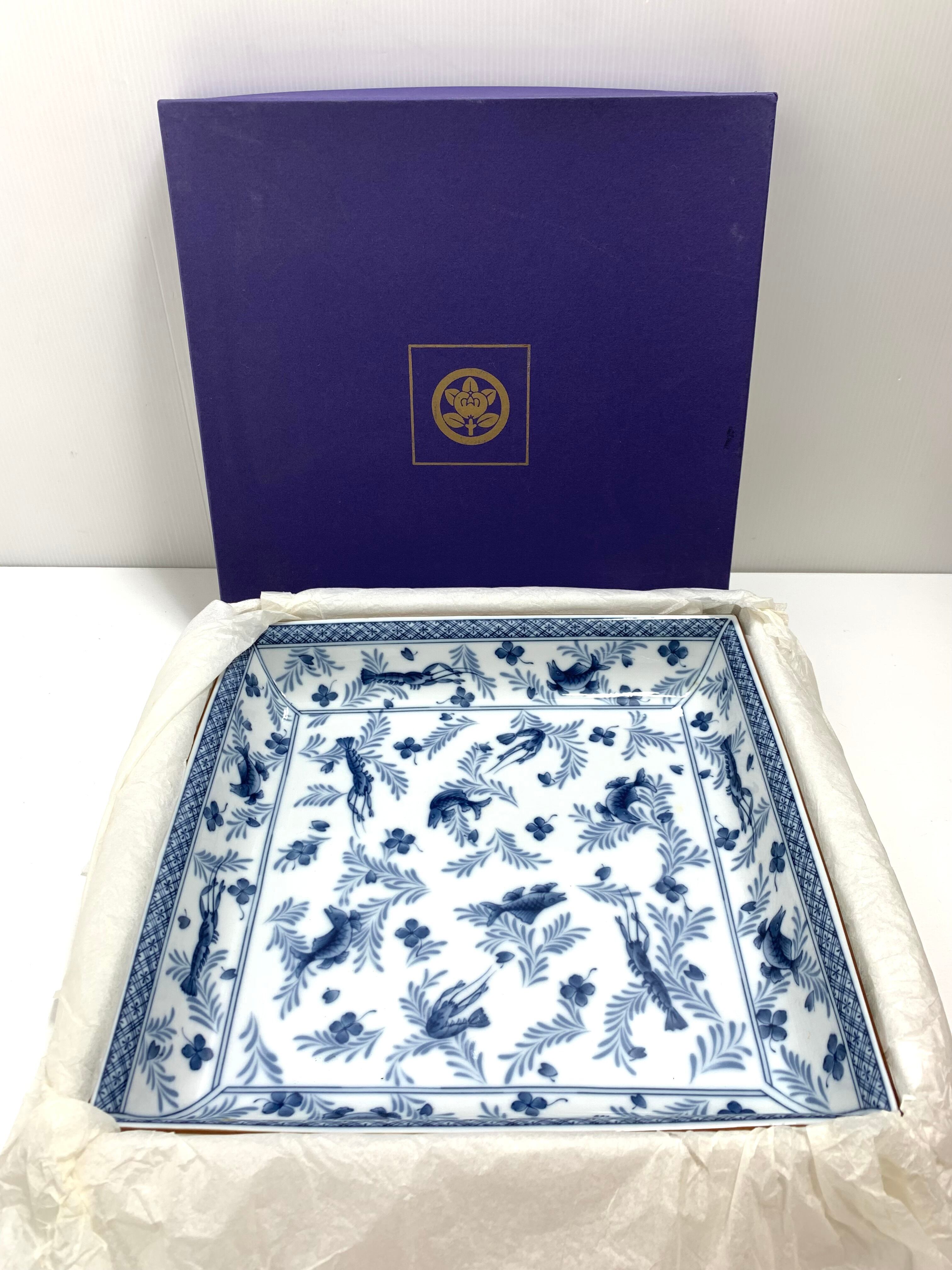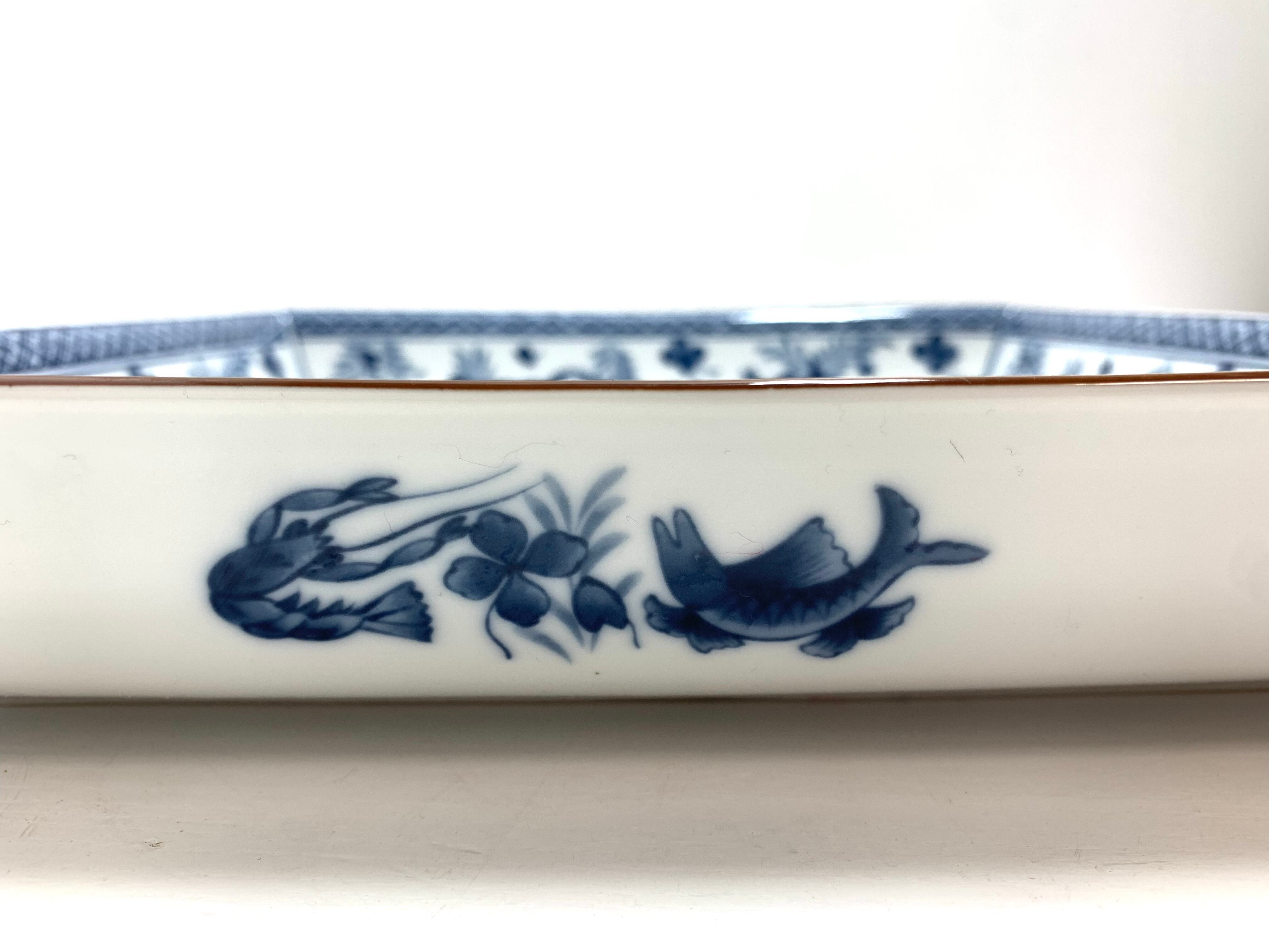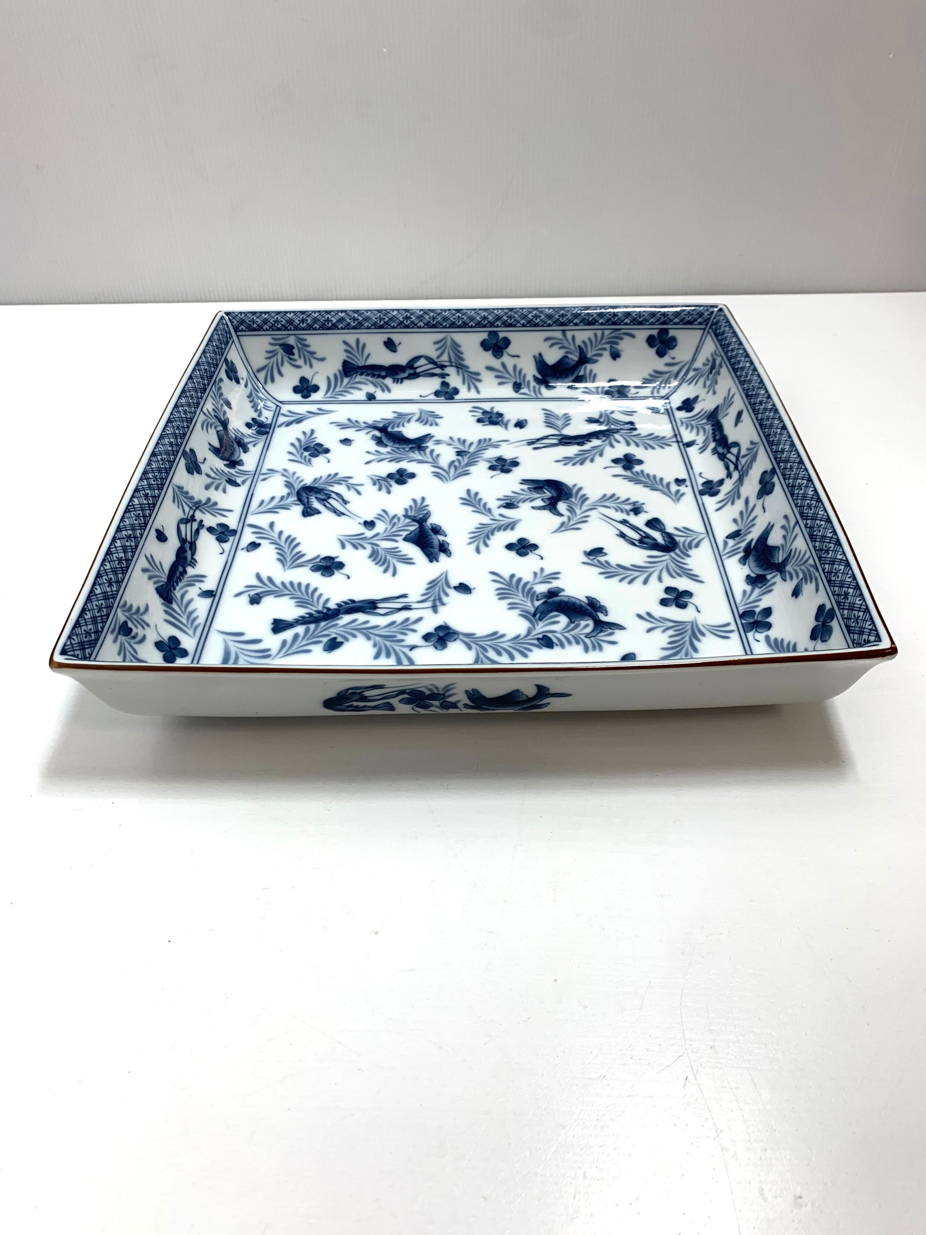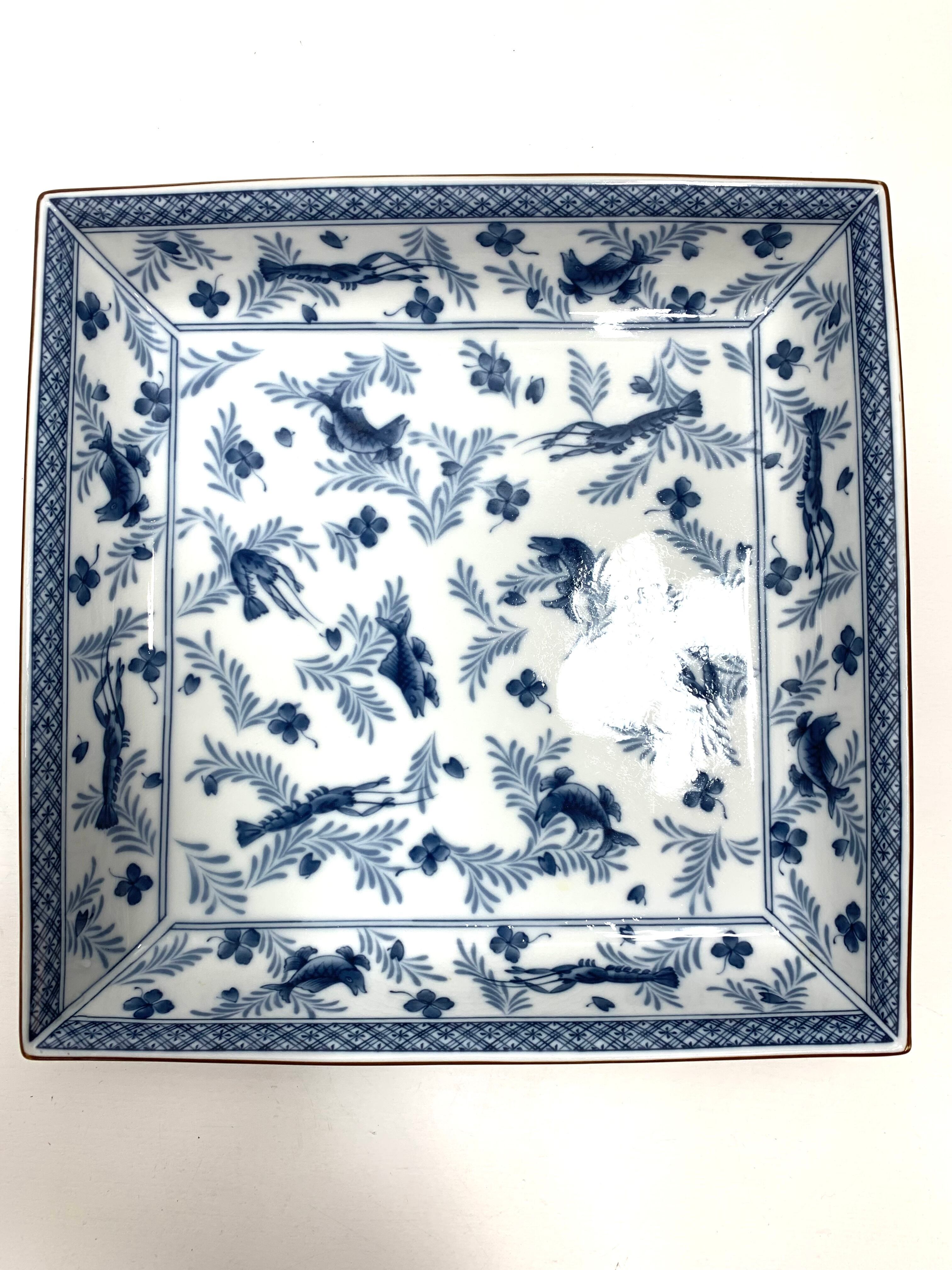【未使用】橘吉たち吉 遊魚角盛鉢 染付色絵角大皿 魚海老柄