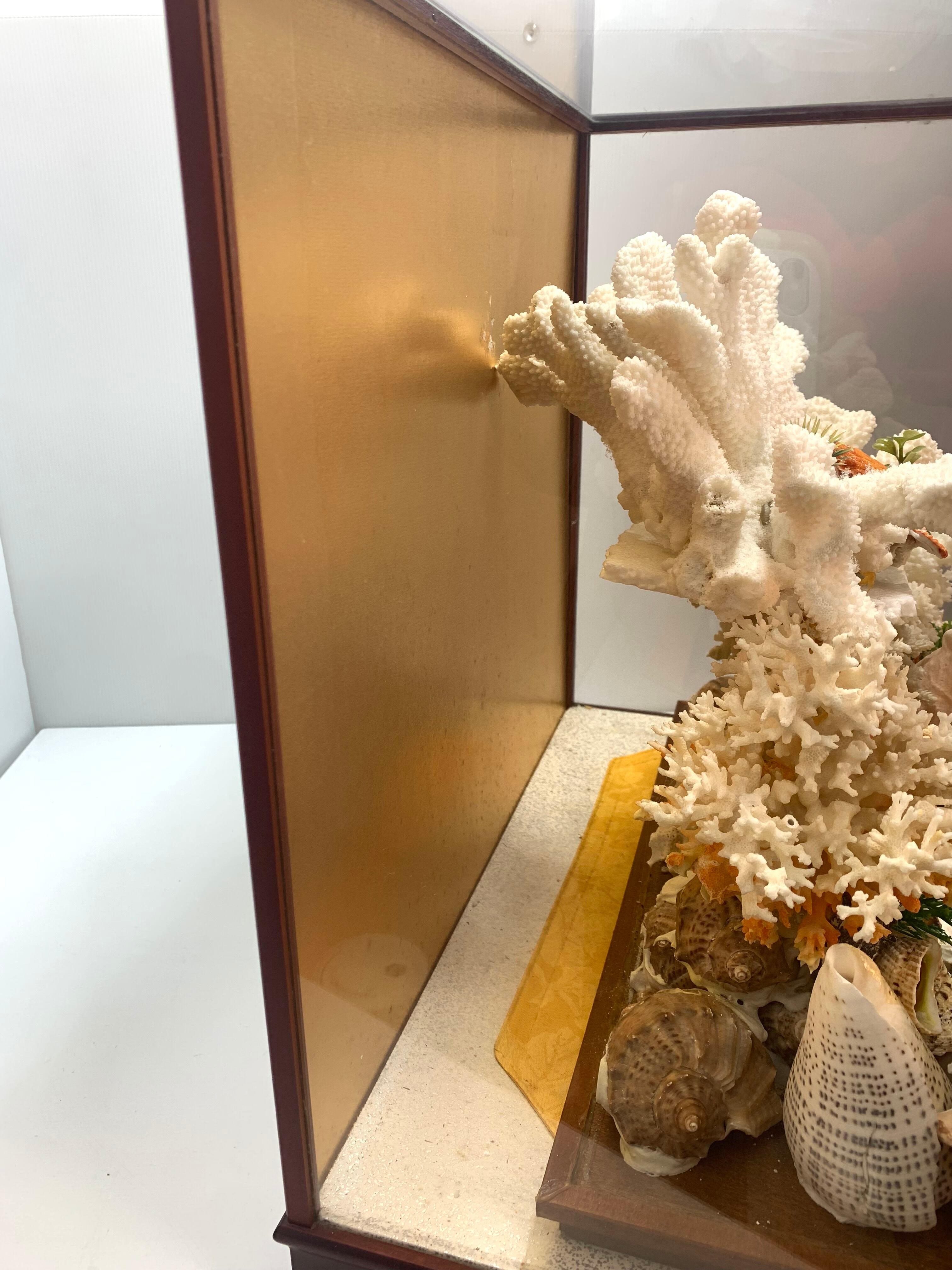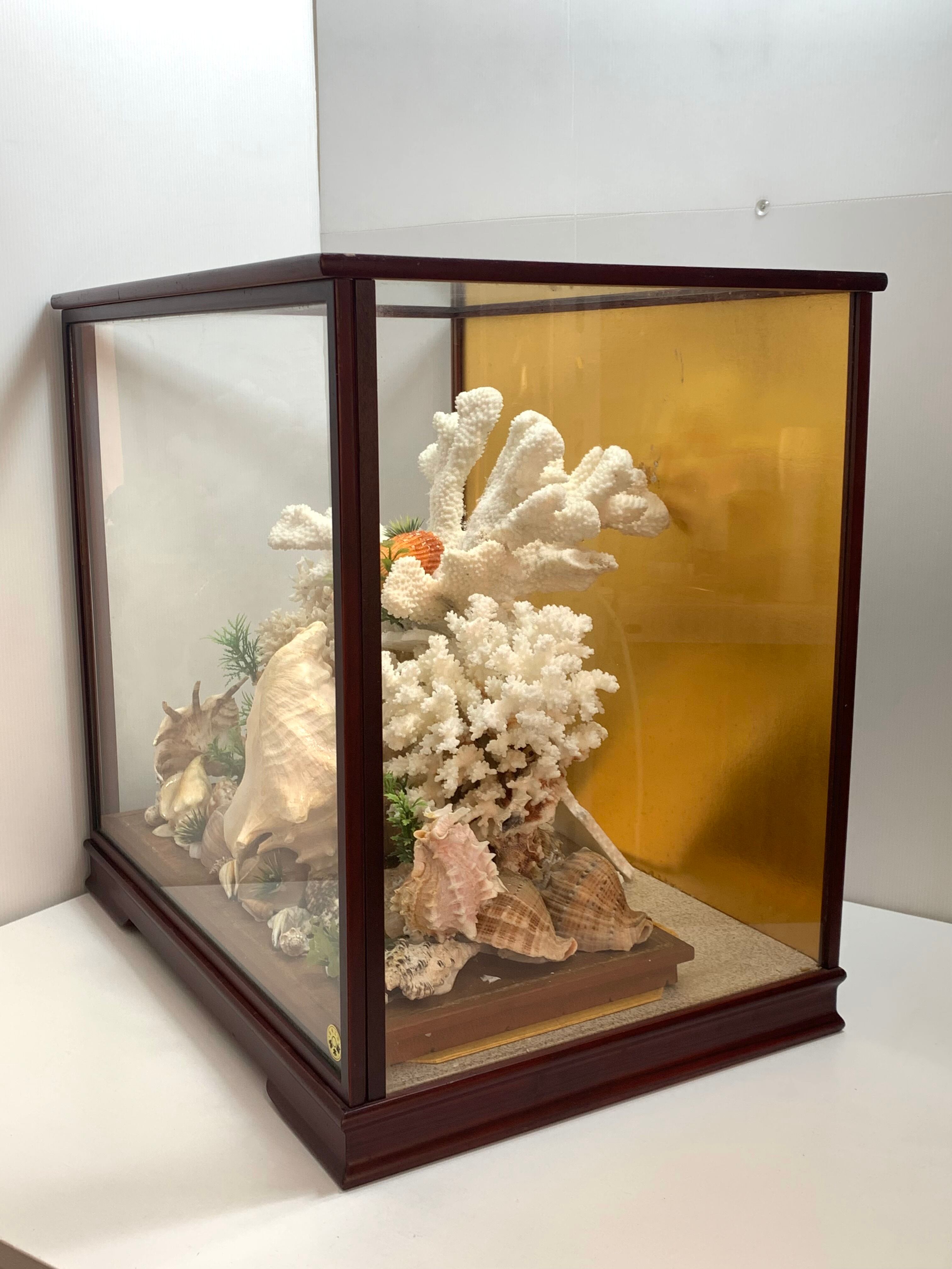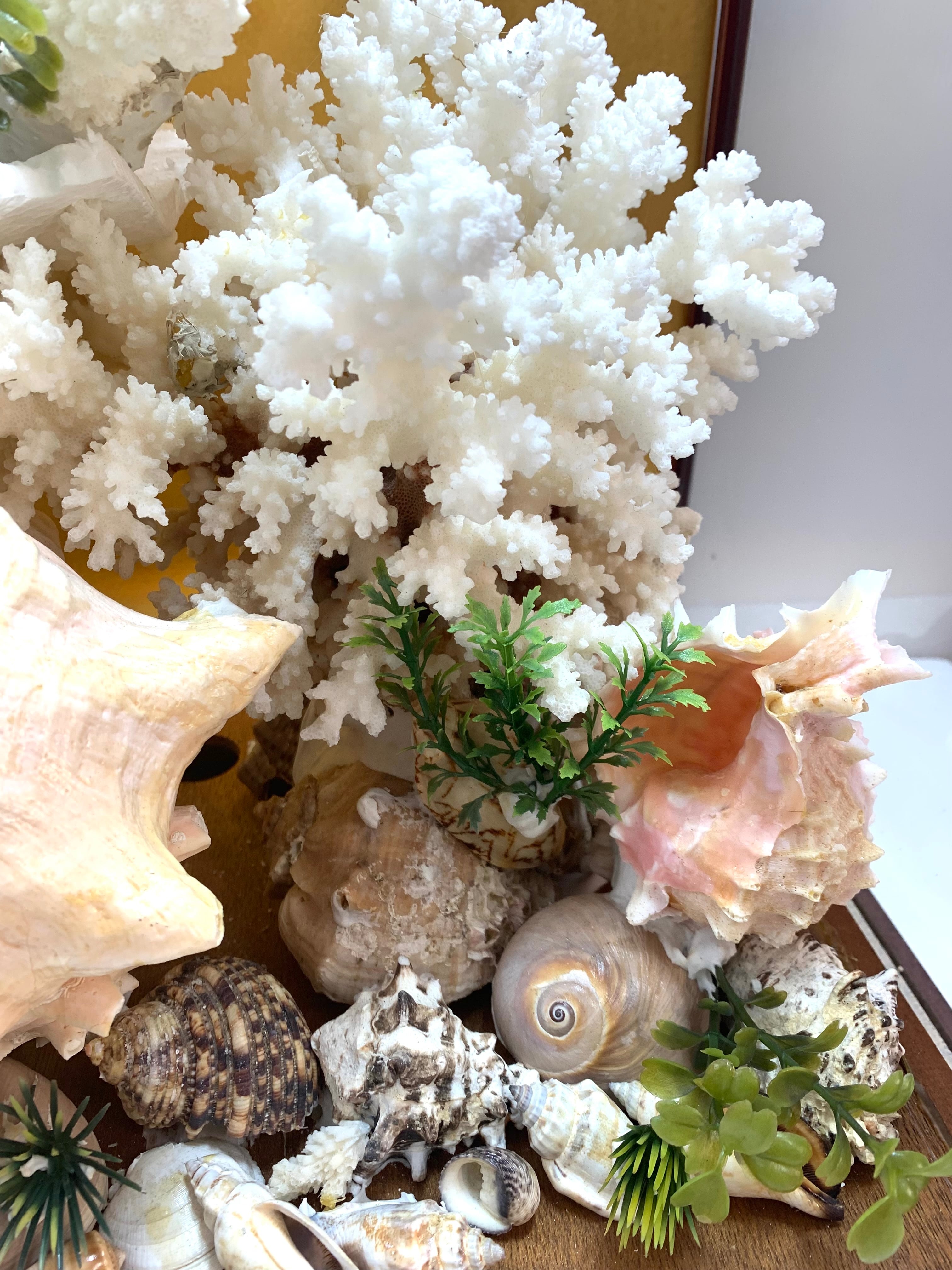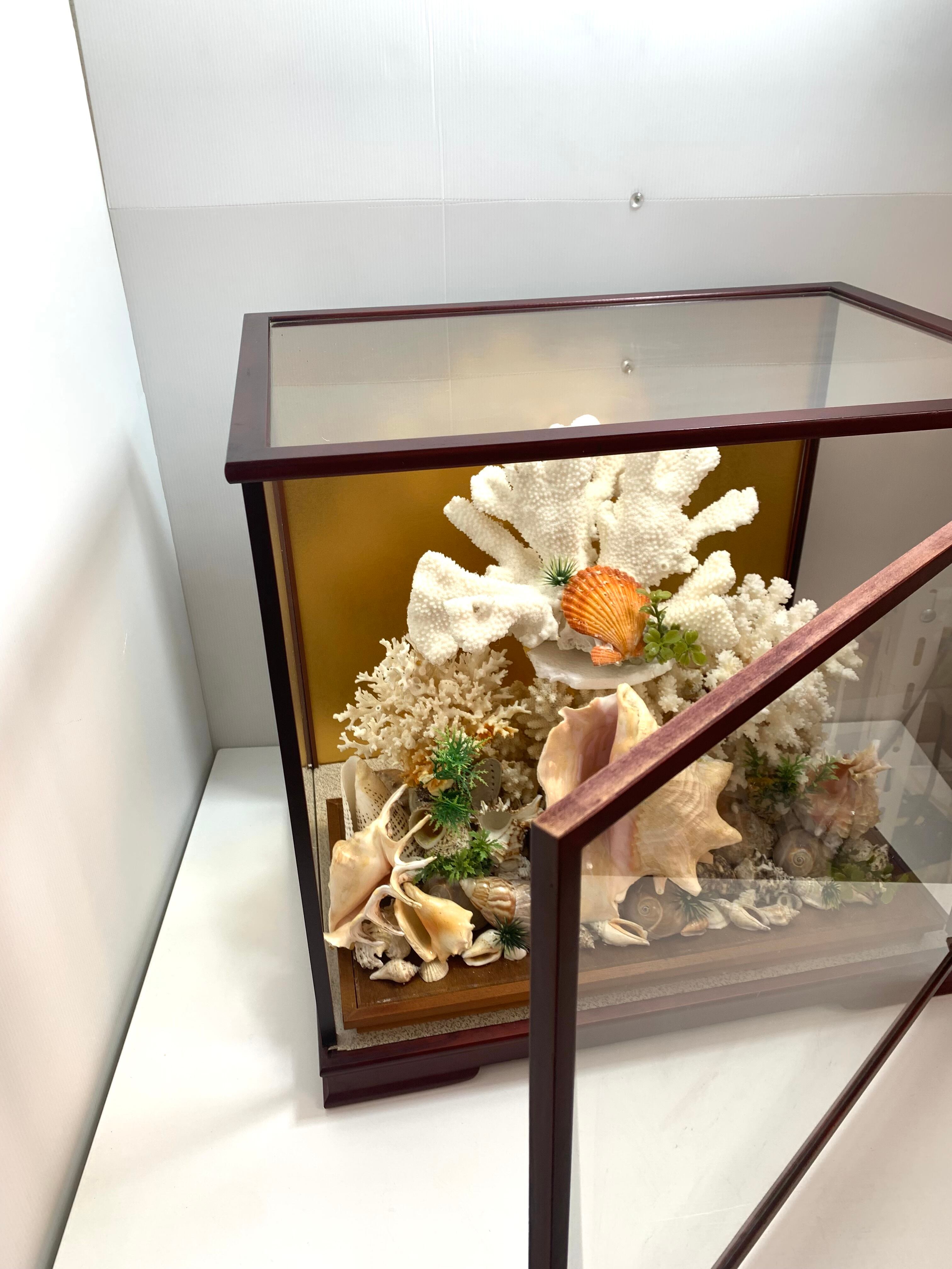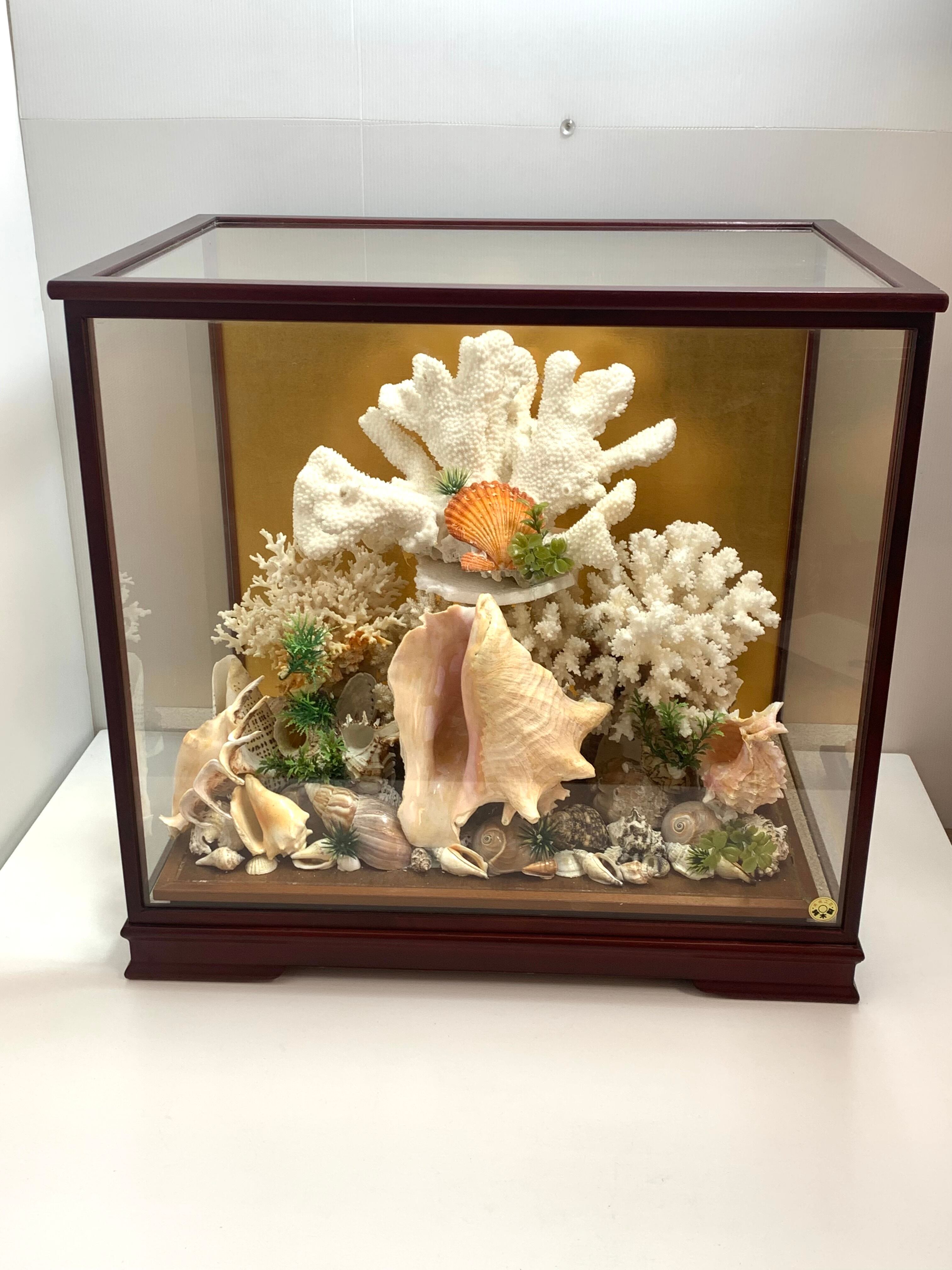 白珊瑚ガラスケースオブジェ シェル 置物 サンゴ インテリア ディスプレイ美術工芸品