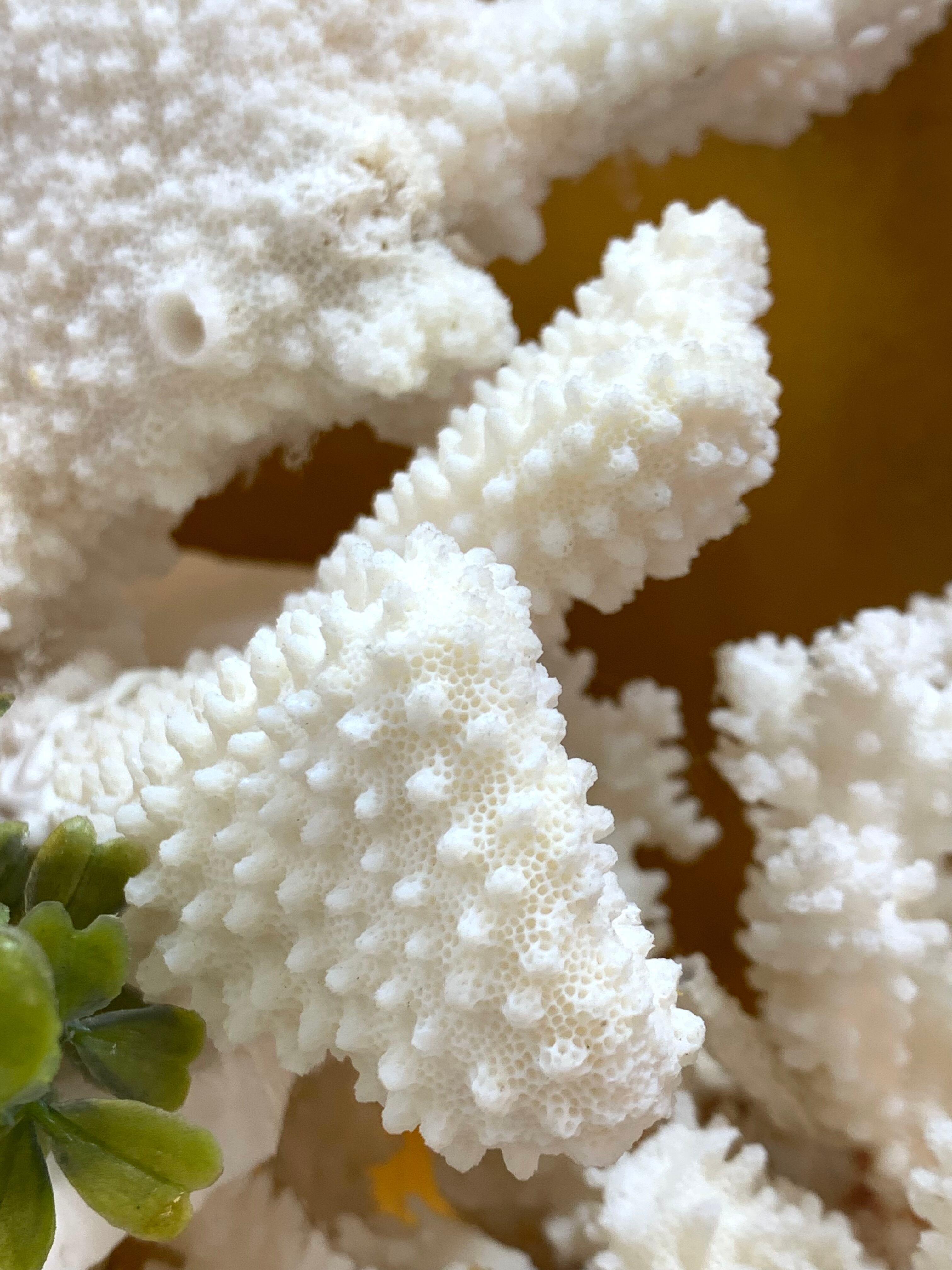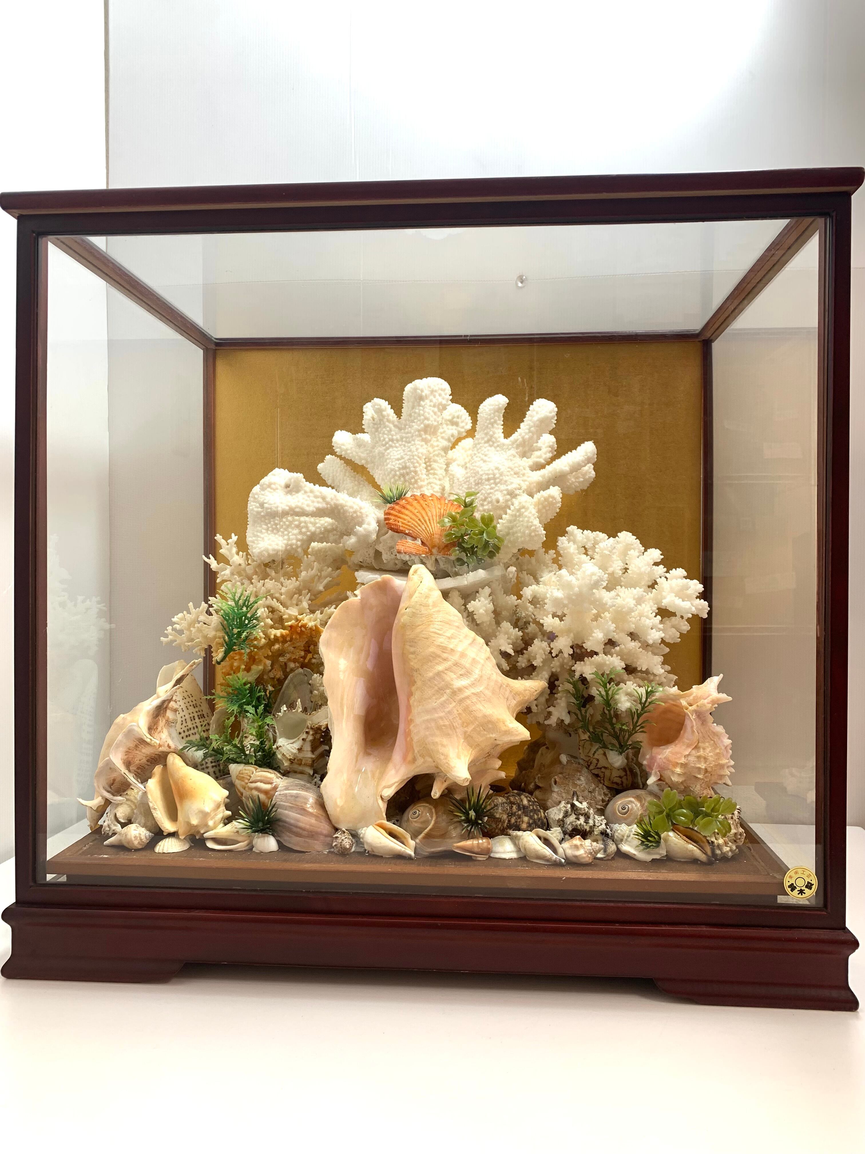 手作りの美しい白珊瑚ガラスケース。繊細なサンゴの模様が特徴的。 サンゴの模様が美しい白珊瑚ガラスケースは、まるで貴重な美術工芸品のような存在感を放っています。手作りならではの繊細さと丁寧な仕上げ、そしてサンゴの美しい模様は一目見て心を魅了します。まるでミュージアムを訪れたような気分を味わえ、サンゴの神秘的な輝きを感じる事ができます。