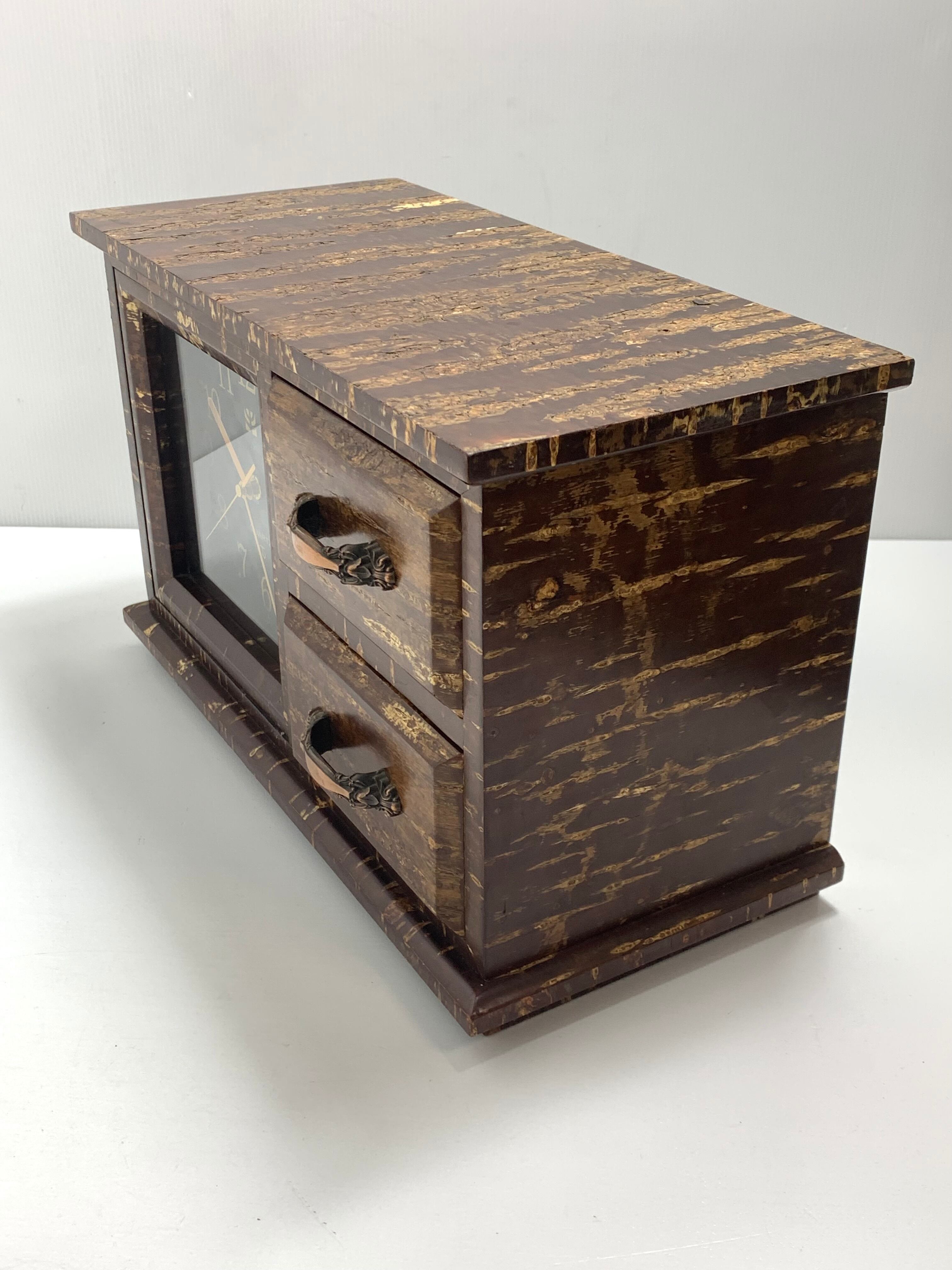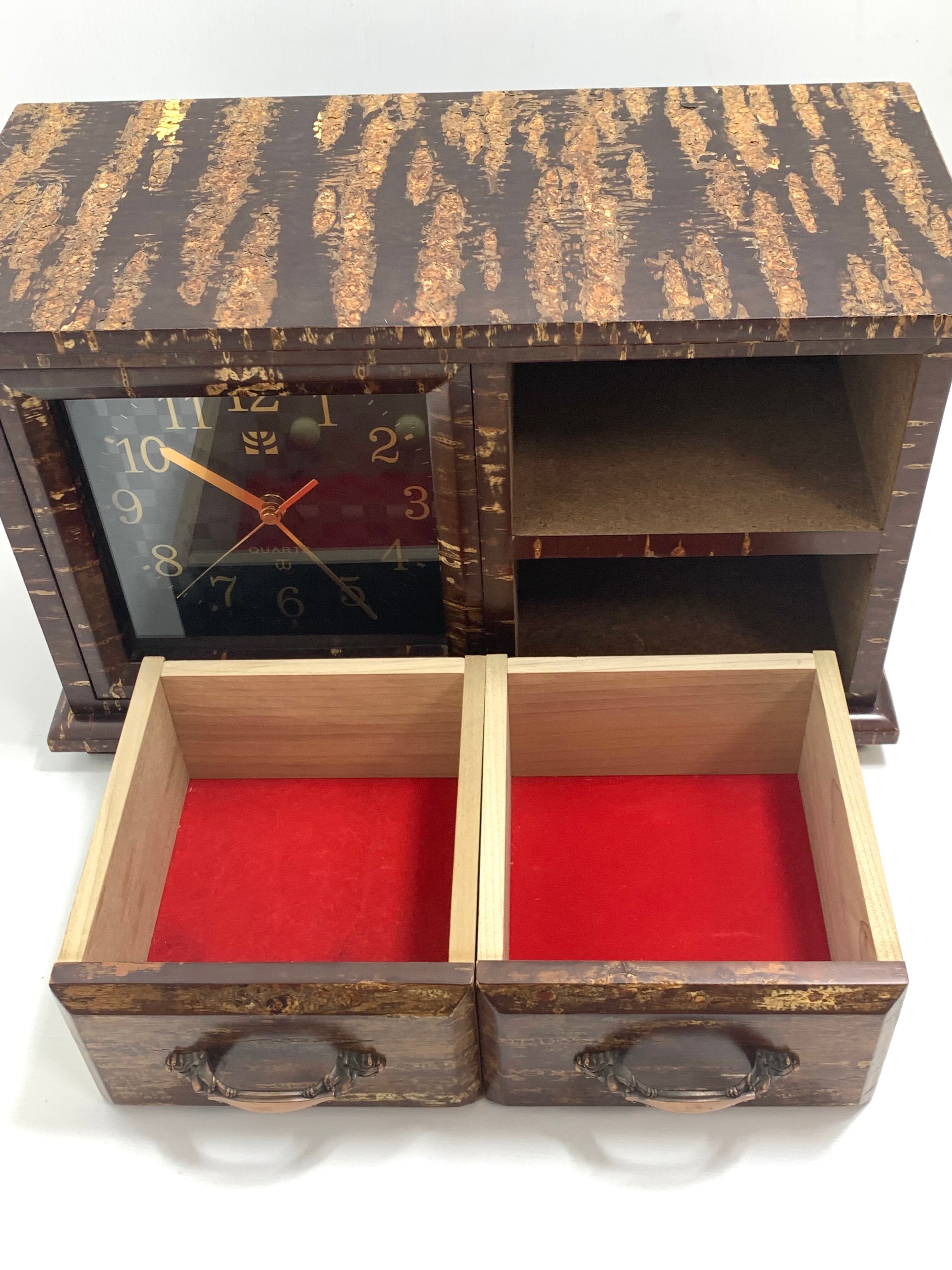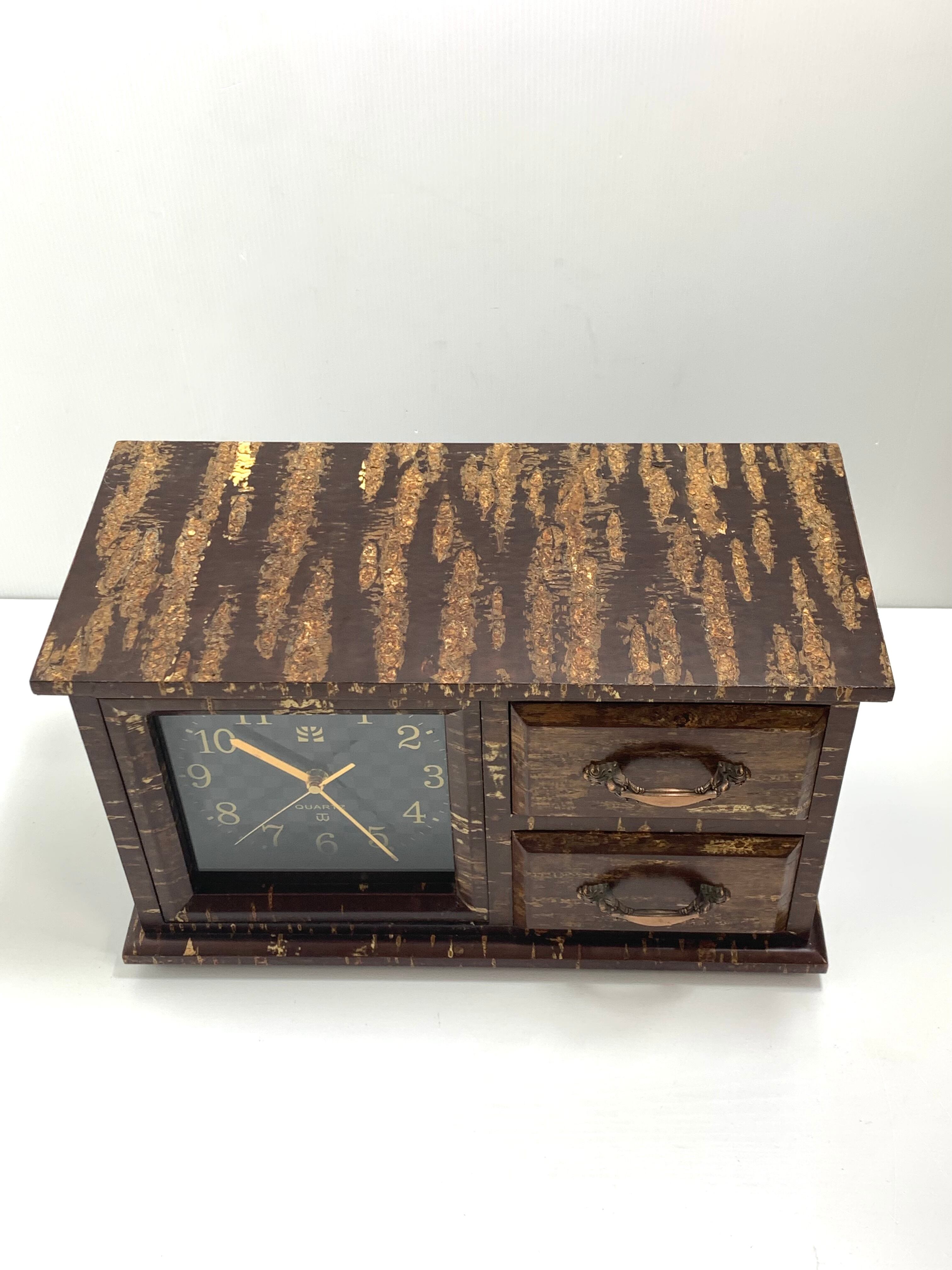 桜皮細工 樺材 置き時計 小引き出し 収納 工芸品民芸 秋田角館 (時計動きません)