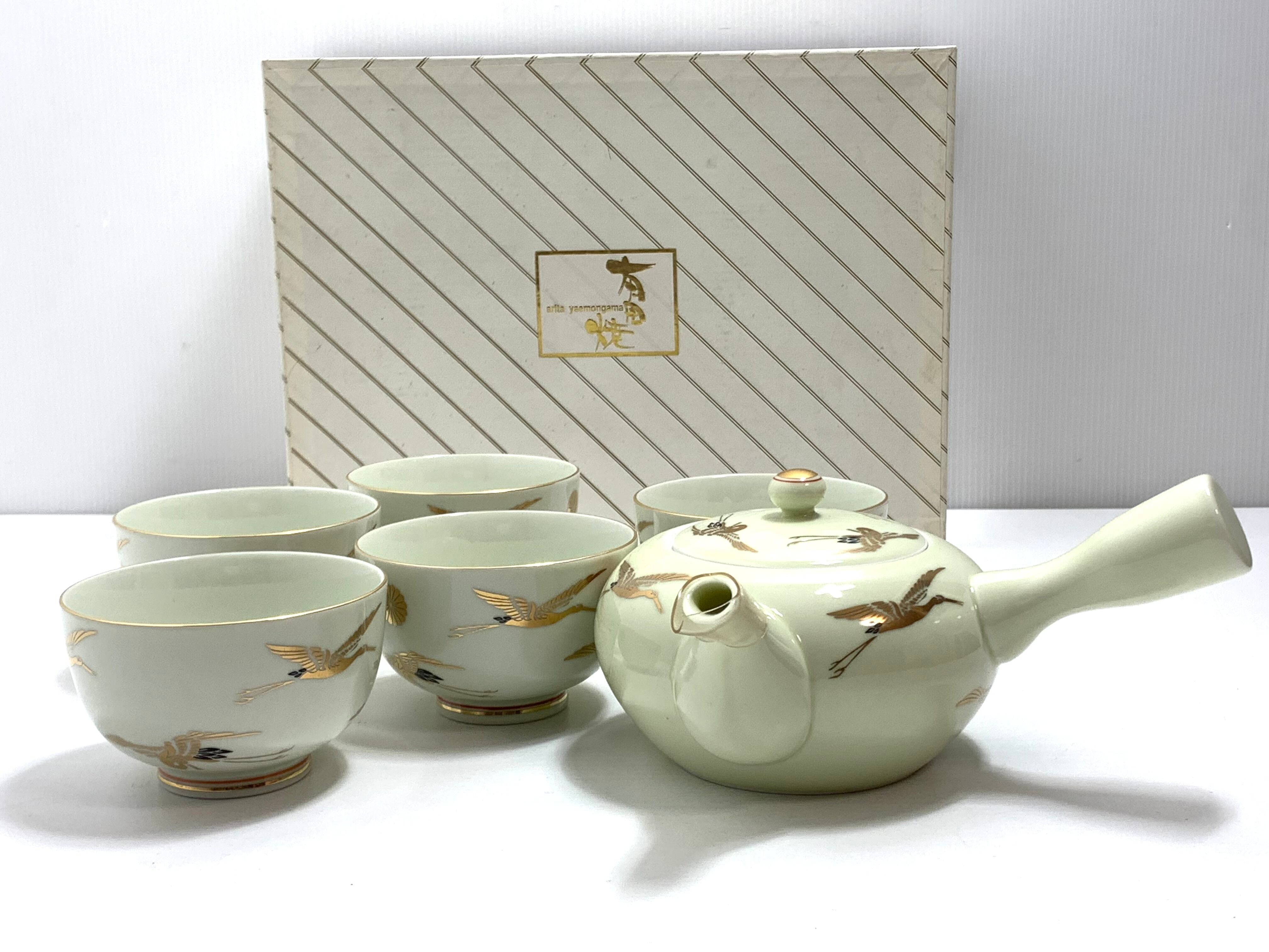 【未使用】有田焼 彌右衛門(やえもんがま) 急須セット 金鶴 茶器 五客