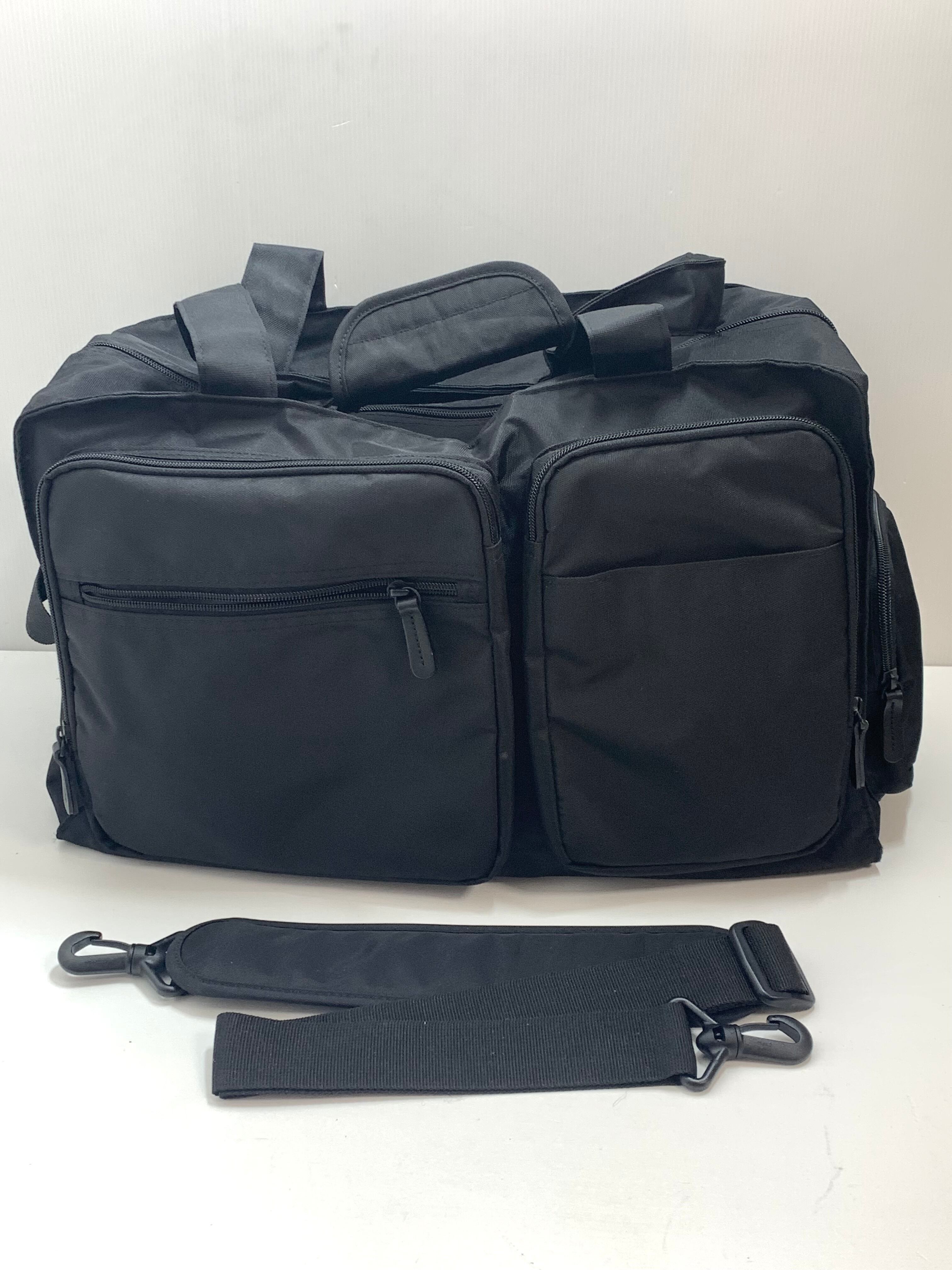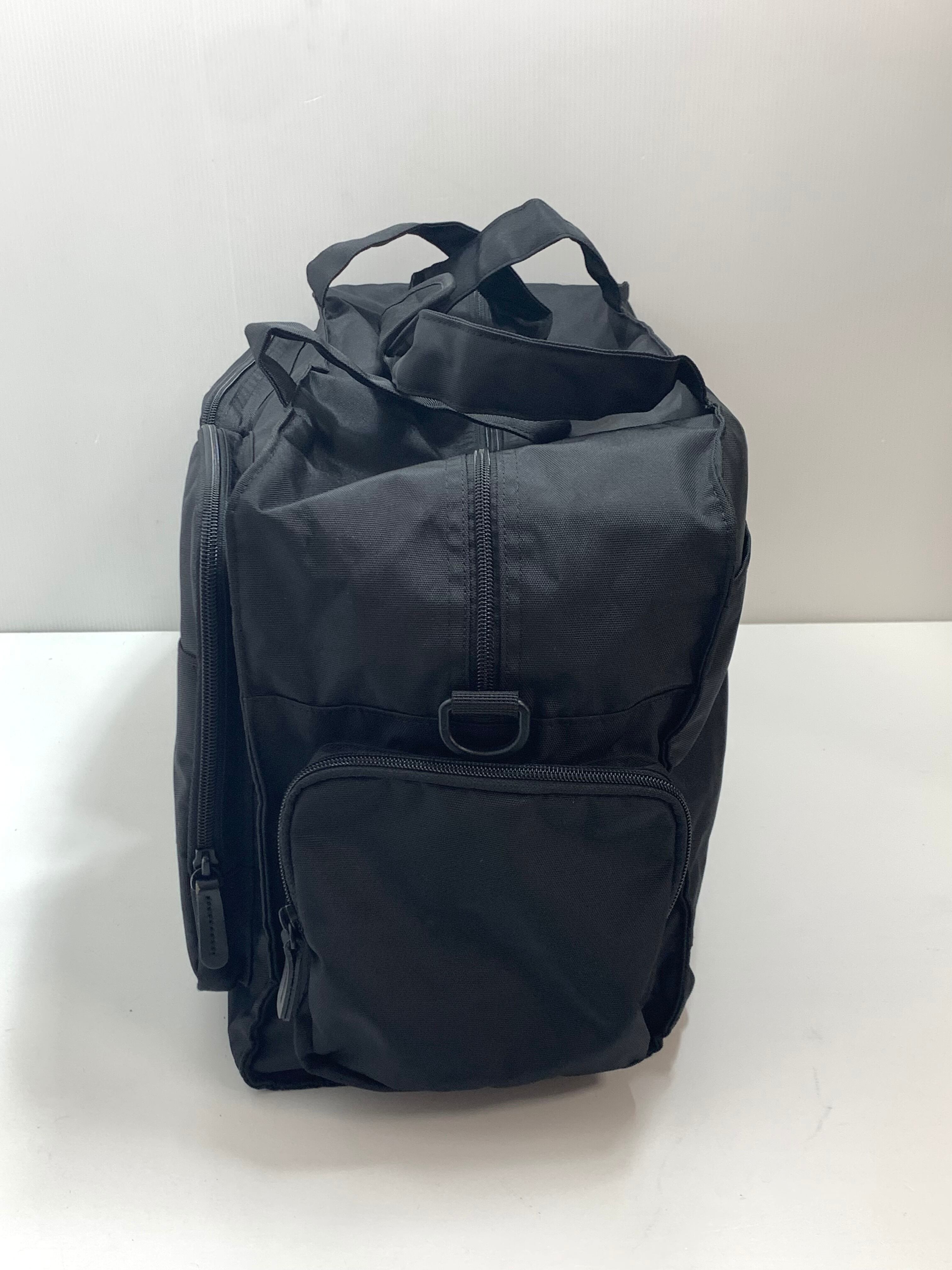 再生ポリエステル混立体ポケットボストン・大容量 ブラック ショルダーベルト付 トラベル 旅行 出張キャリーバックボストンバッグ