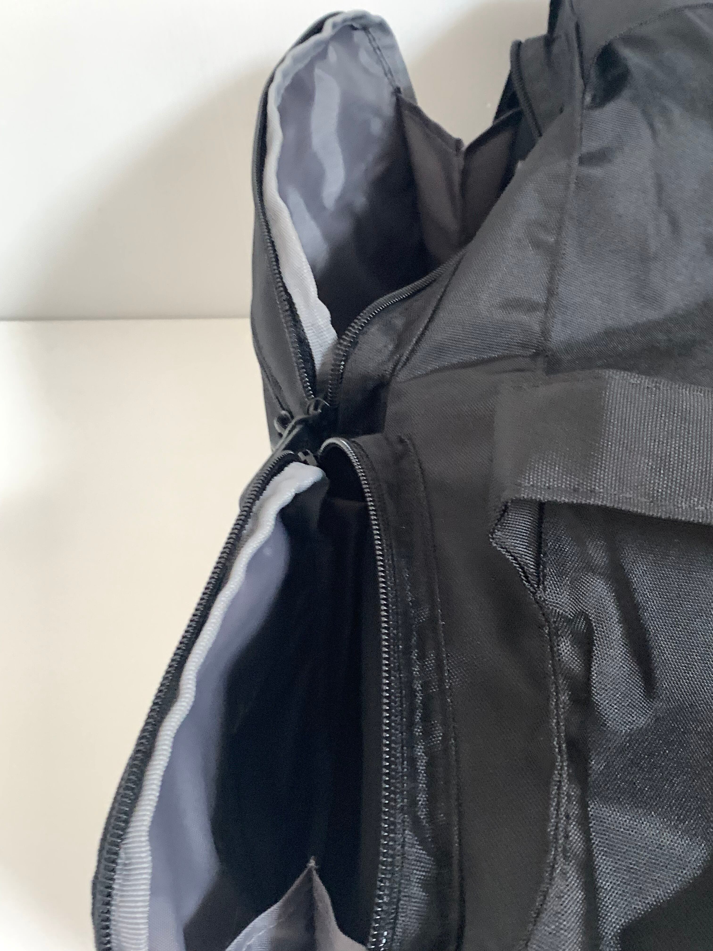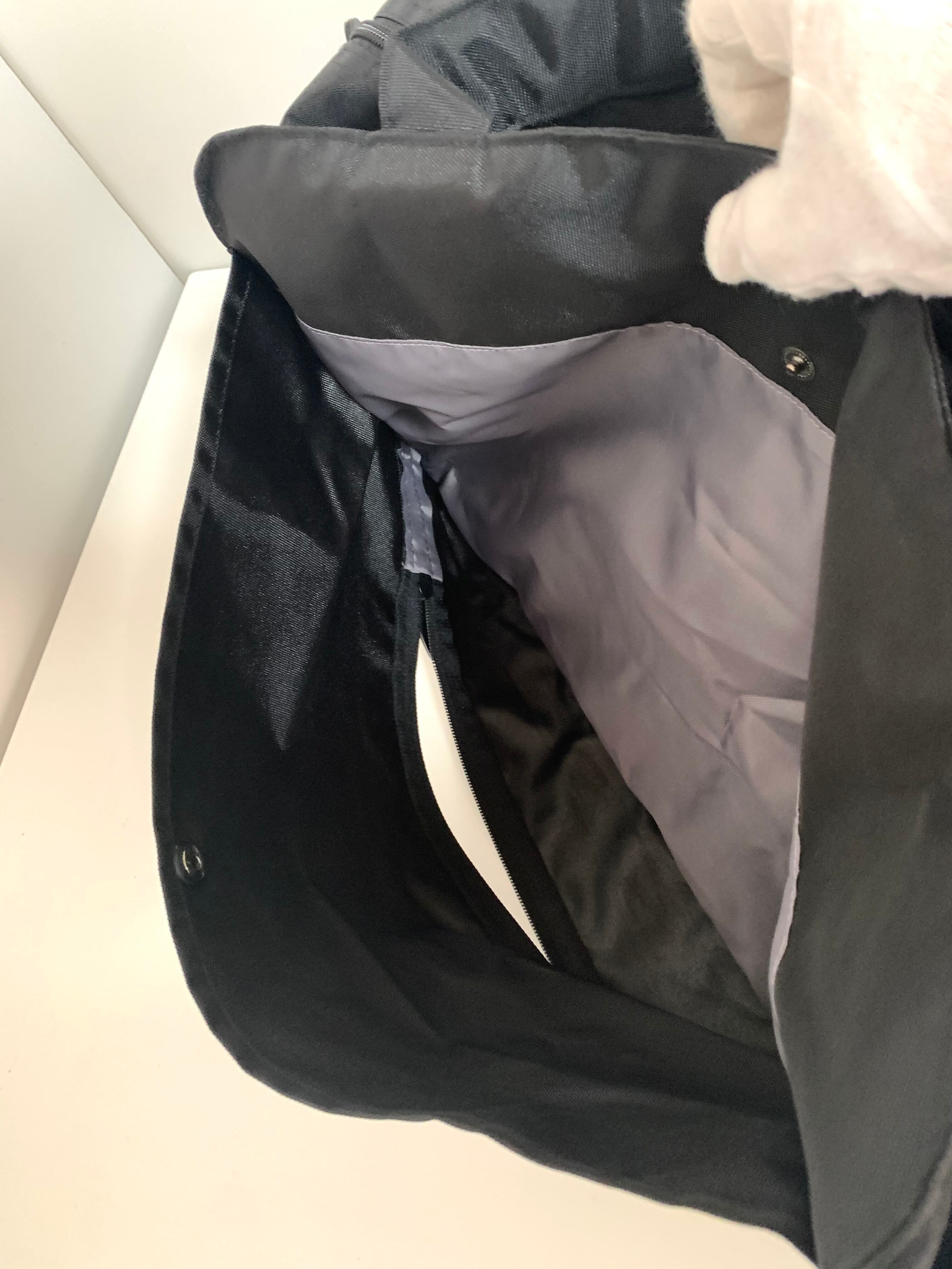 後ろのファスナーを開いてバーに差し込み、キャリーバックに付ける事ができます。