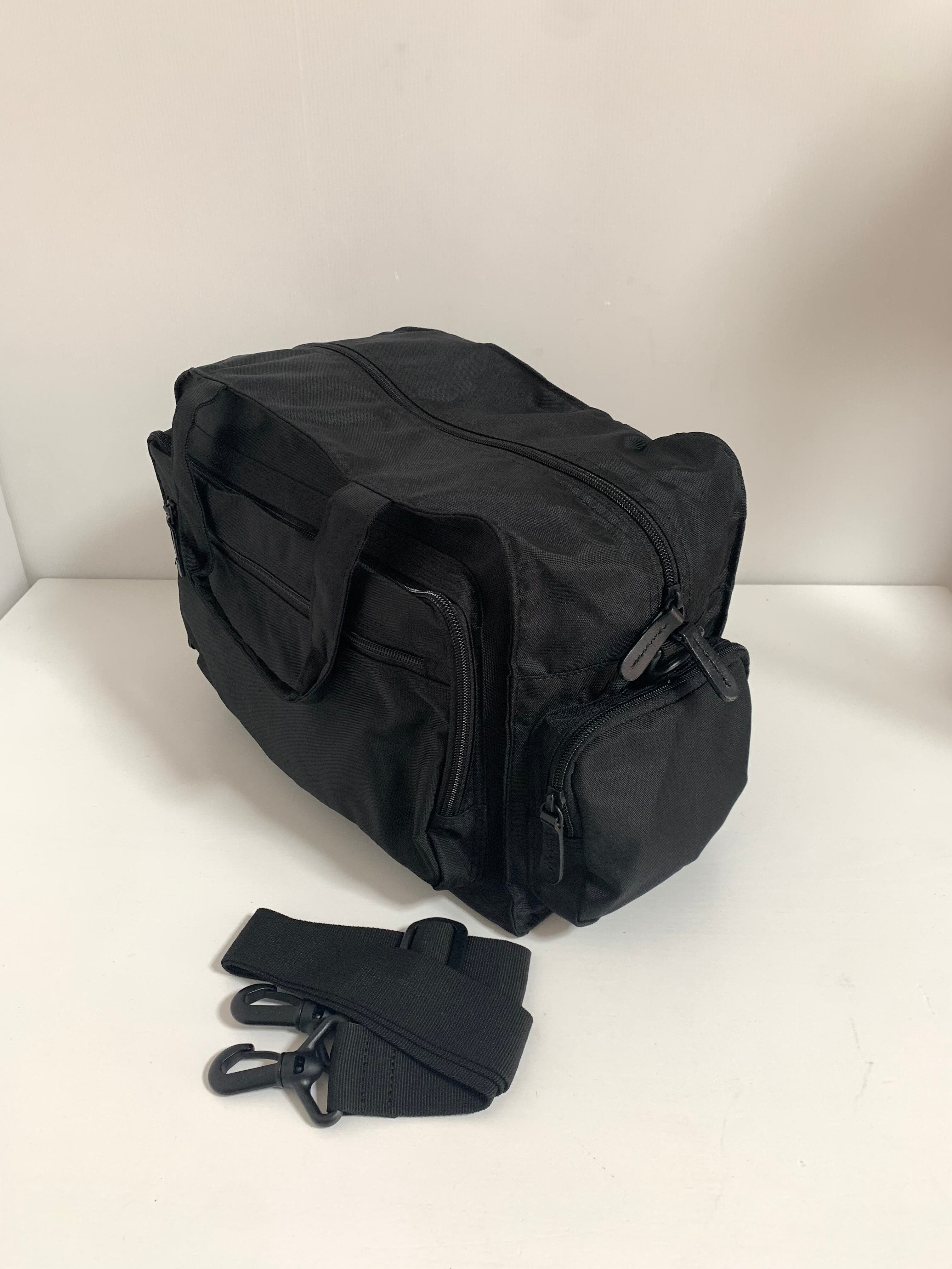 再生ポリエステル混立体ポケットボストン・中 ブラック ショルダーベルト付 トラベル 旅行 出張キャリーバックボストンバッグ