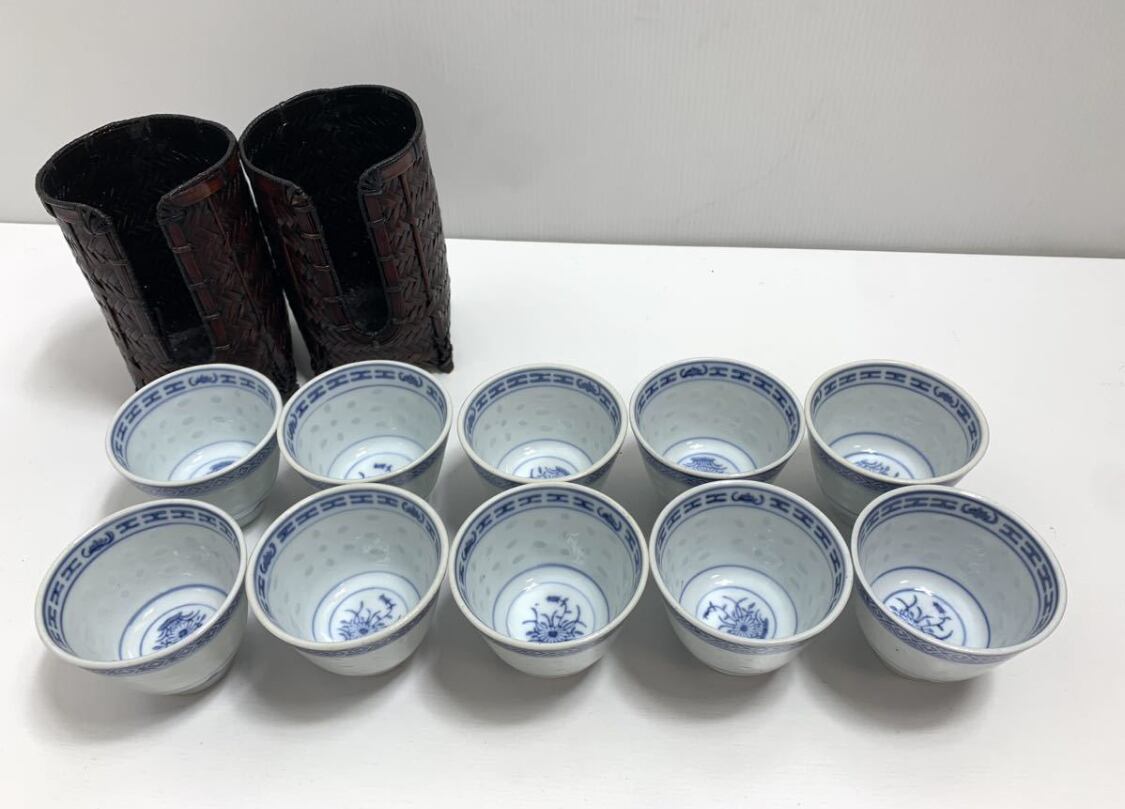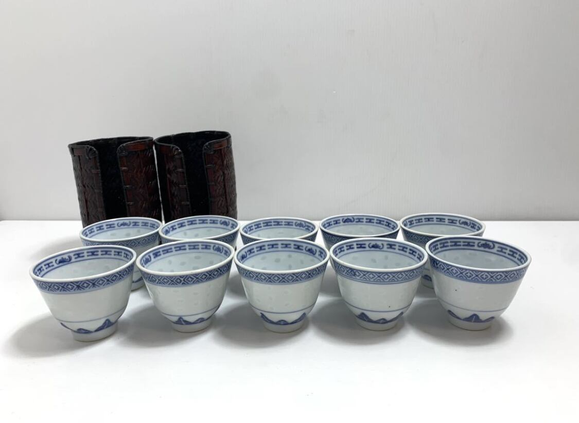 中国美術 煎茶道具 中國景徳鎮製 蛍手碗10客 中国茶器