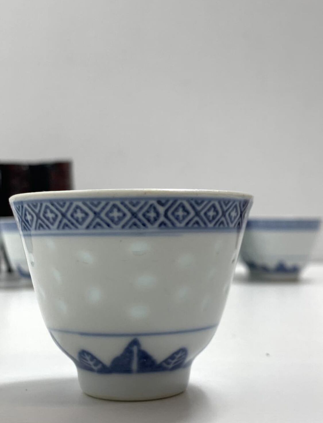 景徳鎮の職人が手掛けた蛍手碗10客。中国美術の粋を集めた優れもの。器の美しさと音の美しさを兼ね備えた茶器です。