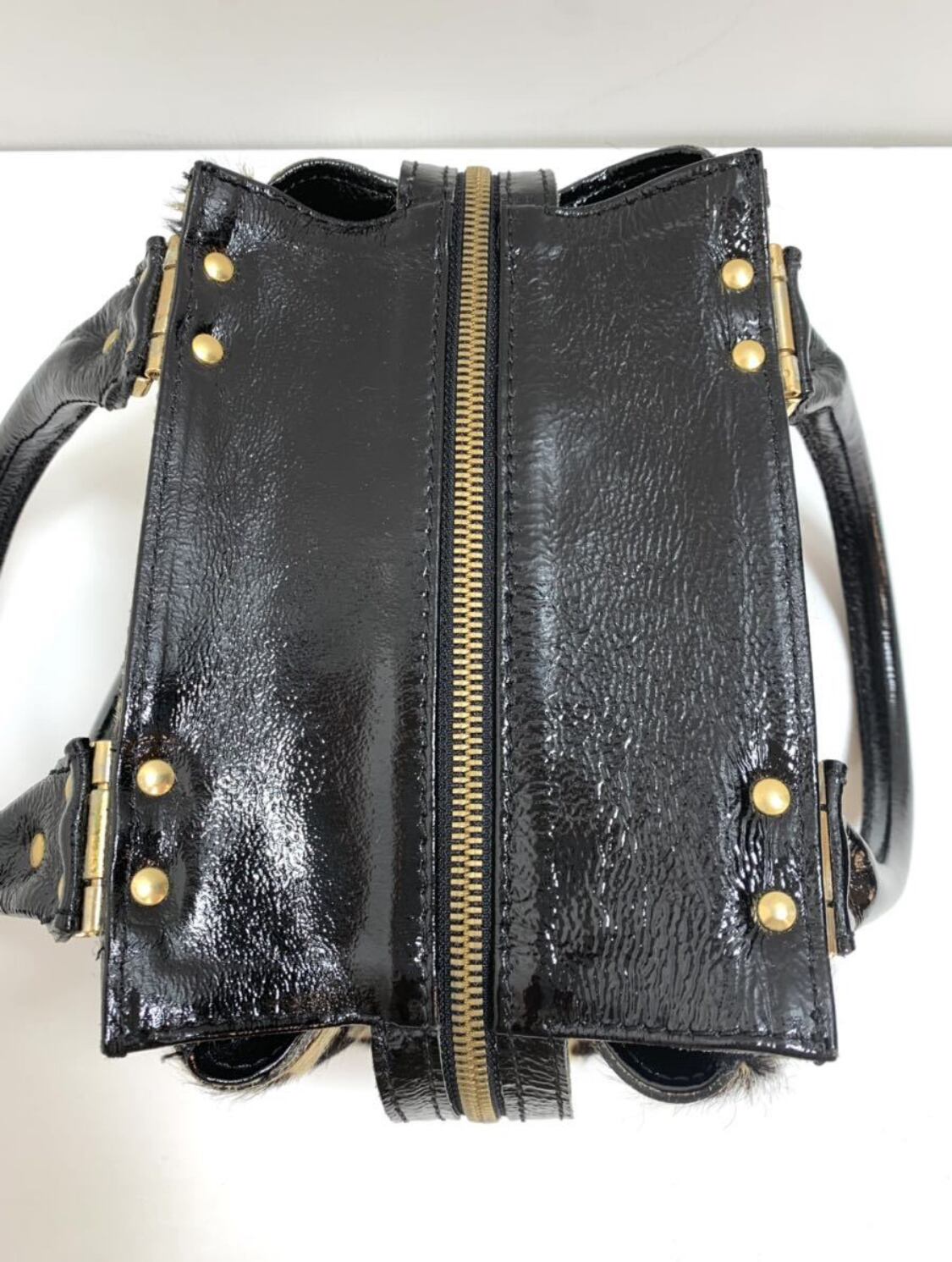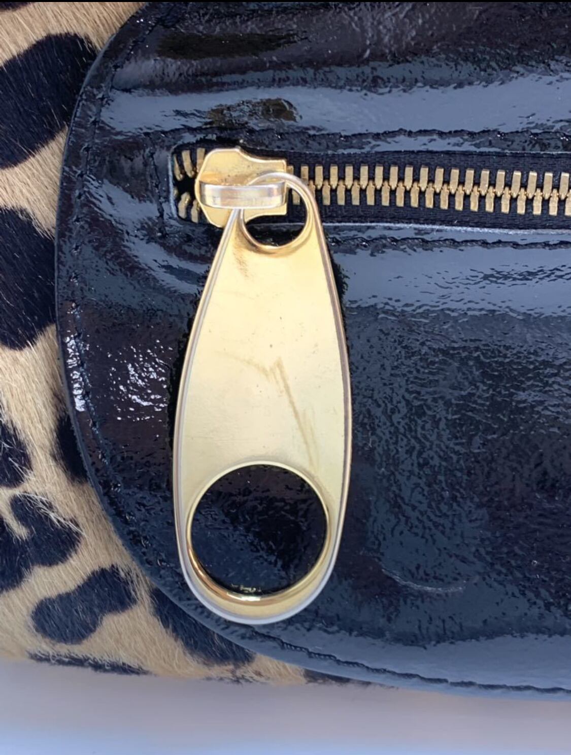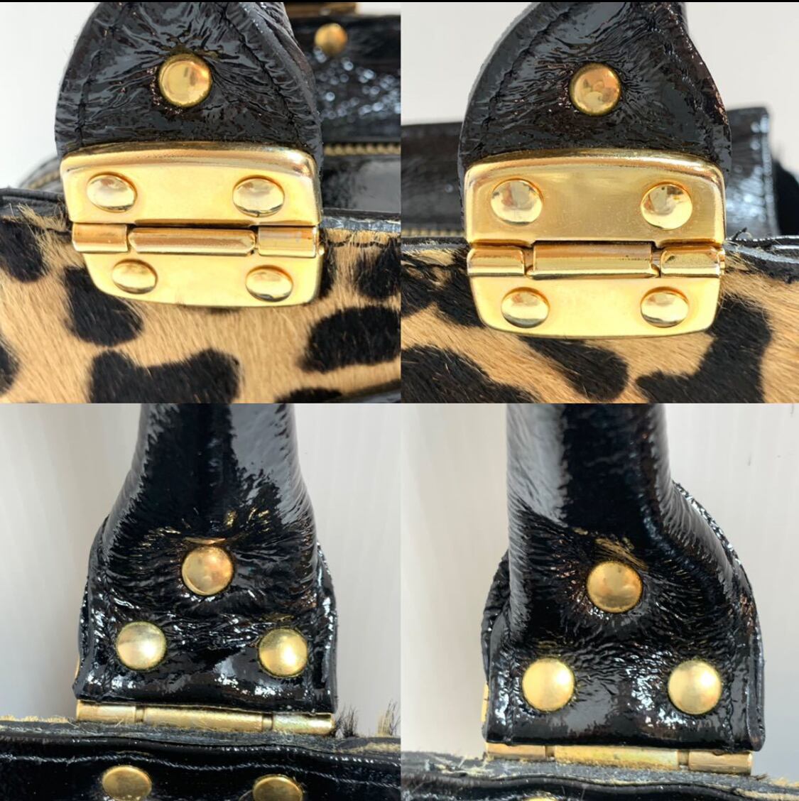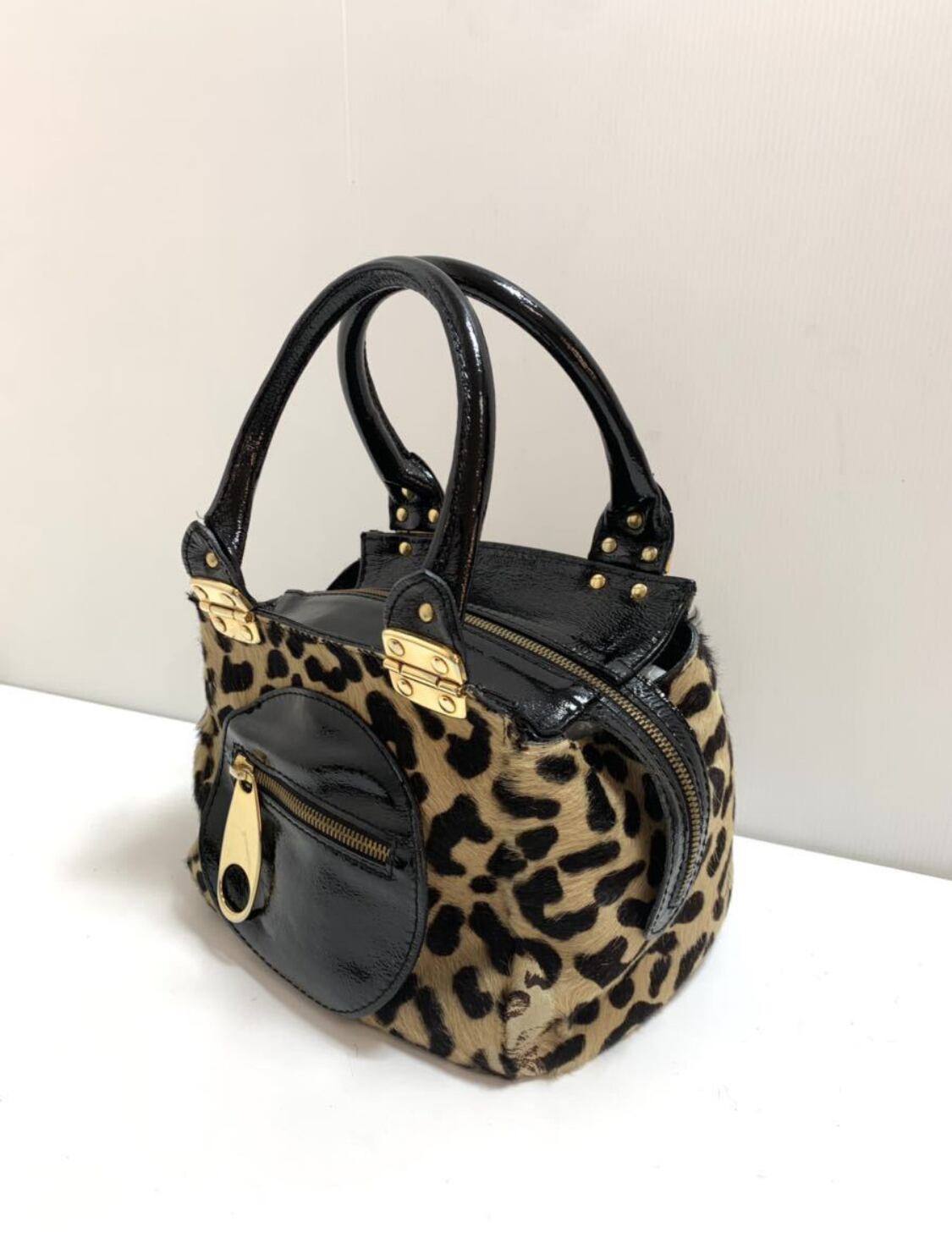 【美品】レジーナREGINA レオパードイタリア ハンドバック キューブ型 前面ファスナー大きなゴールドパーツ 小さめ 可愛い