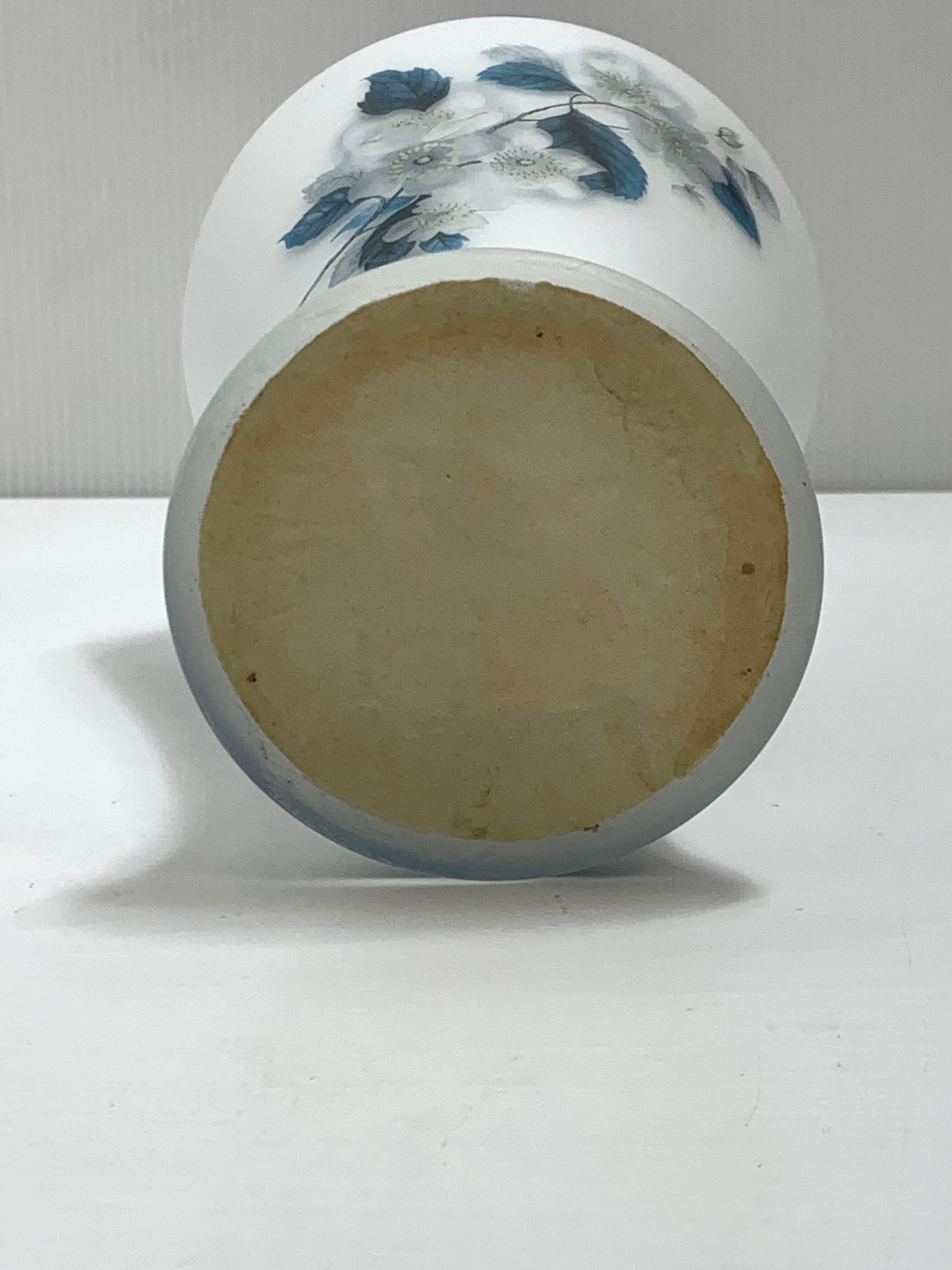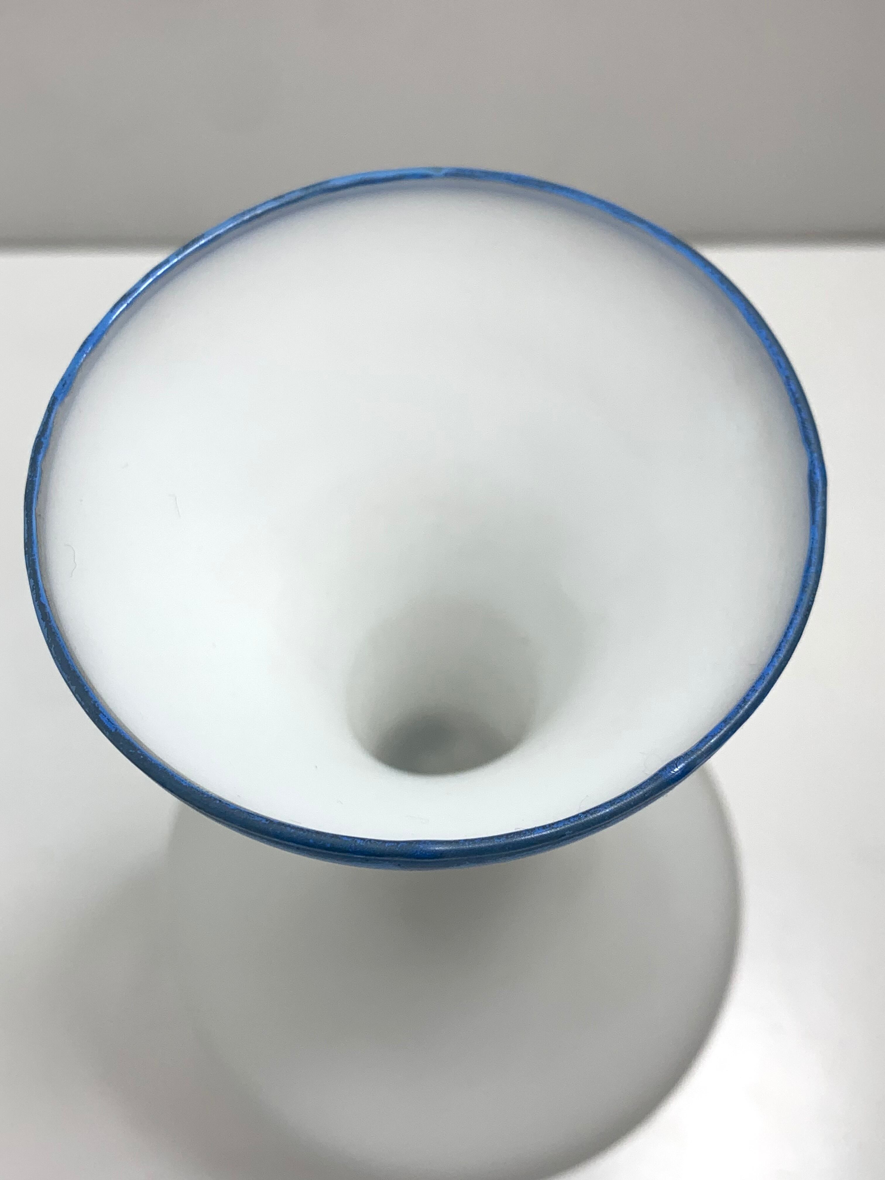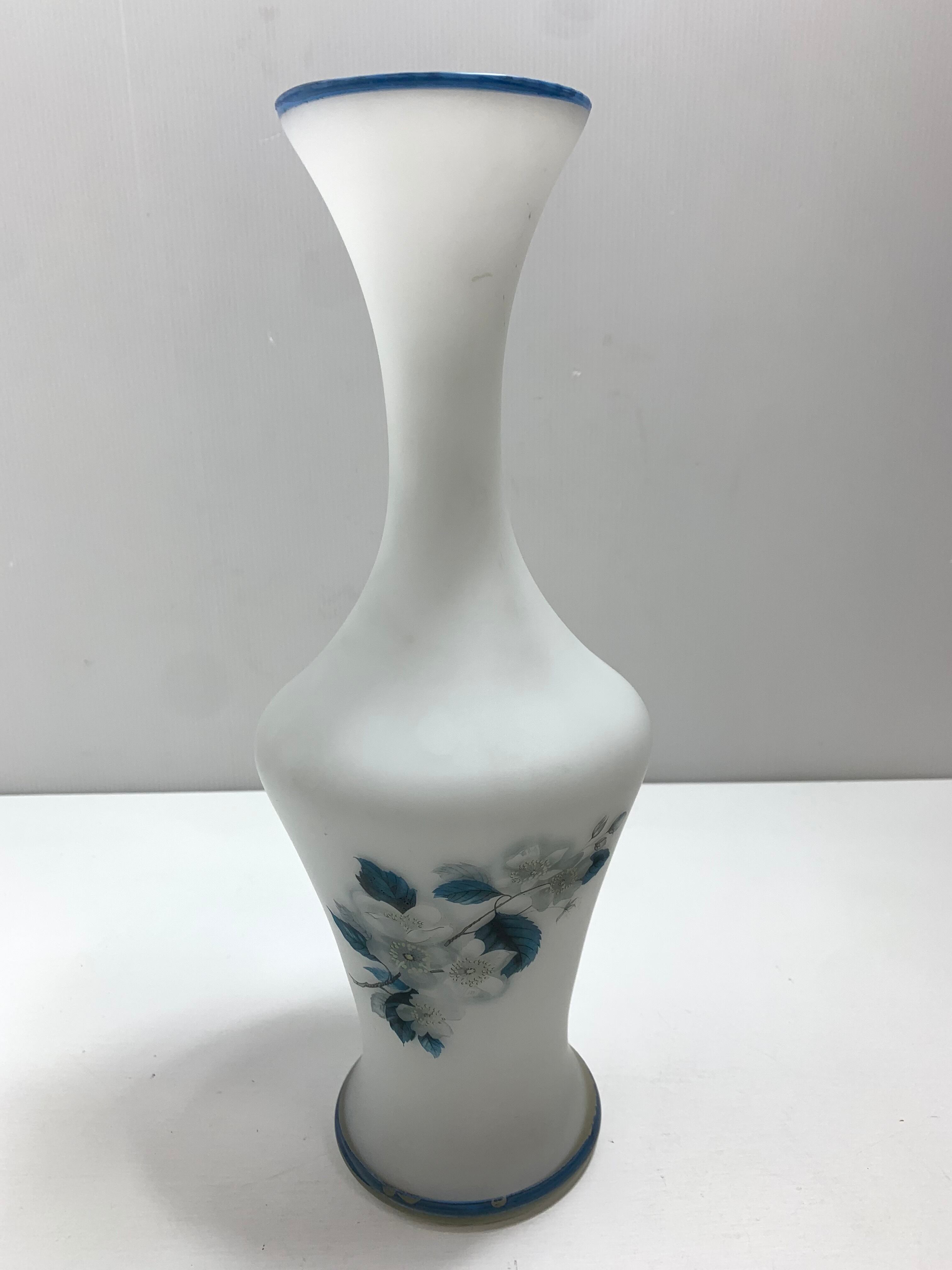 ヴィンテージイタリア製 ブルー フロスト ガラス花瓶 手描きの青い花 曇りガラスFrosted Glass Vase Hand Made in Italy - Blue tint