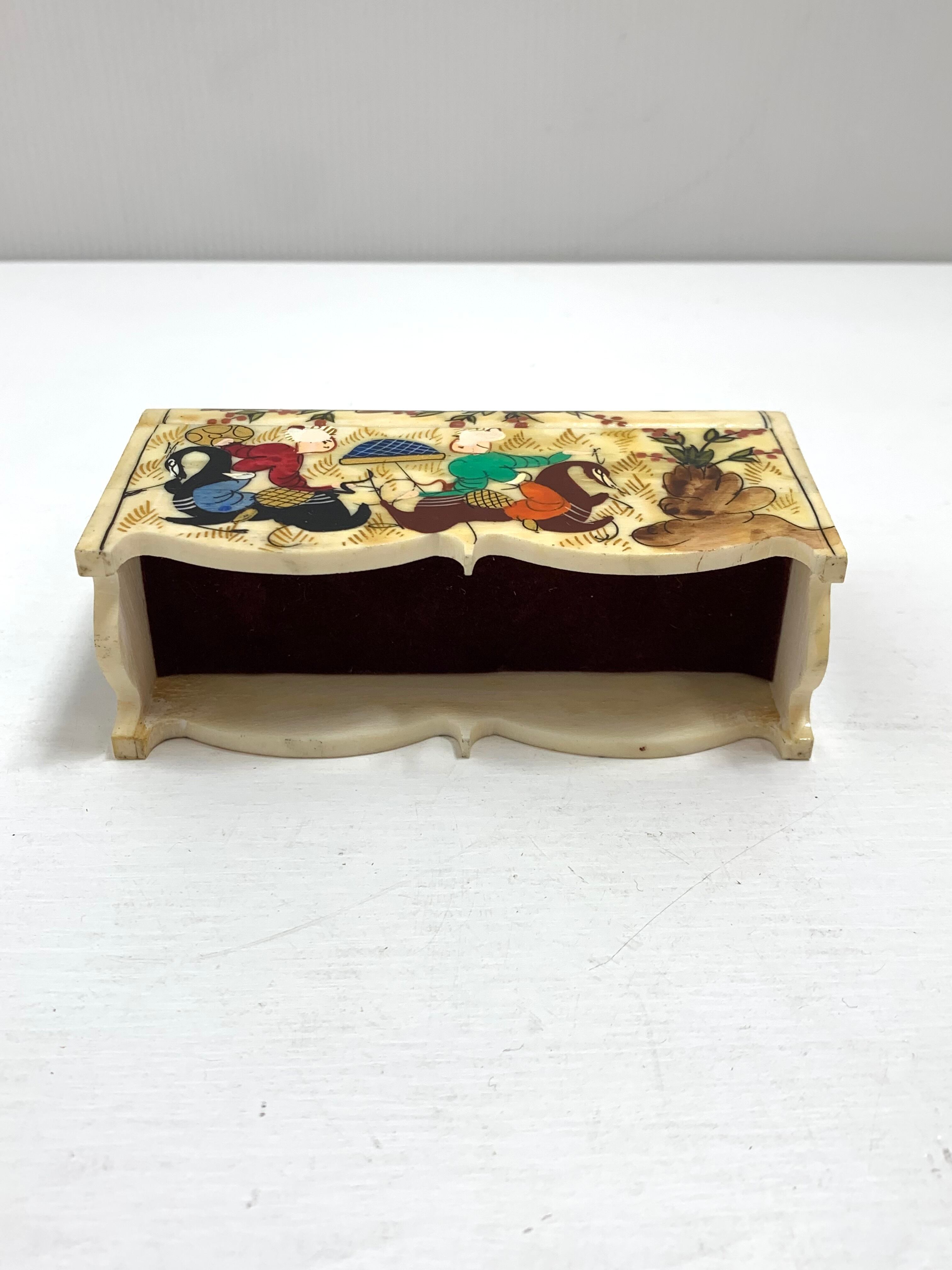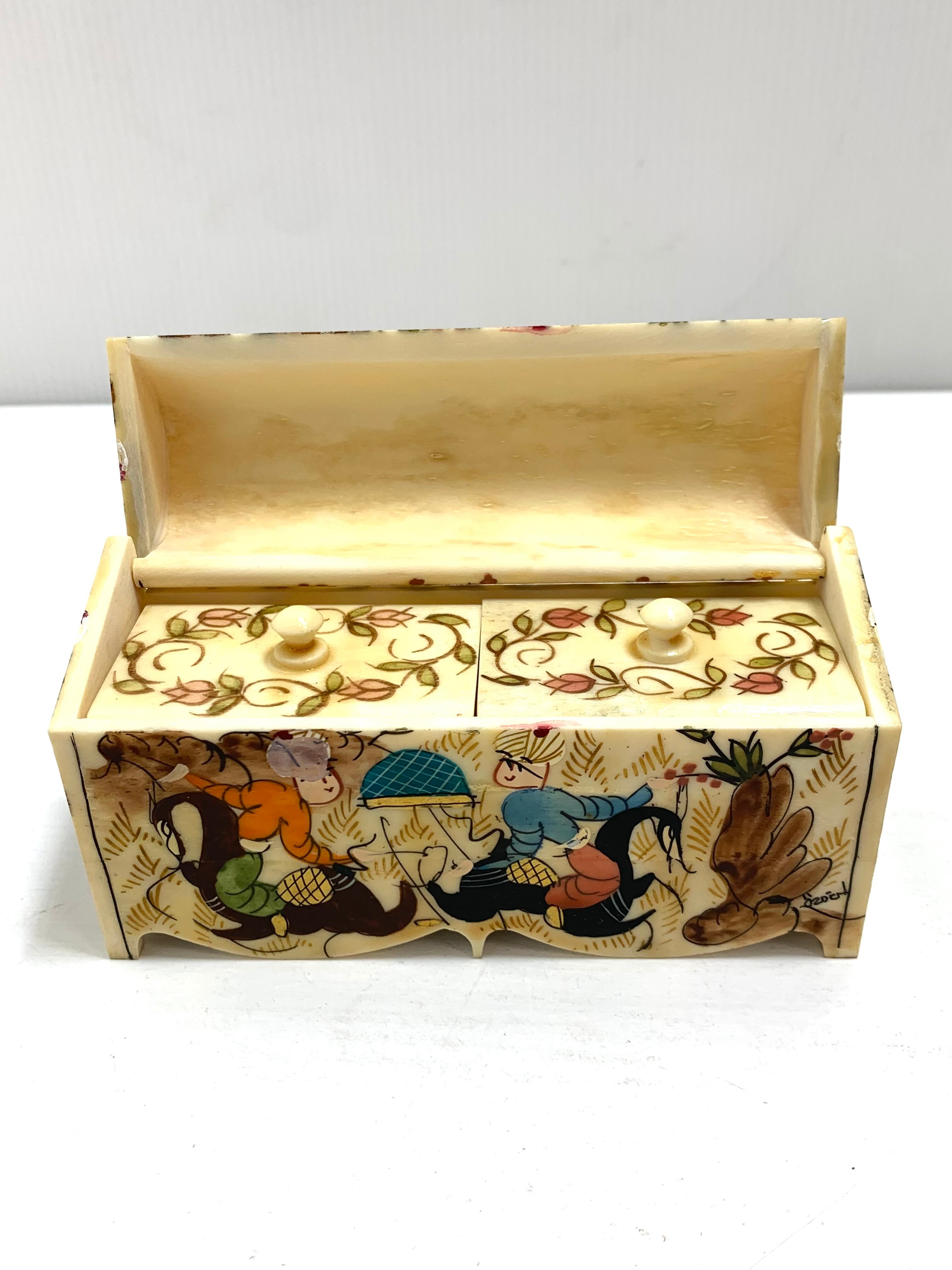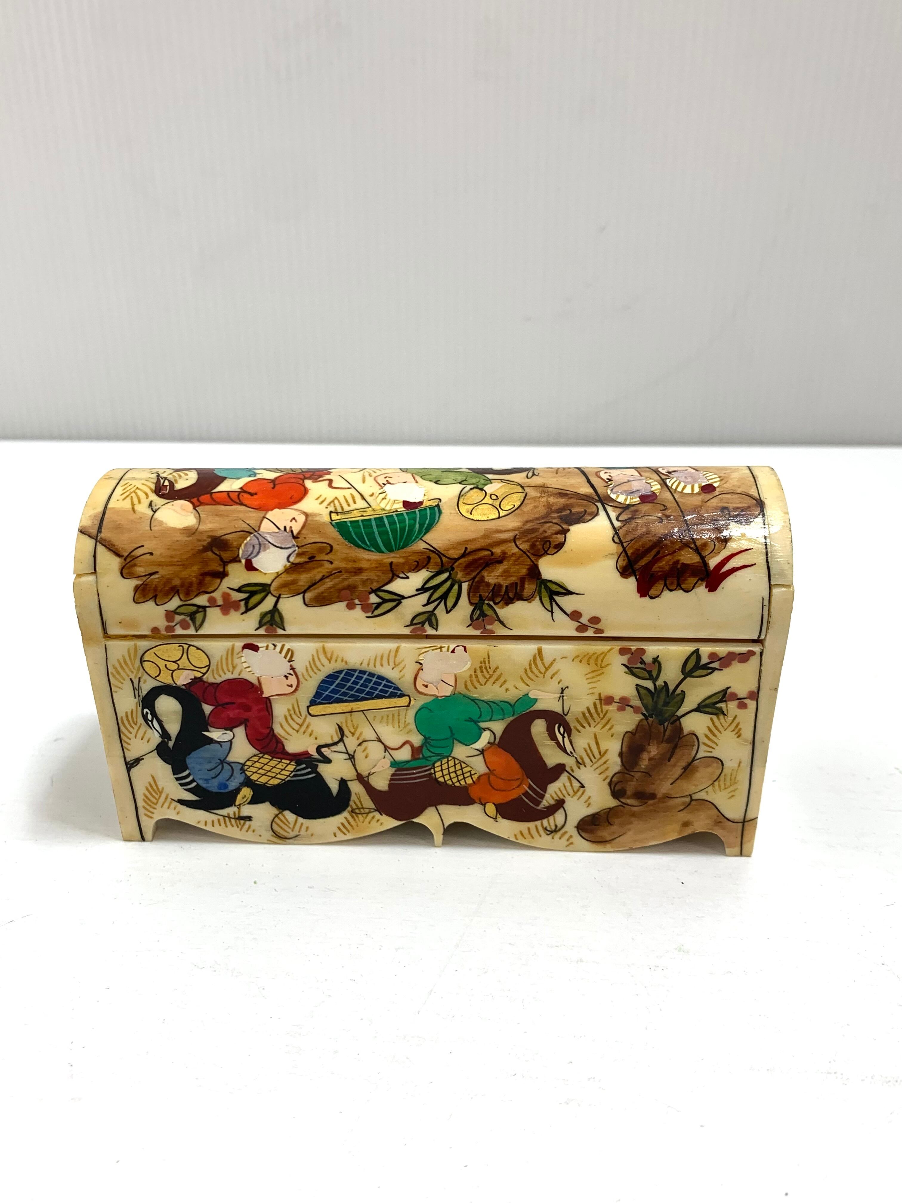 トルコ製 キャメルボーン エナメルで加工した上から職人の手でペイントが施された 華やかな小物入れ 工芸品