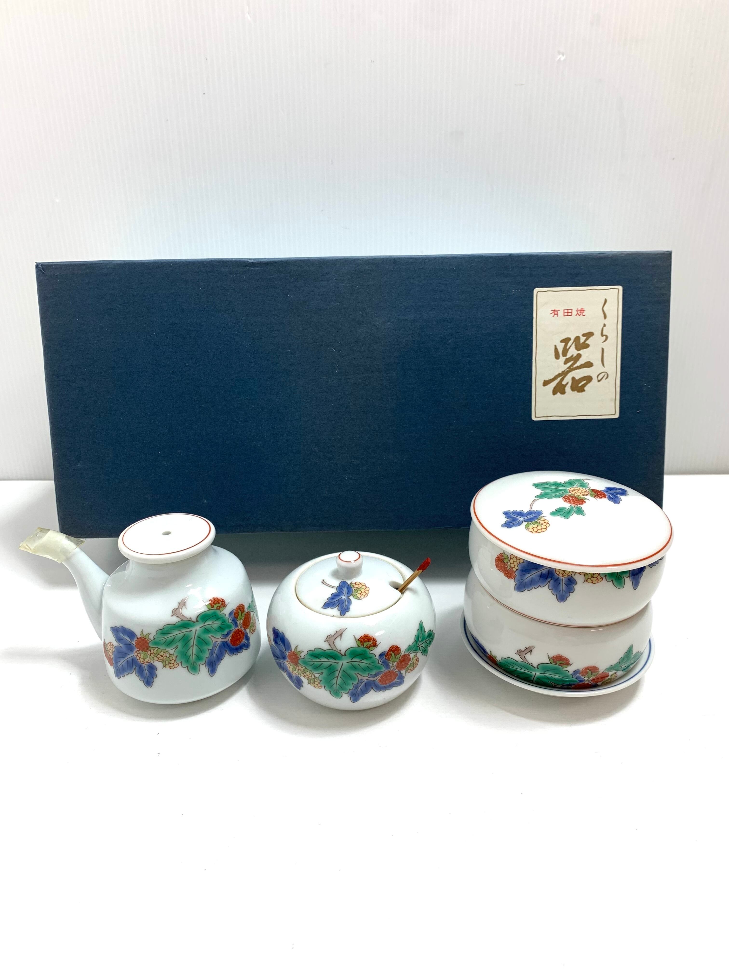 有田焼 紹弥左エ門窯 暮らしの器 調味料 薬味入れ 醤油さしセット 木苺柄