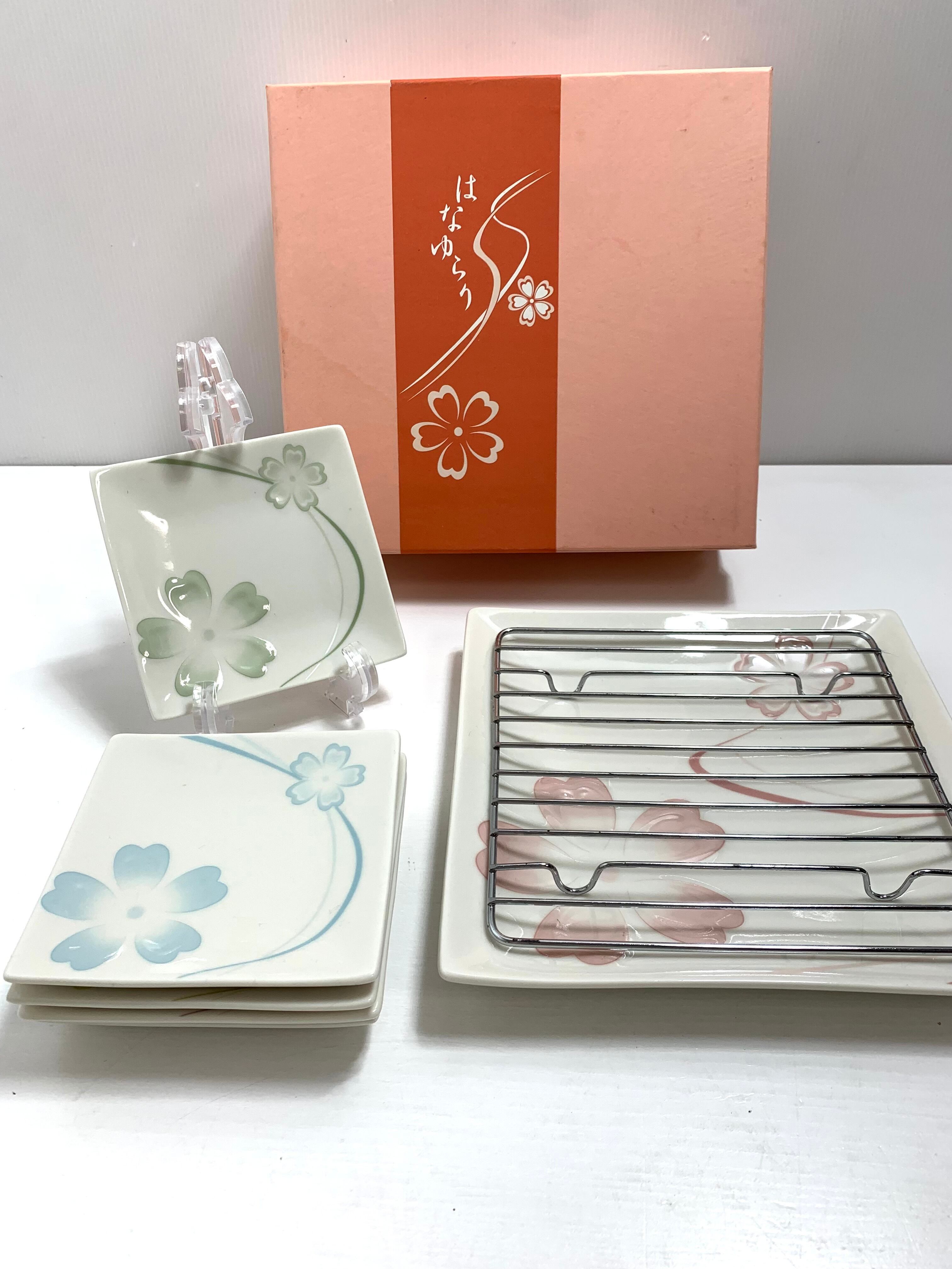 【未使用】フライドディッシュ 角皿食器セット 網付き はなゆらり