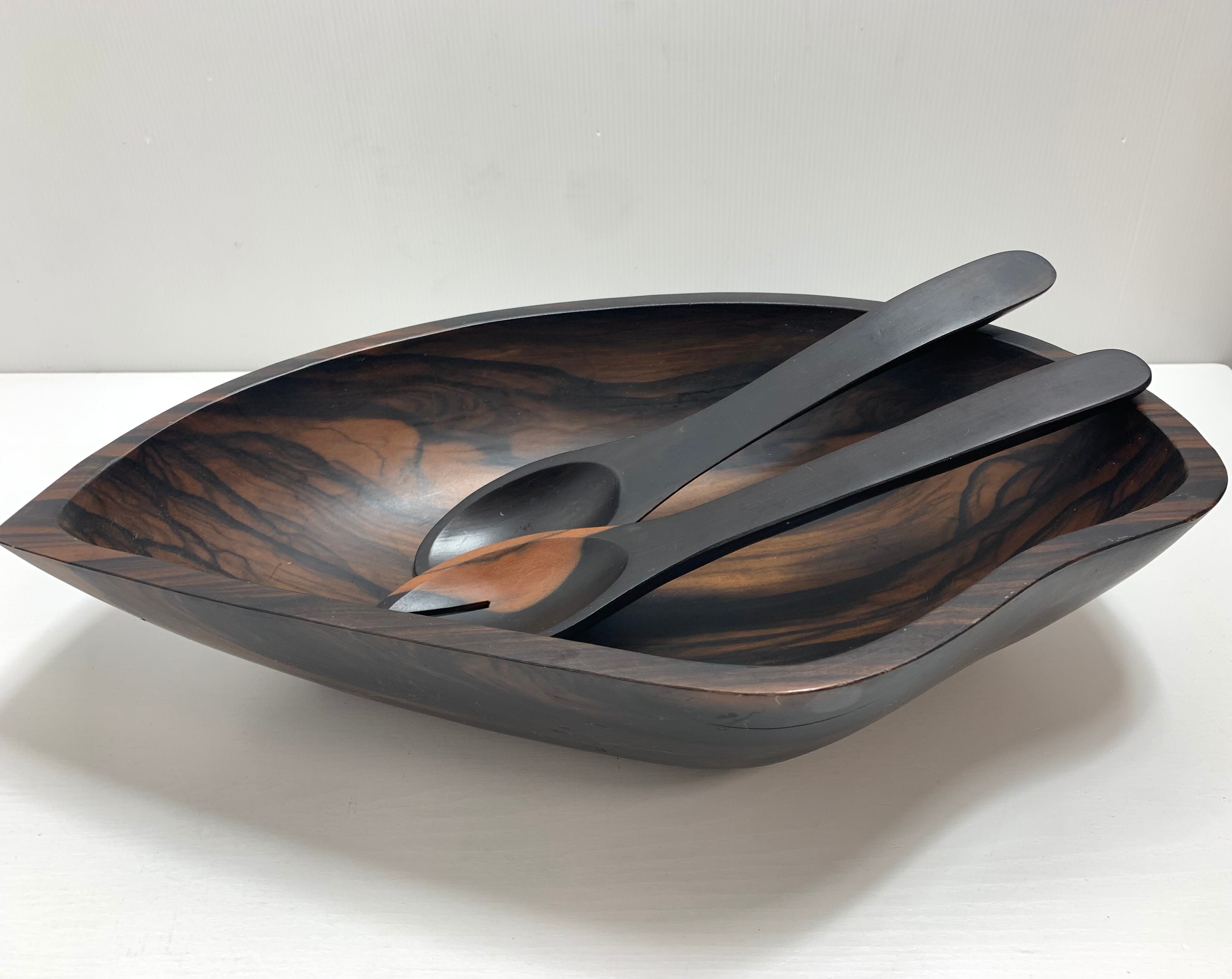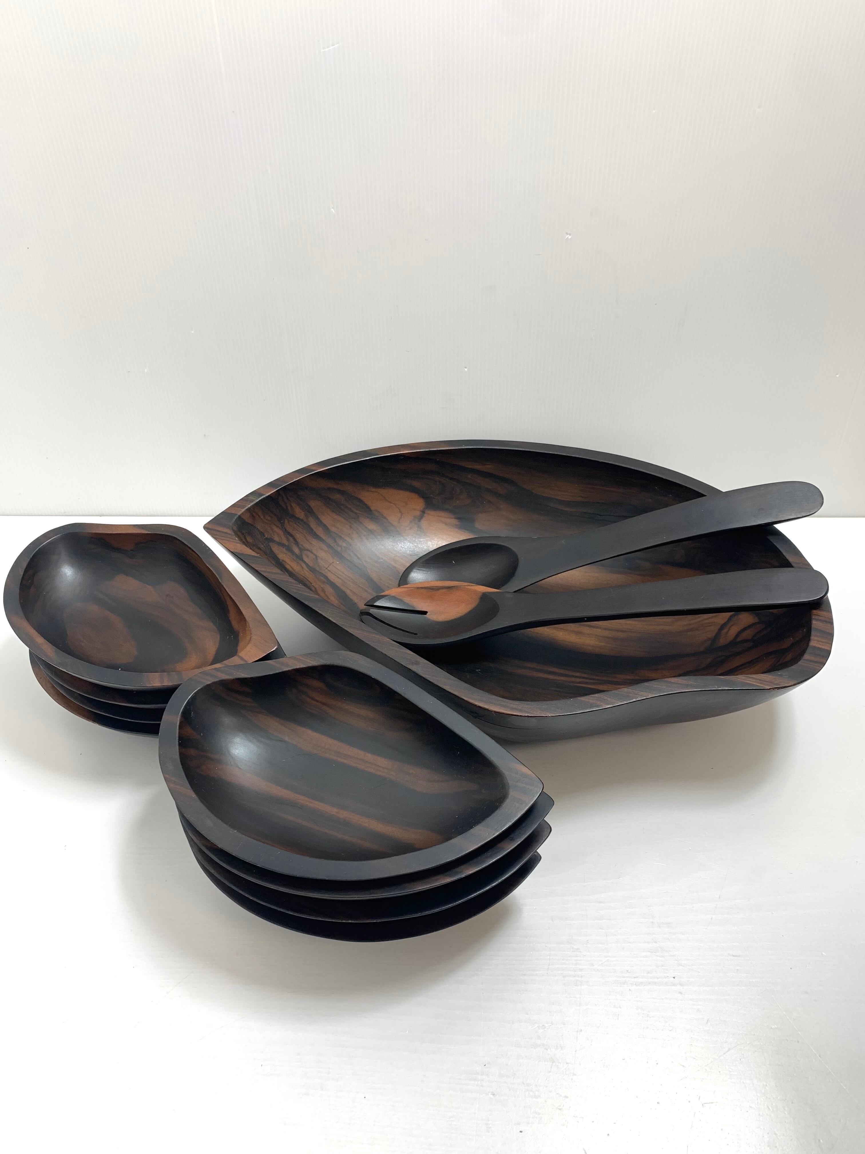 リーフ型サラダボールセット パーティセット取り皿×8 スプーン&フォーク 重厚感のある木製 シックな色調
