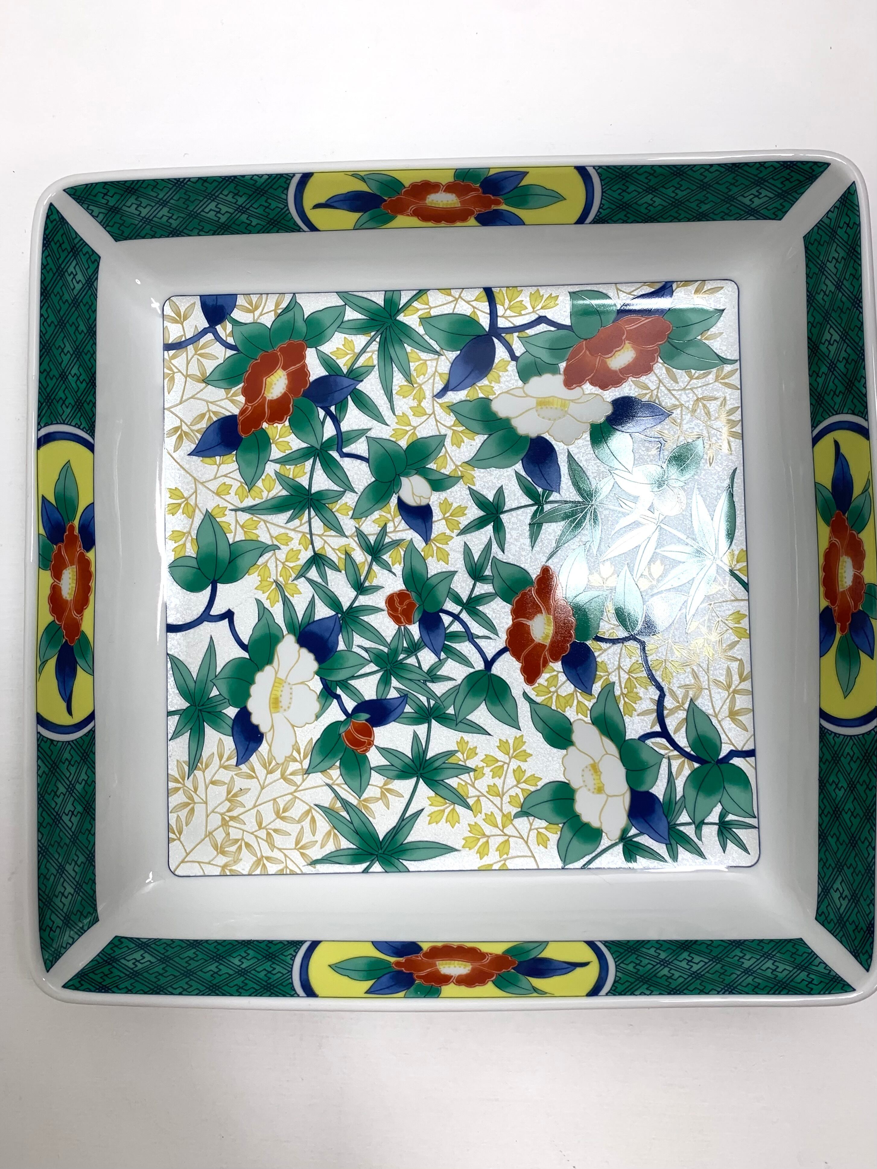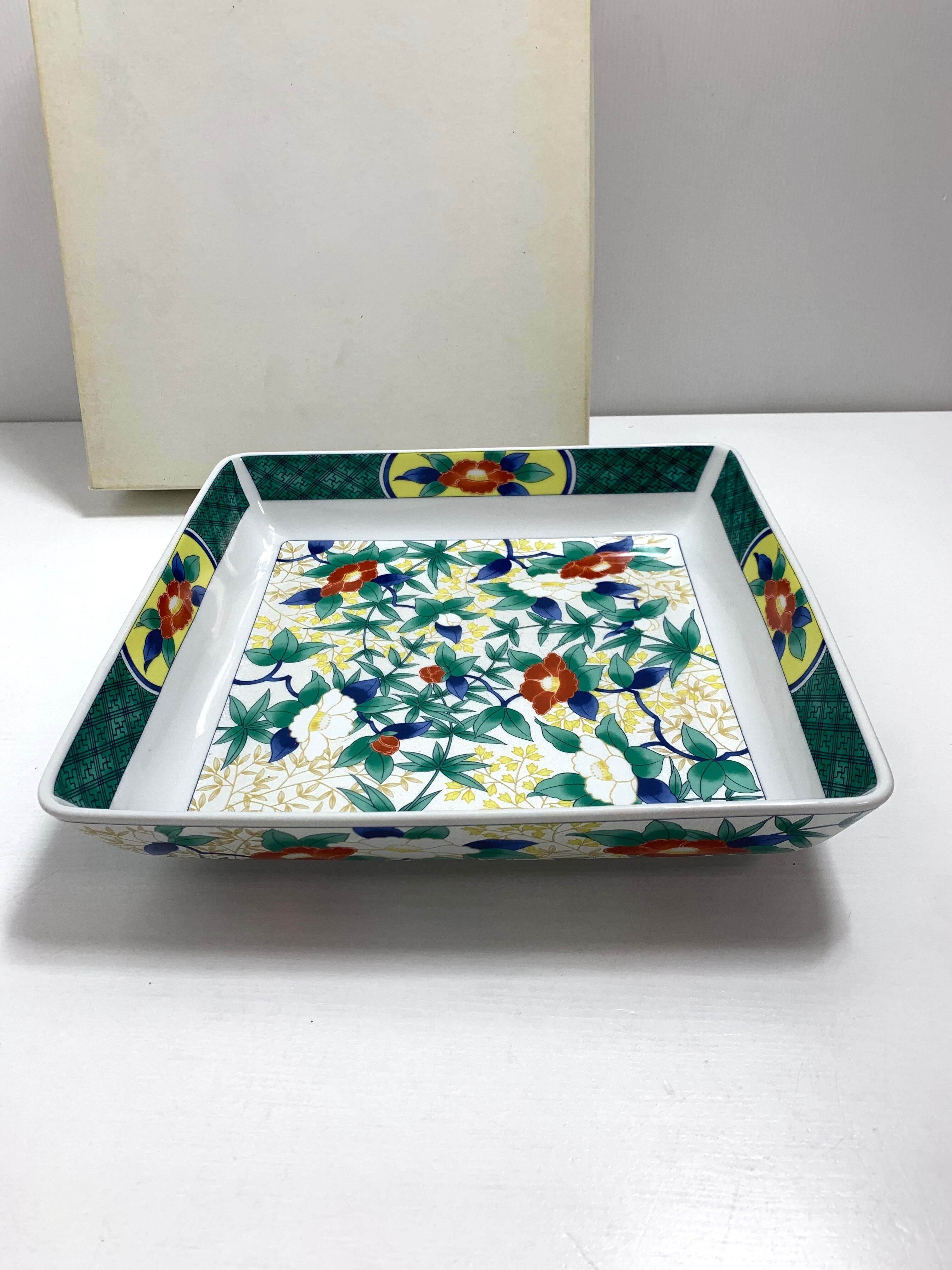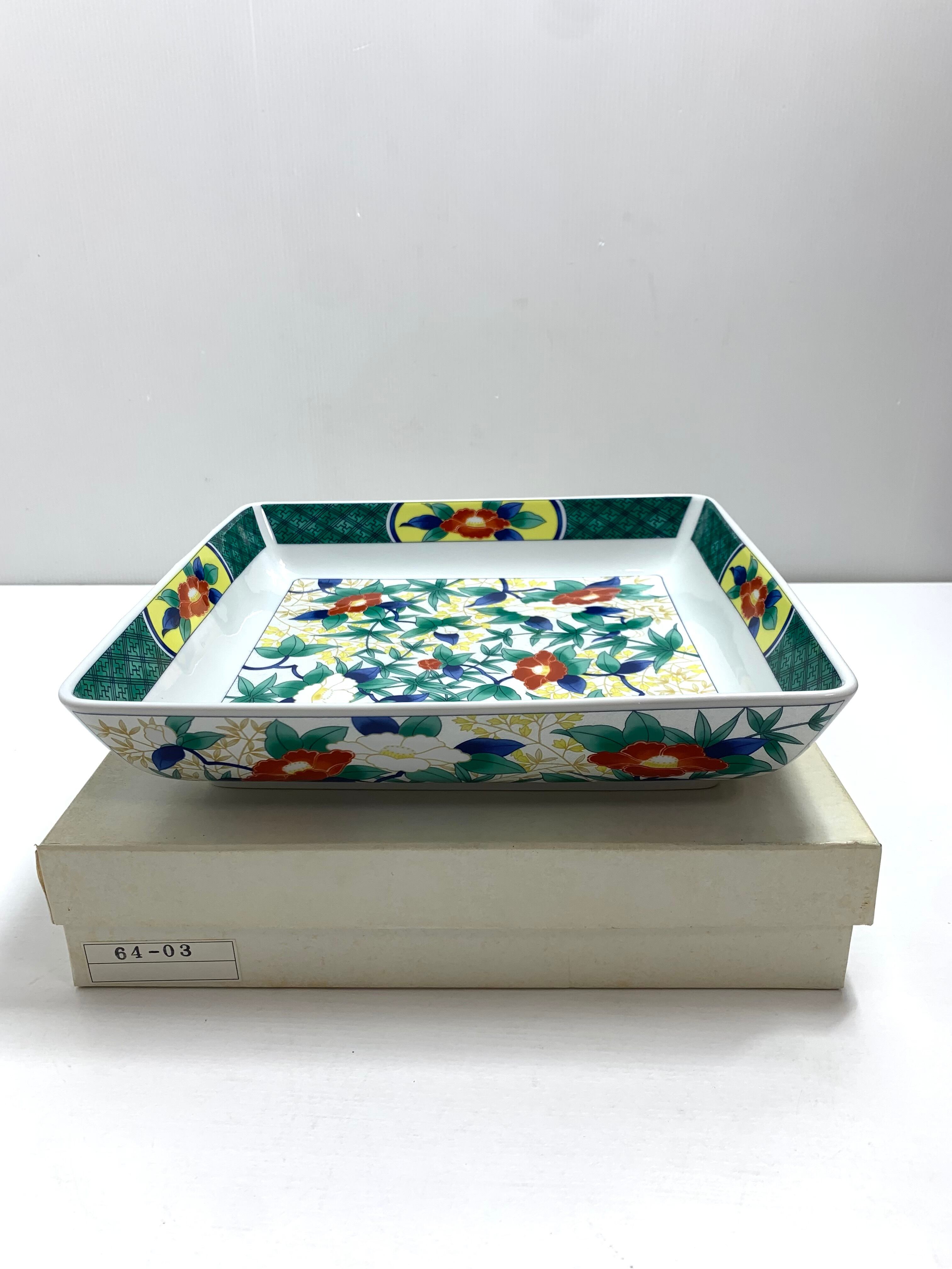 永祥窯 大皿 角皿 紅白牡丹柄